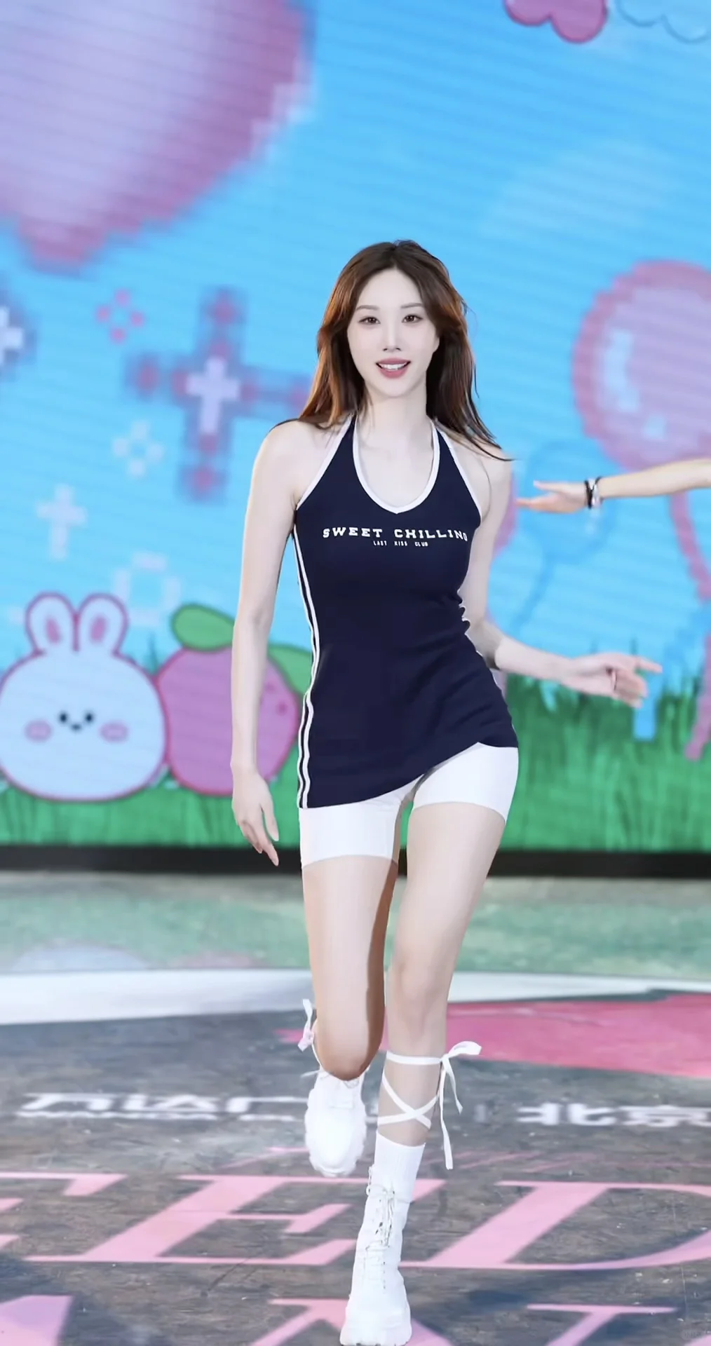 Style-H2H💙\n这套灵感来自于ian,最近好喜欢这个enfp妹妹(疑似同类相吸)\n蓝色挂脖裙:Sweetchilling\n推荐指数:★ ★ ★ ★ ★\n(版型好款式好看!在我衣柜里属于出街率极高的存在)\n白色骑行短裤:的确奇\n推荐指数:★ ★ ★ ★\n(材料厚实基本不透!缺点是会有点显三角区)\n白色绑带袜:阿卡伦\n推荐指数:★ ★ ★ ★ ★\n(厚实舒服!绑带也不会掉)\n白色短靴:惜夕时尚女鞋\n推荐指数:★ ★ ★ ★ ★\n(版型巨显瘦且底软舒服!重点是巨巨巨便宜)\n#女团穿搭 #女团穿搭回归现实 #运动风少女 #打歌服 #路演穿搭 #ian #舞蹈穿搭 #甜辣风 #运动风穿搭 #运动风