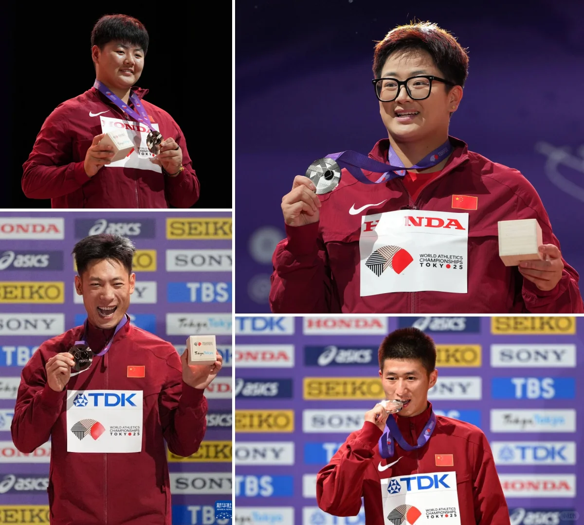 2025年东京田径世锦赛9月21日迎来收官日,男子十项全能选手费翔是中国田径最后登场的选手。本次世锦赛中国田径收获2银2铜,无金牌,奖牌获得项目依然是中国传统优势项目:竞走、女子链球、男子跳远。其中男女选手各获得2枚奖牌,平分秋色。各项目中国选手最终成绩详见图2。\n本次世锦赛中国年轻选手居多,暴露出选手临场经验欠缺,比赛调节能力不足等问题。很多选手比赛中未能发挥出个人最佳,除个人实力水平外,缺少实战比赛经验是主要原因。如男子110米栏,3位中国选手半决赛都因为各种原因未发挥出最佳水平,男子跳远、男子三级跳远、女子撑杆跳高、女子标枪等项目均存在上述问题。\n中国传统优势项目男子竞走终于在10年后世锦赛摘牌,而女子竞走在体能与国外对手差距明显,虽然成绩也在世界前10水平,但缺乏奖牌竞争力。女子投掷类项目链球年轻队员能独挑大梁,但女子铅球、女子铁饼年轻选手实力尚不足以顺利接班,女子标枪稍好,有更年轻的严子怡。\n而对于中国短跑,目前中国选手个人能力与世界顶尖水平有差距,差距也同样体现在了接力方面,男女4x100米接力双双卡位第9无缘决赛。\n虽然有些项目中国目前尚不具备高水平,但进步明显,如男子4x400米接力再次打破全国记录、女子400米栏莫家蝶晋级半决赛、男子投掷类项目全部获得参赛资格,男子十项全能再有选手获得世锦赛资格等。\n本次世锦赛即将结束,2年后田径世锦赛将来到北京!2年后的北京田径世锦赛也是洛杉矶奥运会前的一次大考!也希望中国田径2年后能再夺世锦赛金牌!\n#小红书赛事追击团 #体育赛事追击团 #中国田径 #田径世锦赛