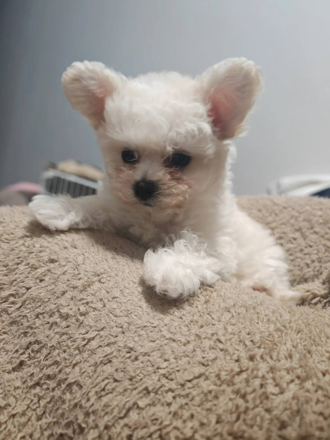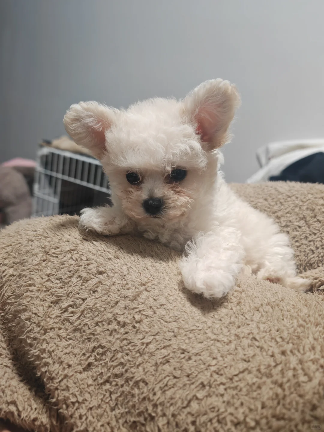 我们家的小狗狗是飞耳比熊么,买回来两天还不敢洗澡。怎么越看疑惑越重呢。商家说两个月,长大是小小体,最多3斤。