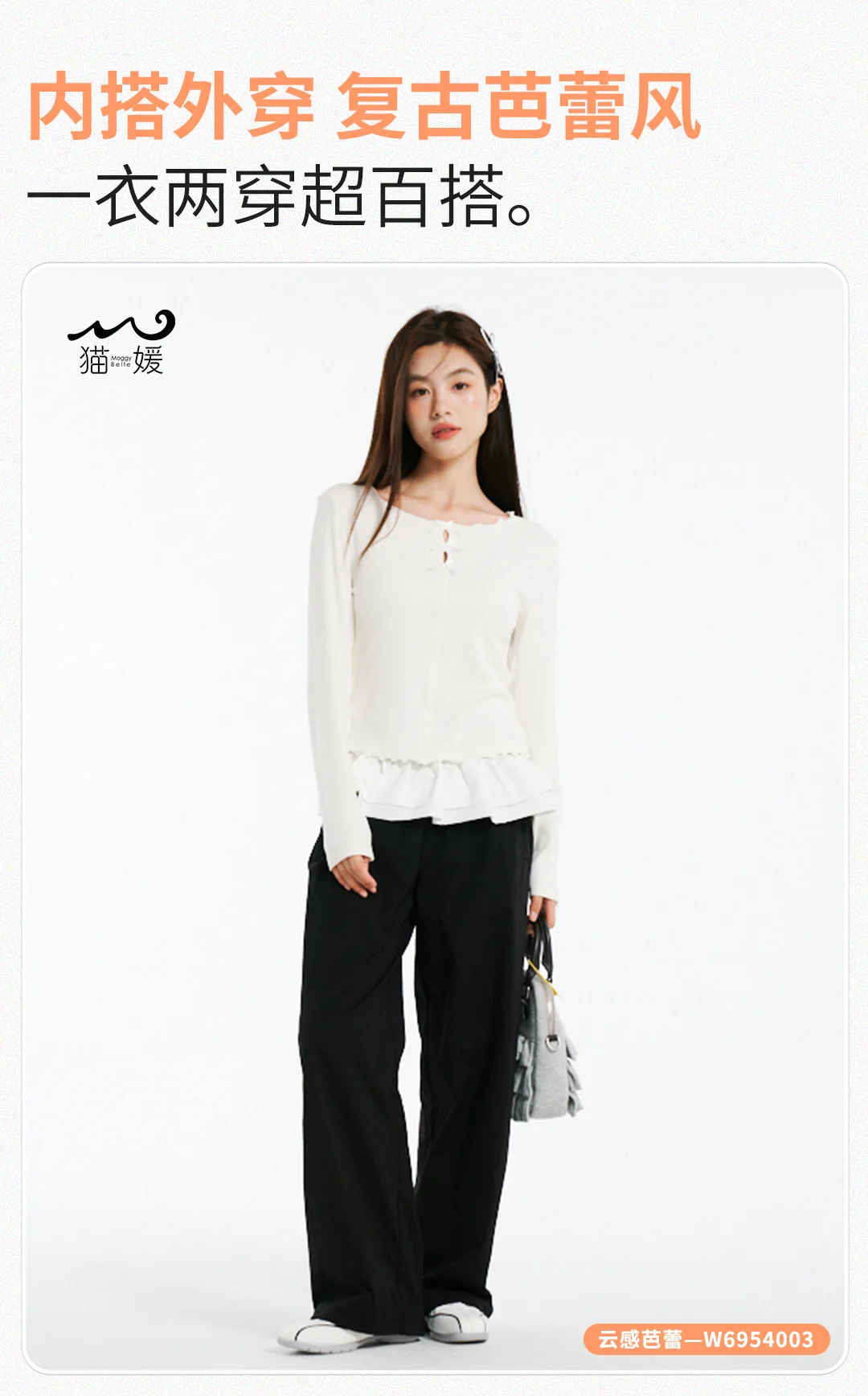 猫媛早秋战衣\nC位出片—云感芭蕾系列\n复古芭蕾风+罗纹棉\n去身材焦虑剪裁\n日常通勤 约会出街\n单穿叠穿 自带高级氛围感