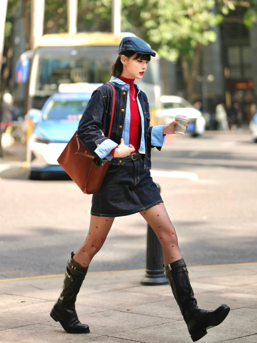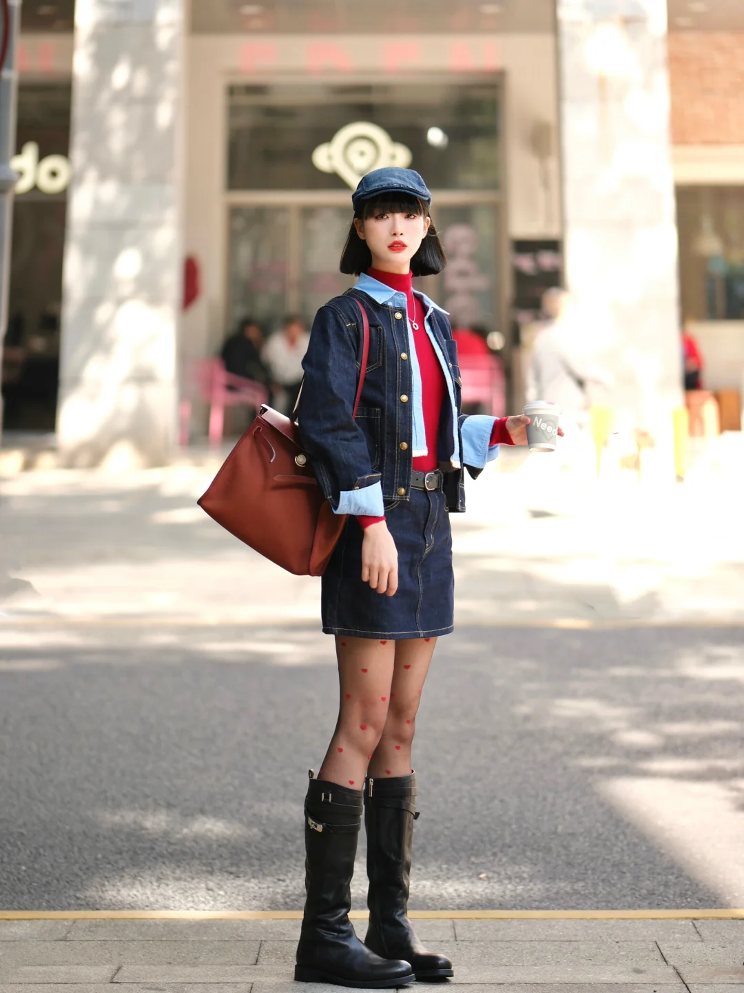 今日配色思路:蓝+红+黑🔵🔴⚫️\n \n#街拍 #记录生活 #我的日常 #小红书新春衣橱#时髦小姨回家啦#小红书过年新衣买上身#时髦小姨风#新年fitcheck @时尚薯
