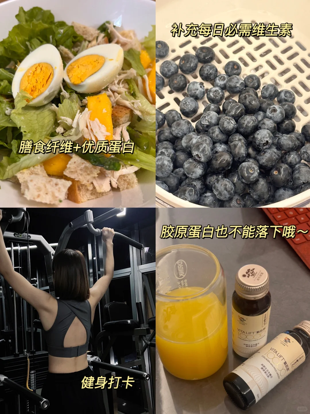 随着年龄增长 脸上的胶原蛋白流失的速度也会加快\n25以后以1.5倍的速度流失\n45岁以后是以3倍的速度流失\n而胶原蛋白的流失也就意味着皮肤越来越松垮,\n身体的衰老从皮肤开始的\n我是超级大干皮 脸上细纹多 斑点也很明显 之前一直都有在补水 比如敷面膜 用好的水乳和精华 但是发现效果不太明显\n后来才知道 原来年龄上去了 不能只是单纯的补水那么简单了。\n1、精简护肤\n护肤补水是首要条件,我现在用的护肤品都是成分比较简单的,没有刻意去追求紧致提升等效果,只在乎补水。冬天干燥的时候会用到护肤油,每天晚上擦了护肤油再加一层面霜,长期坚持下来,皮肤状态好了很多。\n2、内调\n抗老的重心我一直放在内调上,虽然护肤下来脸部皮肤看起来没有那么惨烈,但内层肌肤始终是缺水的,这样就会造成长斑,肌肤暗沉。我不喜欢太繁琐复杂的保养方式,内服胶原蛋白是我为数不多能坚持下来的~我是每晚都会坚持喝一瓶维特健灵胶原蛋白的, 10000mg的深海鱼胶原还搭配着纯野生五色灵芝,内调外补,让抗衰效果1+1>2,坚持喝皮肤状态真的会给出正向反馈!脸上的蜡黄暗沉没了,素颜气色都有种焕然一新的通透感,不夸张的说皮肤细腻紧致了看着就好像被抛了光,,如果有的姐妹要do脸什么的,内调做好了也可以帮助效果维稳。\n3、多维度保养\n其实长期以来,都是按照内调外养+运动的方式去保养自己,过了30大关之后,也越来越关注自己的身体。心态要好,不用在乎身份证上的年龄,要更多的去关注当下的状态。心情保持愉悦,长期运动,坚持内调,生活作息规律,只会越来越年轻。❤\n#保养#胶原蛋白#运动#灵芝紧肌饮#内调#美女#抗老#女性保养#女性成长 #抗老#内调外养好气色 #原相机 #胶原蛋白 #中年少女