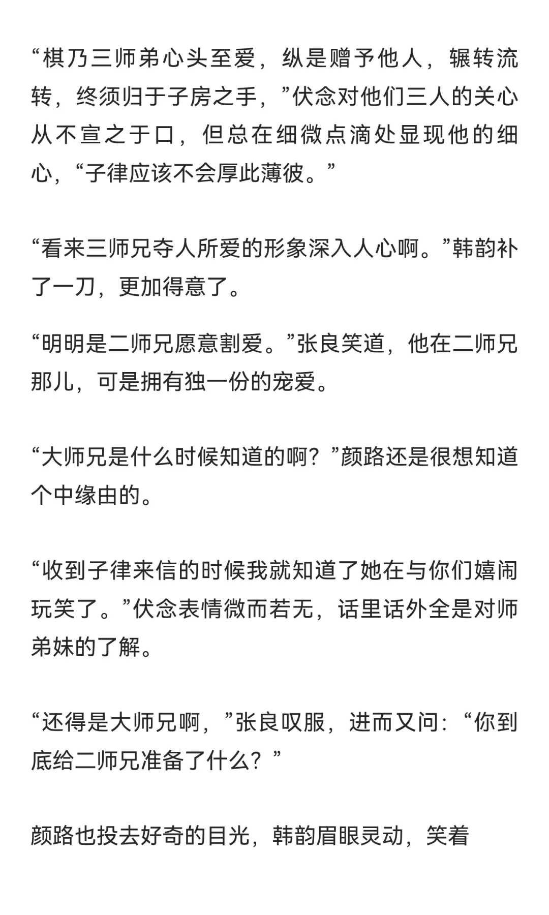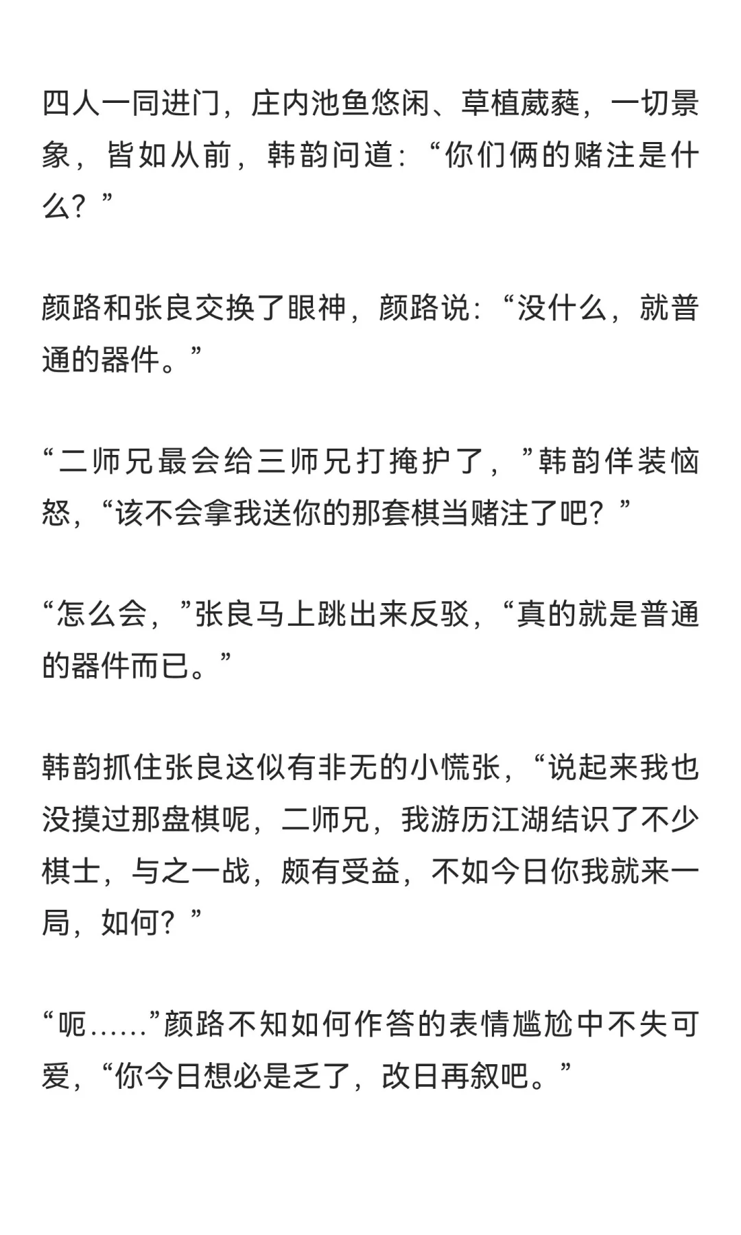 #同人文 #秦时明月张良 #秦时明月 #伏念 #颜路 #齐鲁三杰 #bg #原女 #自行避雷\n大家好,这里是青青\n《月是故乡明》是2012年左右的作品了\n最近重燃对秦时的热爱,重温后捡起来再写了\n年代久远,有些事必须与大家说明:\n1.本文女主灵感来源古早网游韩非的女儿,官方设定为“韩飞儿”,我为其赋名“韩韵”\n2.本文动笔时尚未有《天行九歌》,请不要将《天九》的韩非与本文韩非混为一谈\n3.本文是根据当时的大纲与后补的剧情整合而成,当中韩信、晓梦及农家各人等新人物的人设与官方相差甚远\n4.本文故事的开端是小四末尾,结局只停留在六国短暂的复国(与楚汉之争无关)\n5.本文细微改动有:三小只没有误打误撞进入蜃楼、黄石天书不在天明手上、伏念在本文已定亲、李斯更阴险狡诈(本文最强反派没有之一)\n6.本文以张良BG为主线,辅线为齐鲁三杰兄弟情(cb情)\n7.如有冒犯,先行道歉,请您退出\n8.感谢所有一直以来喜欢秦时明月及齐鲁三杰的朋友\n9.再次致谢\n10.欢迎到群里玩耍~