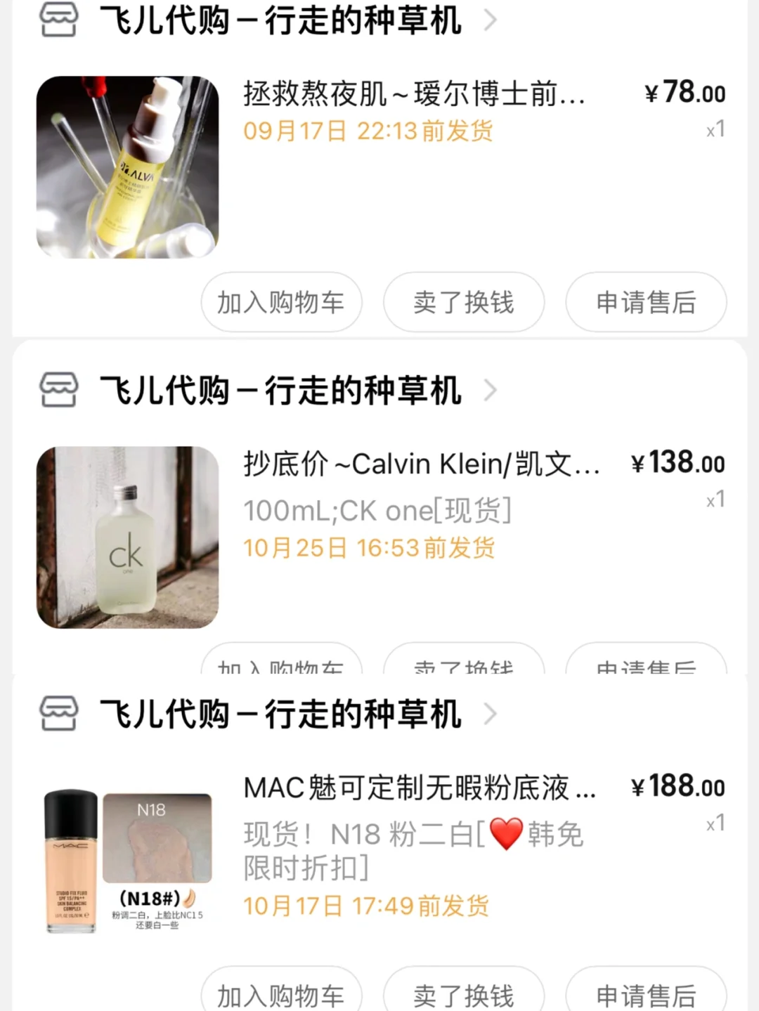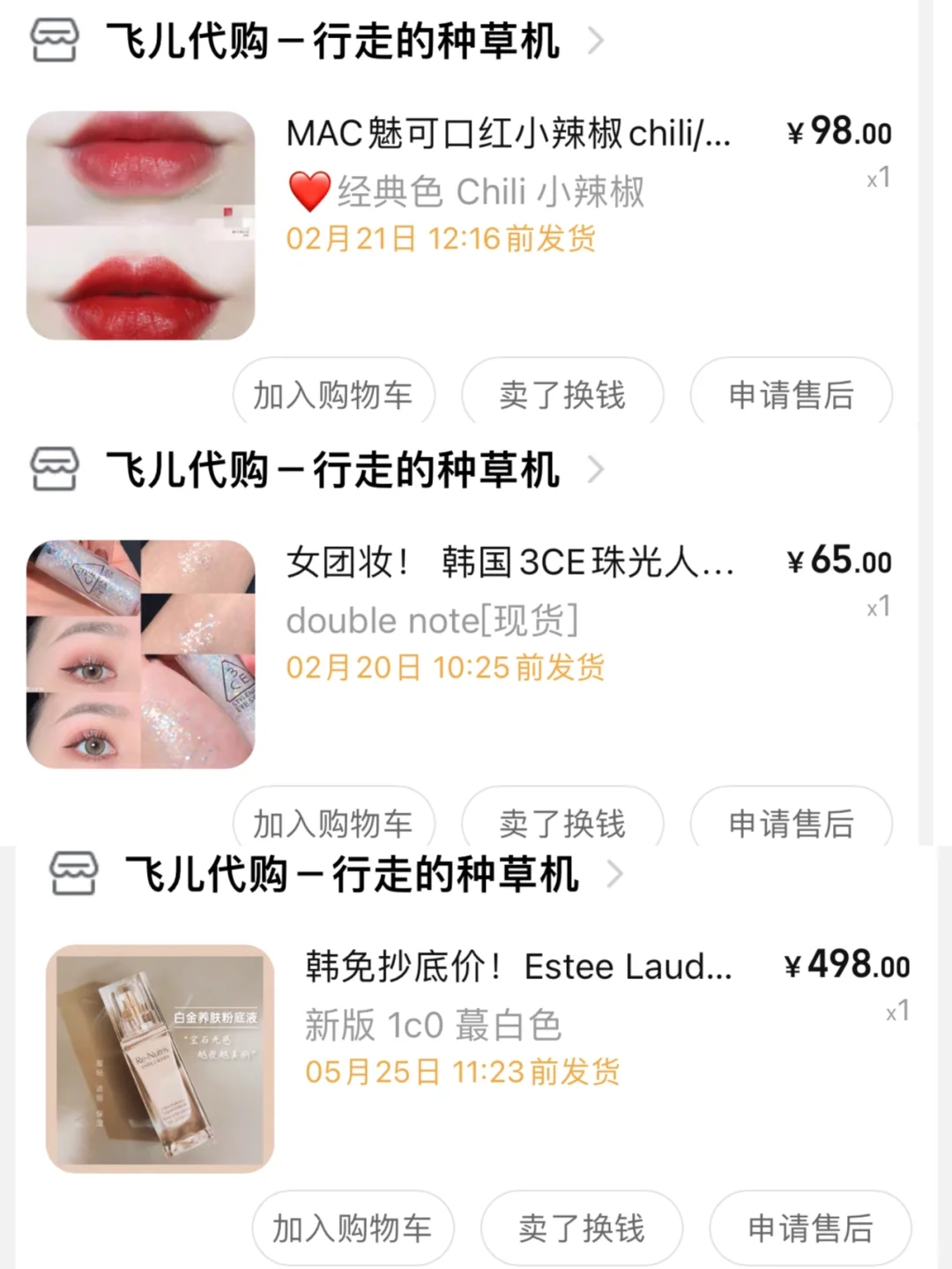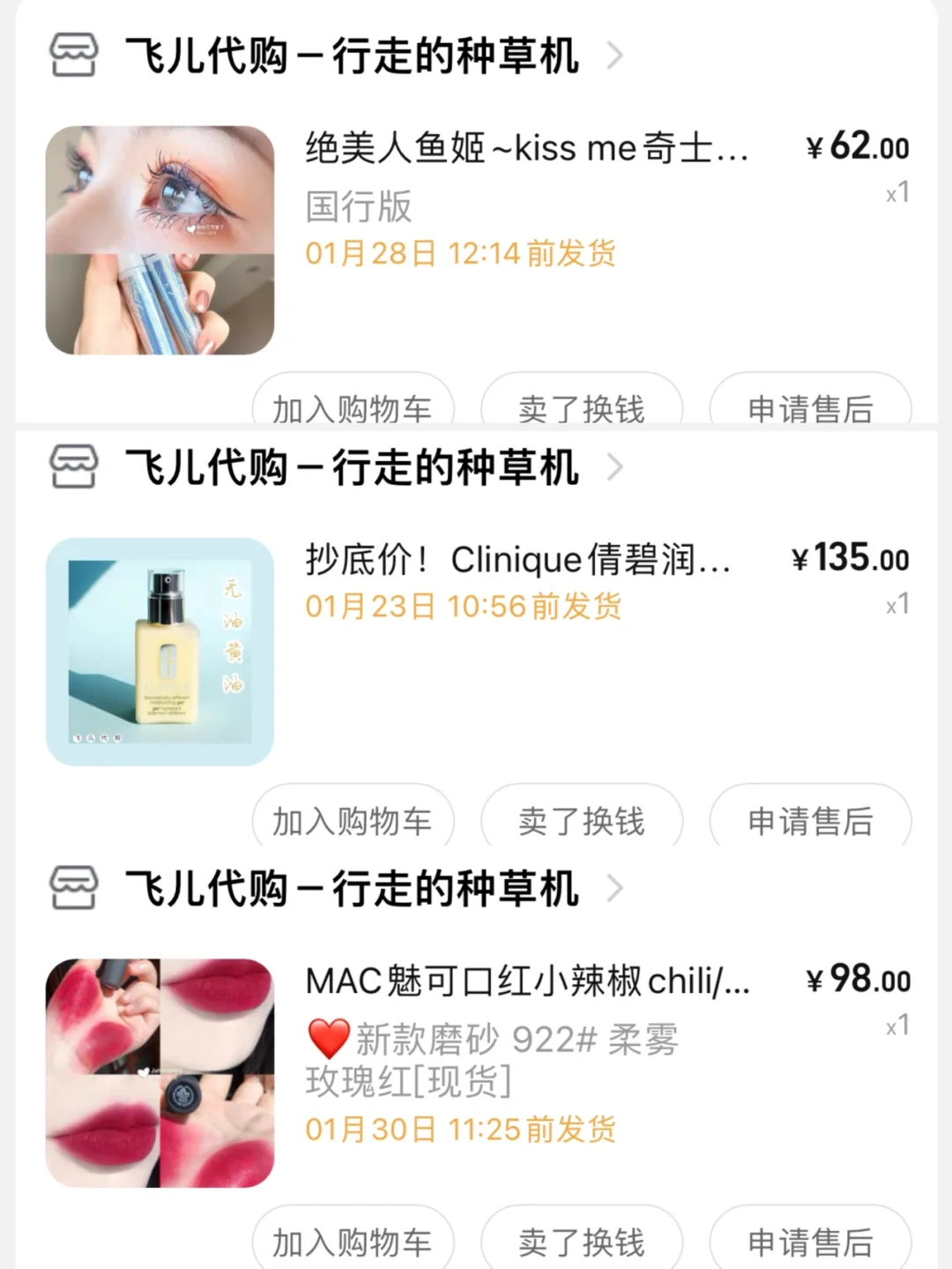 店pu :飞儿代购-行走的种草机\n我差不多关注她家店铺三年了,化妆品基本都在她家买,上面的图片都是我在她家买的一部分,我发誓没有一张是dao 图!哈哈哈哈哈!!!\n我是比较懒的,懒得截图发出来,一直都想整理的哈哈哈哈哈!\n她家东西真的可以买!到现在我买的口红 护肤 彩妆没有一件是jia 的,而且价格特别合适!有时候还会搞活动!完全正pin !她在微xin 的朋友圈里会发一些要上新的东西 上新前三天价格会少10-20💰\n不过最近她家好像不上新了!问过她家客服 说是老板有点事情 货也正在上 店铺里有的就会发货 没有货可能等个10-15天!可以先关注的!她家店铺真的很好 品类也挺全的!在🍑宝里找店pu 哈宝宝们!#分享店铺 #私藏店铺 #宝藏店铺 #好物推荐 #购物分享 #好物推荐 #好物分享