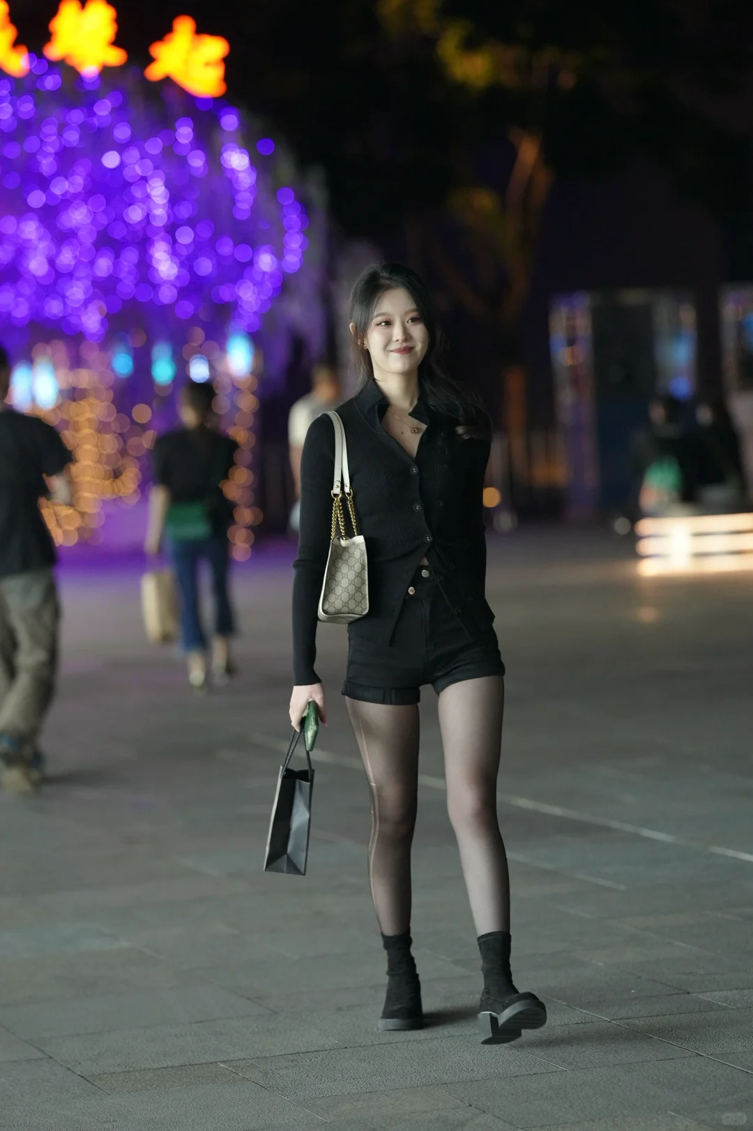 街拍黑色系美女