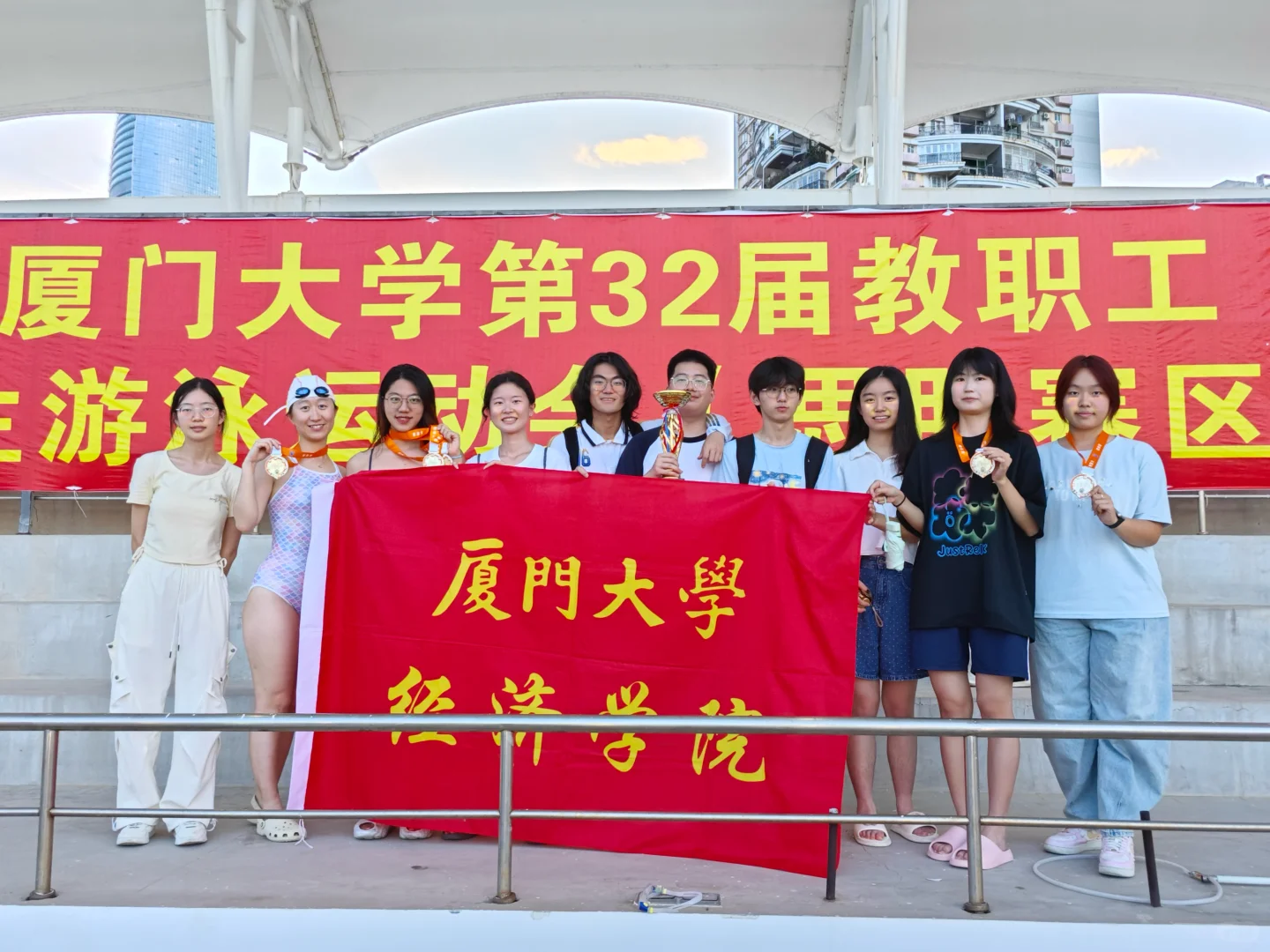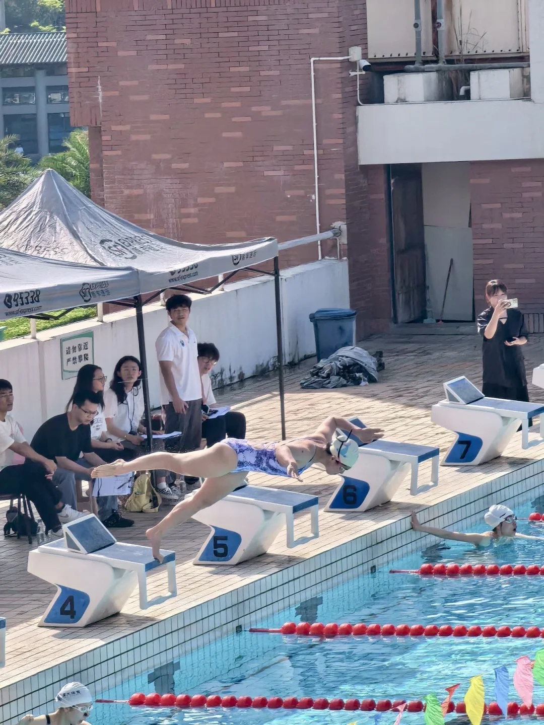 比赛前一晚疑似空调太热🥵,脑子里又在想事情结果失眠\n一早上醒来火速赶到游泳馆下水感觉还没睡醒,两眼一睁就是干😴\n早上比完中午还去师门年度聚餐,下午打车回来继续比赛,一天5枪,如愿刷新2项校记录,真是燃尽了🫠\n \n代表经济学科的第二年,感谢大家!🏆\n感谢体育部、教练和泳协的每一个人🩷\n第一次思明校区大战翔安校区混接,可惜思明没能干爆翔安开香槟🍾明年一定!(会有的吧🥹)\n舍不得毕业的泳队夫妻天哥君姐@阿斯达是上帝 @迷迷糊 在泳队犹如大家长的存在🥹\n明年就轮到我在凤凰花开的路口说再见了,一下子怅然\n海阔凭鱼跃,我们细水长流。#游泳女教练 #研究生日常 #见人不如游泳 #感谢教练继续沉淀 #解锁人生新成就 #厦门大学 #游泳 #比赛