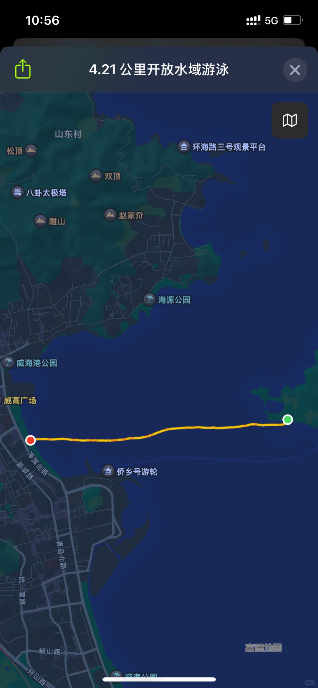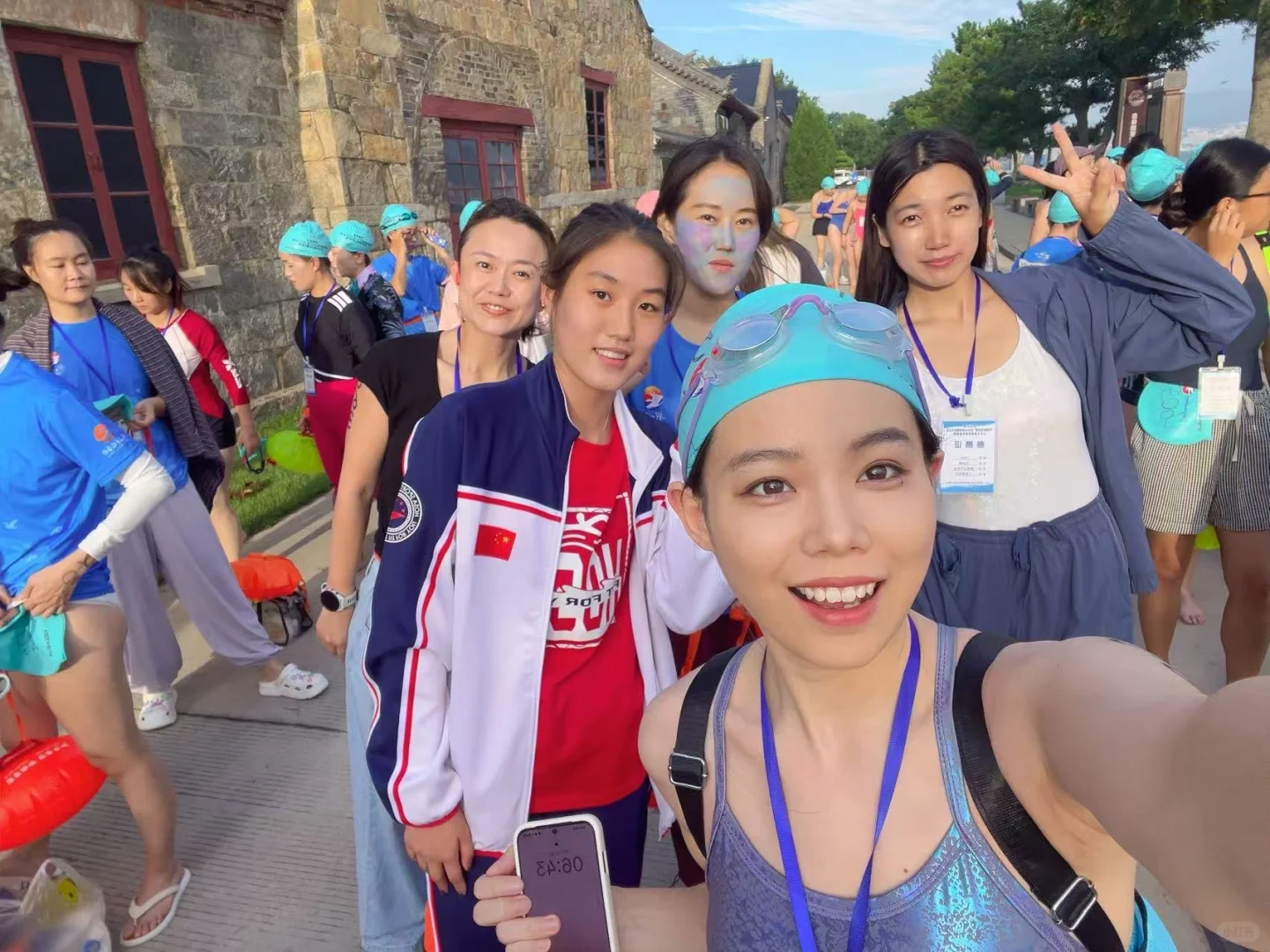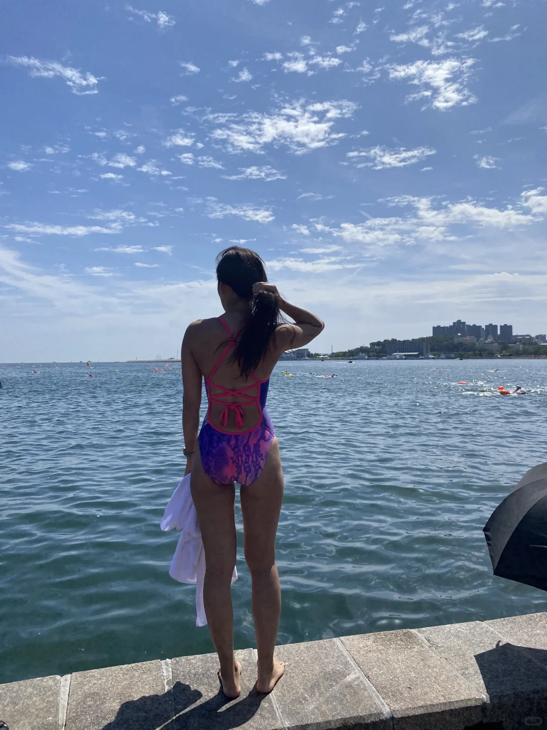 今天比赛的流程\n主要是等待啊啊啊啊啊!等的我越来越紧张\n4:50到码头(天蒙蒙亮阴冷)\n5:30上船(太阳出来了)\n6:00女子甲组集合点\n6-7点:等待+放衣服+拿脚环\n7:45二检,结果等到8点过才开始放人下水\n \n游泳感受\n全程三划一换,对脖子比较友好,但还是会有海水从鼻子灌进去,骺咸\n \n尽力维持频率,除了刚开始撞到几次人,后面都没有停过,害怕停下来就更累,基本感觉不到打腿,腿软绵绵的没有劲[扶额R]\n \n前半程很难看到参照物,就跟人游,好不容易到后半程,突然开始反胃想吐,虽然不用鼻子吸气,但还是觉得海水很腥\n我们组第一若晨超厉害,全场第一,一小时07分游完,能游我两个(2图左2)\n \n大姨大爷们才是隐藏高手,之前还想跟他们一组,是我草率了,游到一半有大姨用蛙泳超我,我想跟她都没跟上\n总结:海里和泳池完全两码事!海里好累啊!上岸被抽干!晒得好糊!现在脱光了很难形容\n#游泳 #运动万粉助力计划 #横渡刘公岛 #自由泳 #竞速泳衣