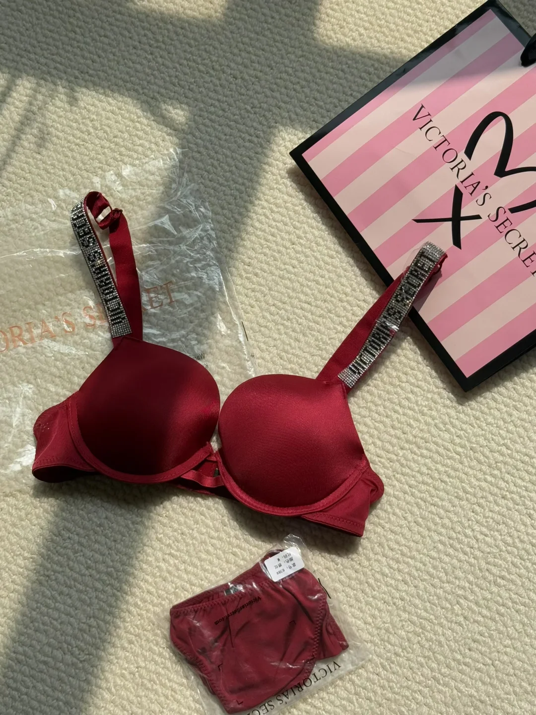 维秘内衣👙水钻肩带|酒红色🍷太美了