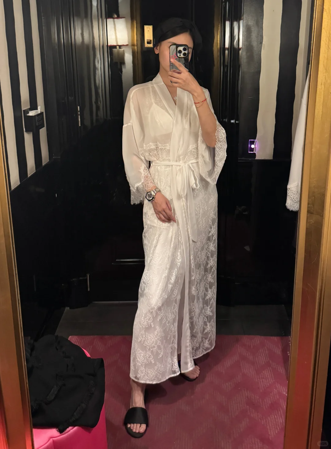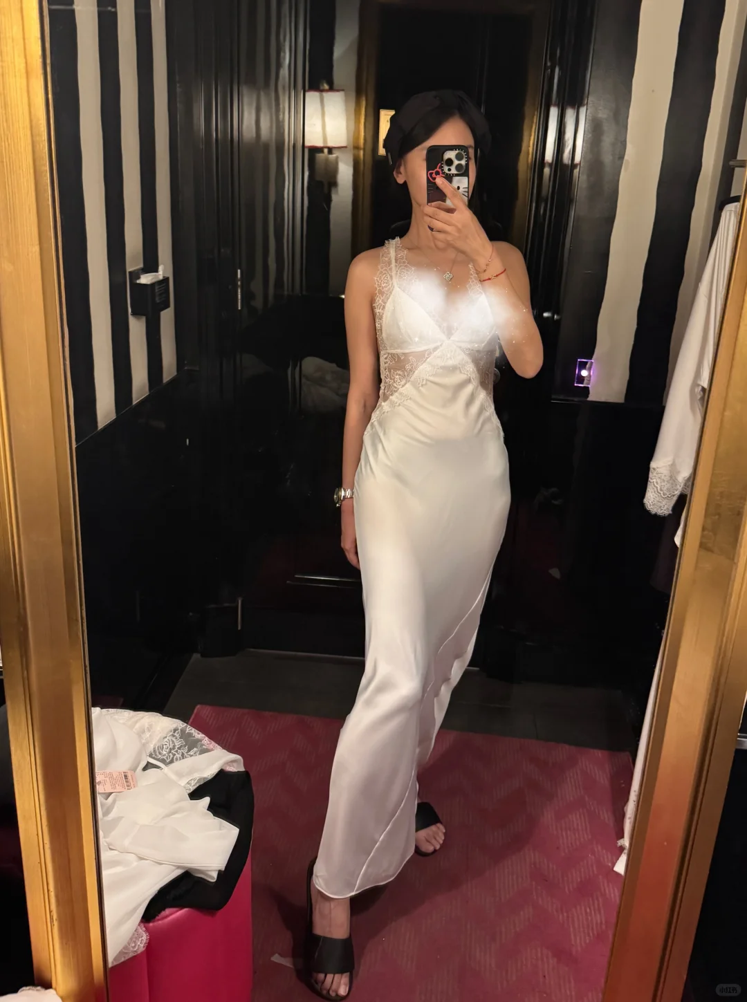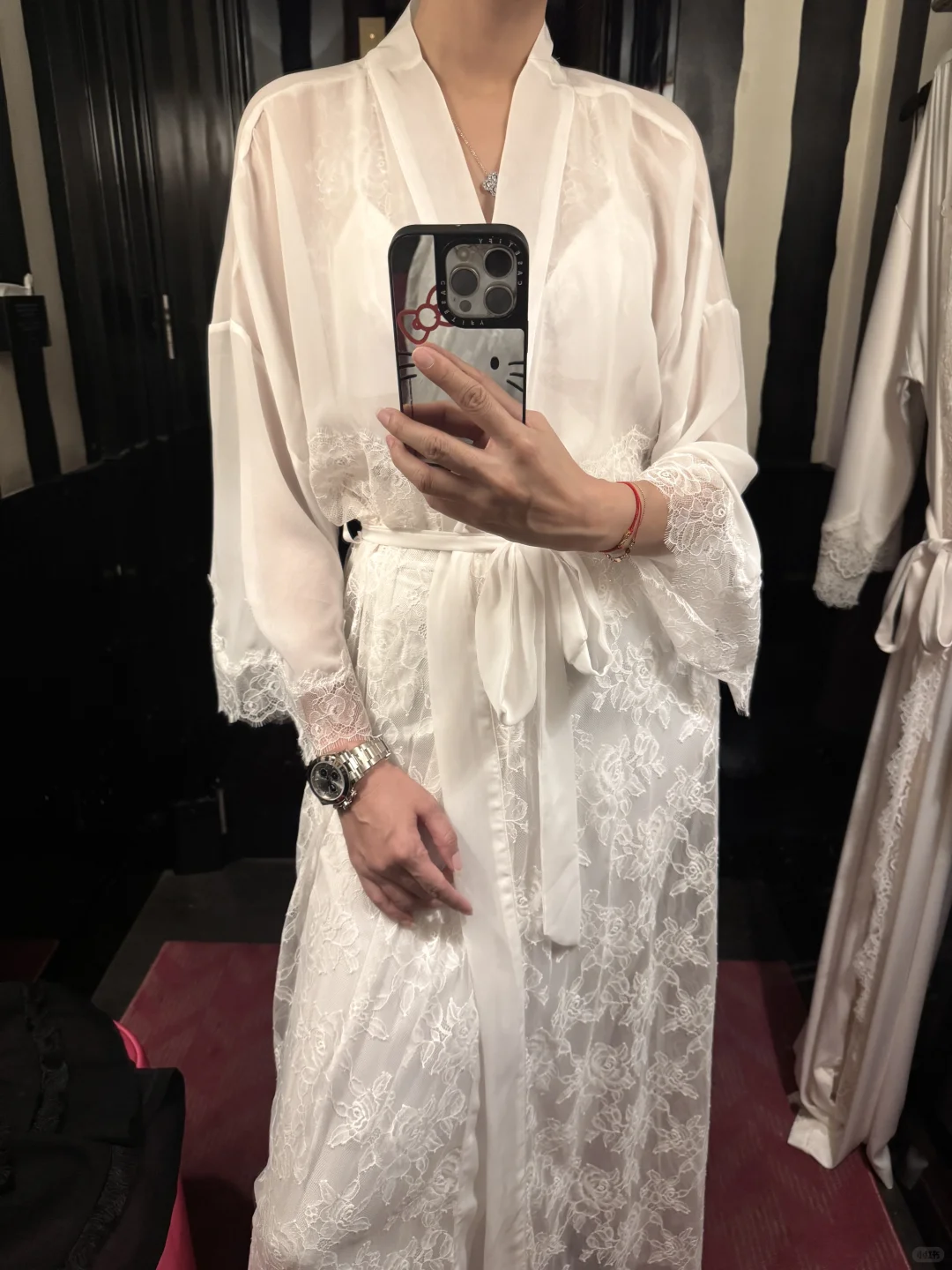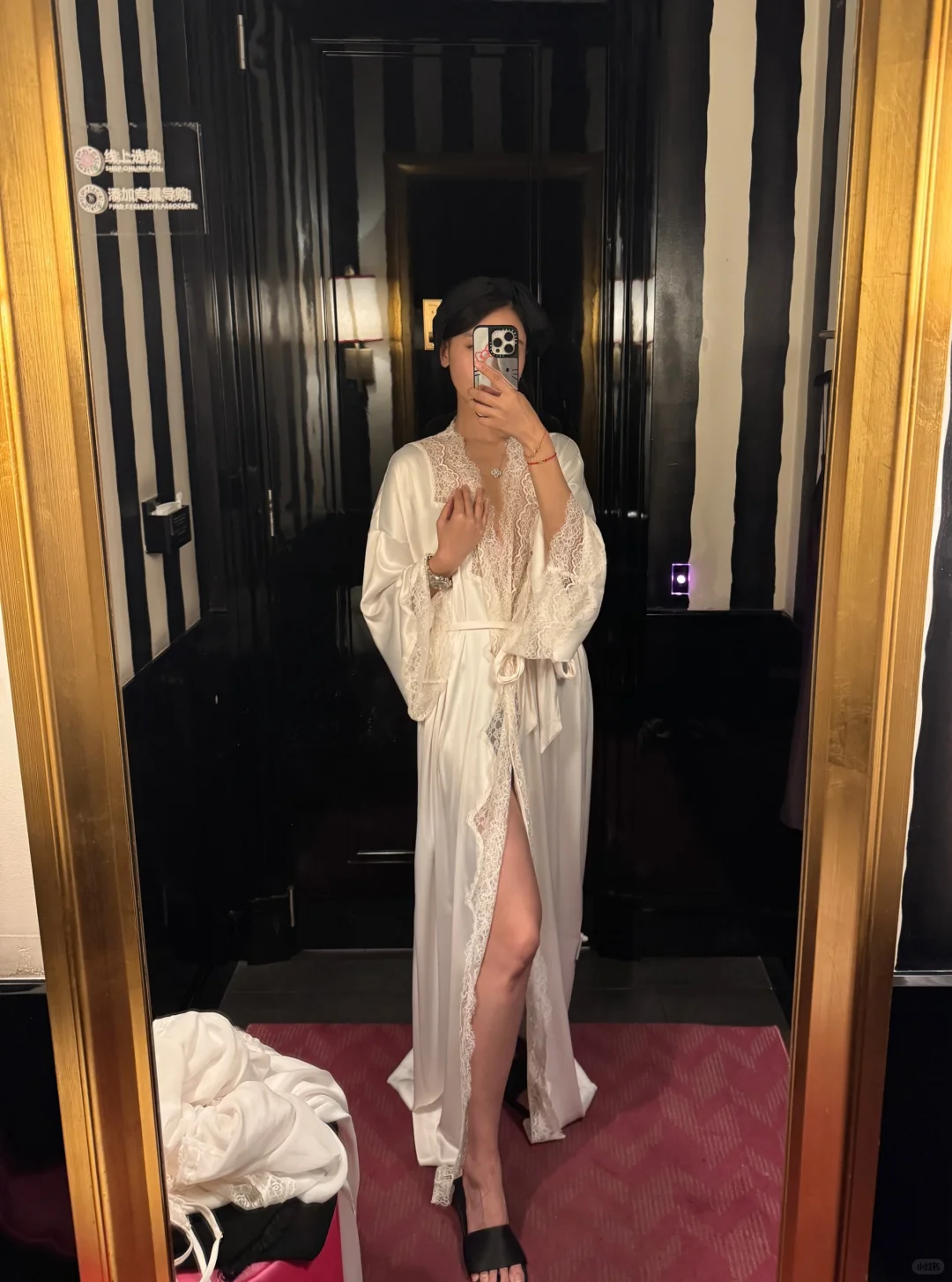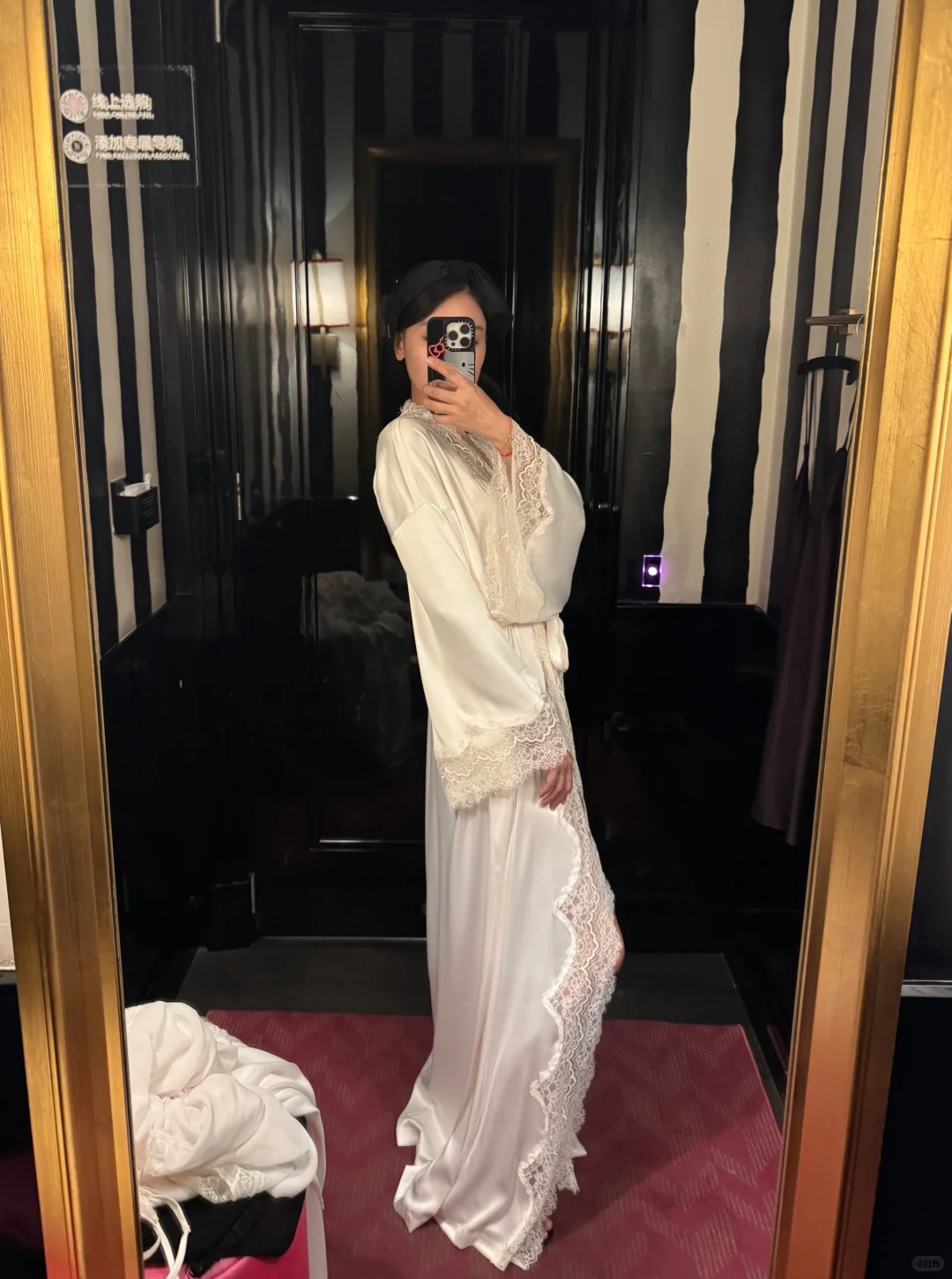 在试衣间试了这套睡衣以后果断地买下了\n女人哪怕一个人在家也要很精致,美给自己看,不是取悦别人。\n这套新款睡衣完全可以外穿,去海边拍照可以带上。\n买睡衣还送了一件白色的运动背心,超级百搭。\n
