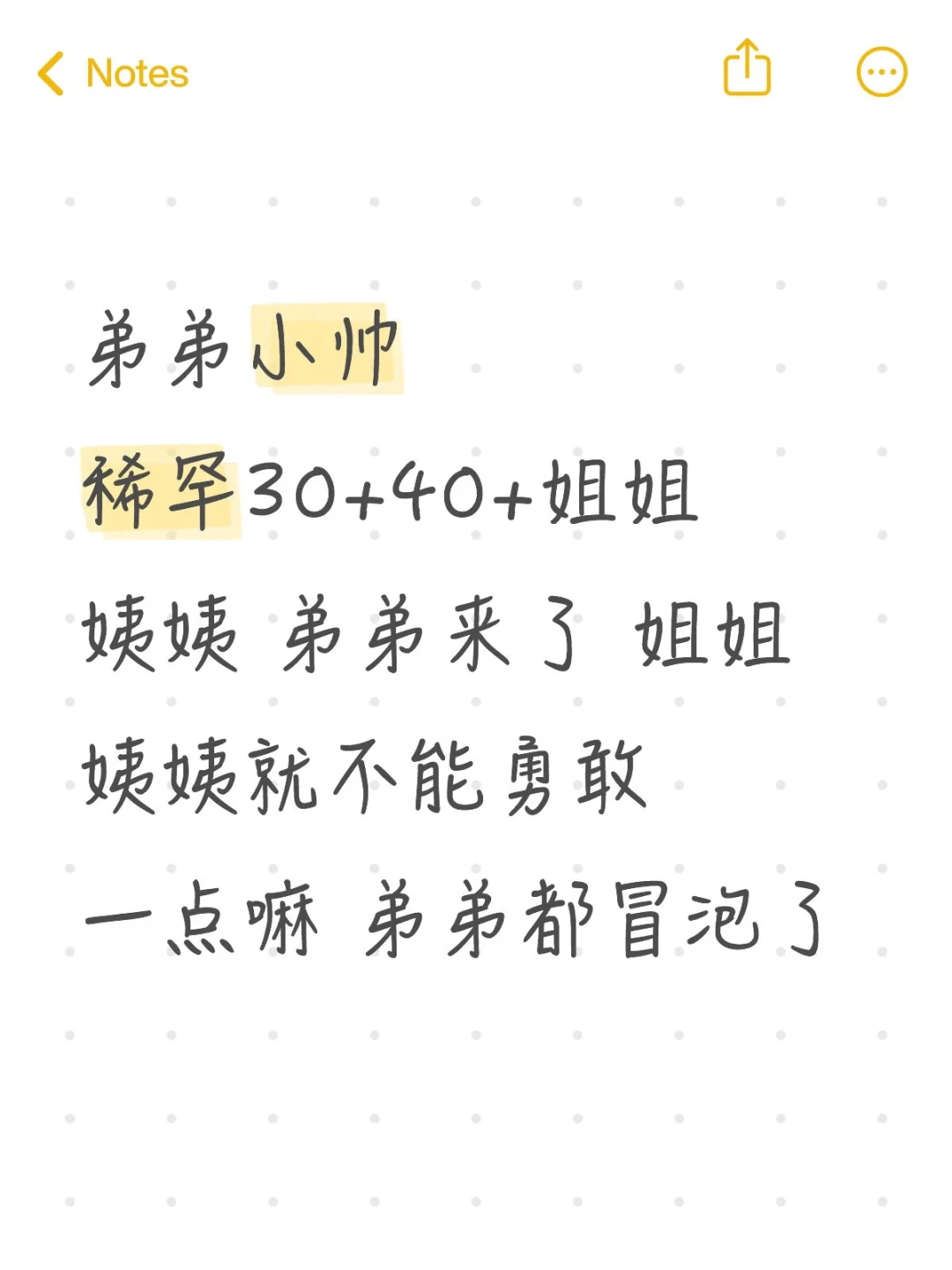 弟弟小帅\n稀罕30+40+姐姐姨姨 弟弟来了 姐姐姨姨就不能勇敢一点嘛 弟弟都冒泡了\n