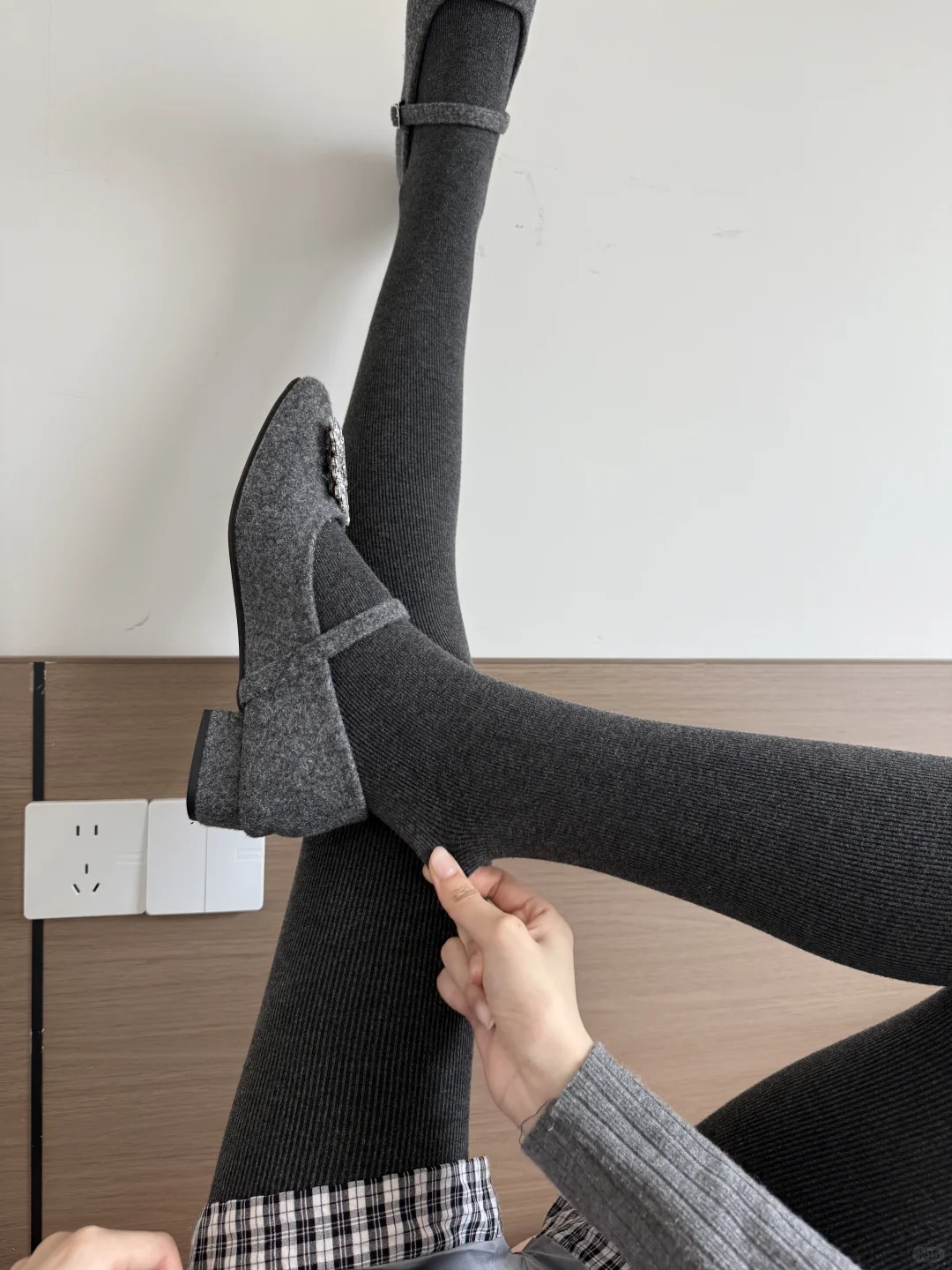 秋天🍂第一条深灰色连裤袜直接焊在腿上!!
