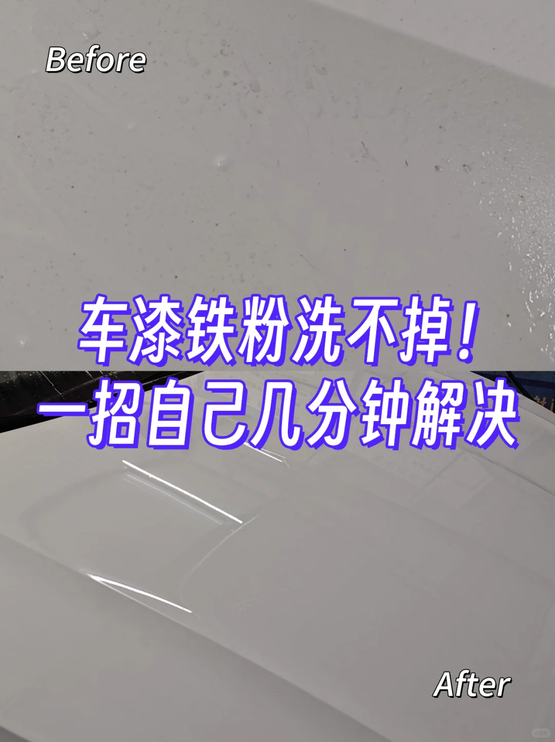 你车身上那些密密麻麻的黄点、锈斑,全是刹车铁粉、工业金属粉在搞破坏!这些铁粉会渗透清漆层,潮湿天氧化后还会腐蚀车漆,时间长了漆面直接失去光泽、起皮脱落,普通洗车液根本搞不定!\n \n✨✨看这里!!不用去洗车店,教你在家自己即可完成铁粉清洁!!\n \n用这个铁粉清洁剂,20+💰的价钱,不伤车漆,轻松去除\n \n使用方法:\n✅先把车身的灰尘等污渍洗掉,洗不掉的黄点黑点就是铁粉了\n✅把铁粉清洁剂喷在漆面上,建议带上口罩喷,有铁粉的区域会慢慢变红\n✅用清水清洗干净,再检查是否还残留铁粉,有就重复使用\n \n需要的姐妹快去试试吧,自己在家几分钟即可完成,支持拆用无效可退哦~~放心购买!!\n#铁粉去除剂 #汽车铁粉 #洗车 #车漆小黄点 #车漆黑点 #精致洗车 #白色车漆上很多小黑点 #白色车漆去黄点 #车漆铁粉 #清洁