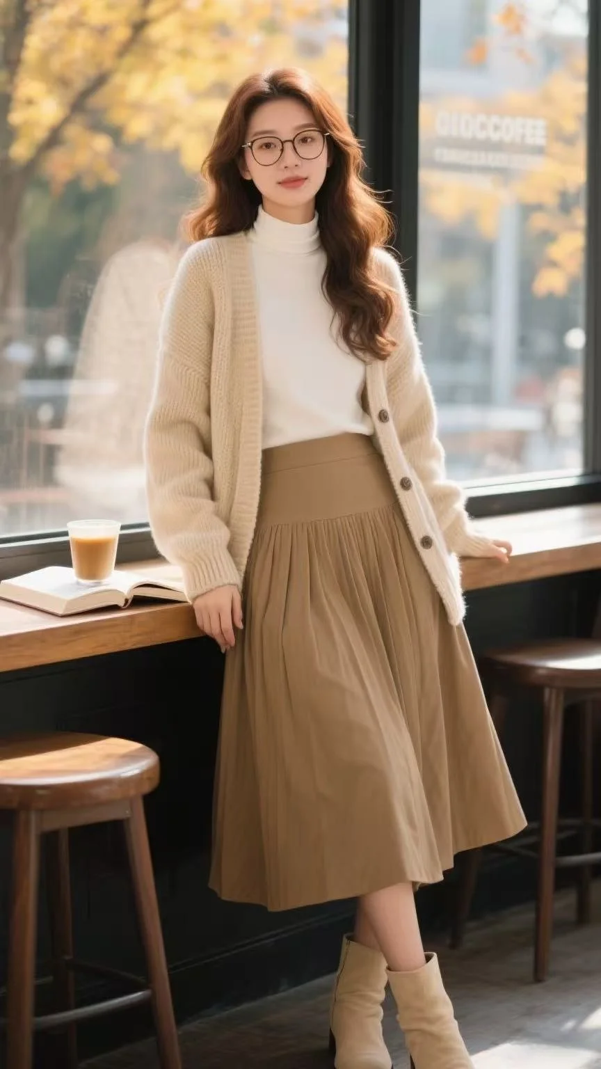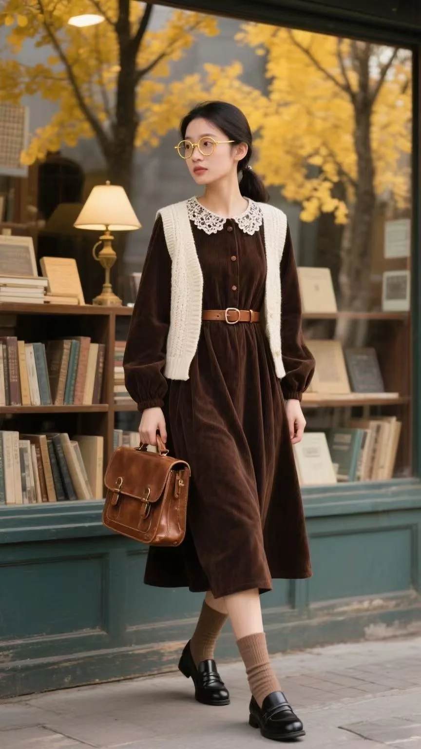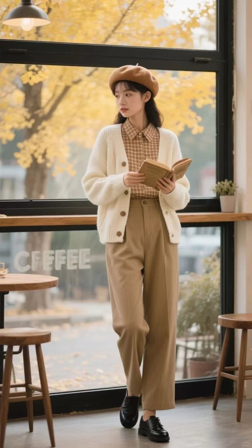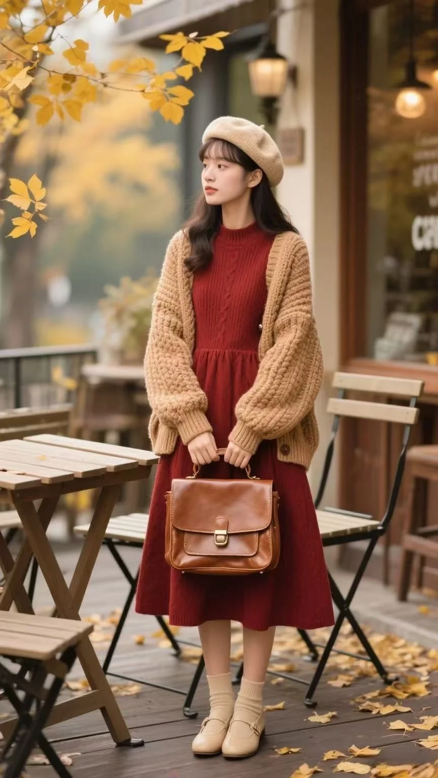 秋日氛围感拉满!这些复古穿搭太绝啦🍂\n宝子们,秋天的浪漫,都藏在这一组组超绝的复古穿搭里~\n✨软糯的米白色针织开衫,搭配卡其色半身伞裙,温柔似水。站在洒满阳光的咖啡店旁,仿佛是从旧时光里走来的文艺女主 ,优雅又迷人。配上同色系贝雷帽,精致感瞬间up。\n😍棕色灯芯绒外套内搭白色蕾丝衬衫,再配上格纹百褶裙,满满的复古学院风。拎上棕色的复古皮包,走在落叶纷飞的小道上,每一步都踏在秋日的浪漫里 。\n🥼驼色风衣与棕色格纹长裙的组合,大气又时尚。内搭高领毛衣,保暖又好看。坐在街边咖啡店,手捧一本书,一杯咖啡,就是秋日里最惬意的模样。\n😎还有棕色背带裤搭配米色毛衣,休闲随性中透着复古的腔调 ,背着棕色斜挎包,骑着单车穿梭在街道,仿佛回到了那个纯真美好的年代。\n💖宝子们,这些秋日复古穿搭有没有戳中你的心巴?快来评论区说说,你最pick哪一套呀~\n#秋日穿搭 #复古穿搭 #把糖炒栗子穿上身 #美拉德穿搭 #轻松拿捏秋日氛围感