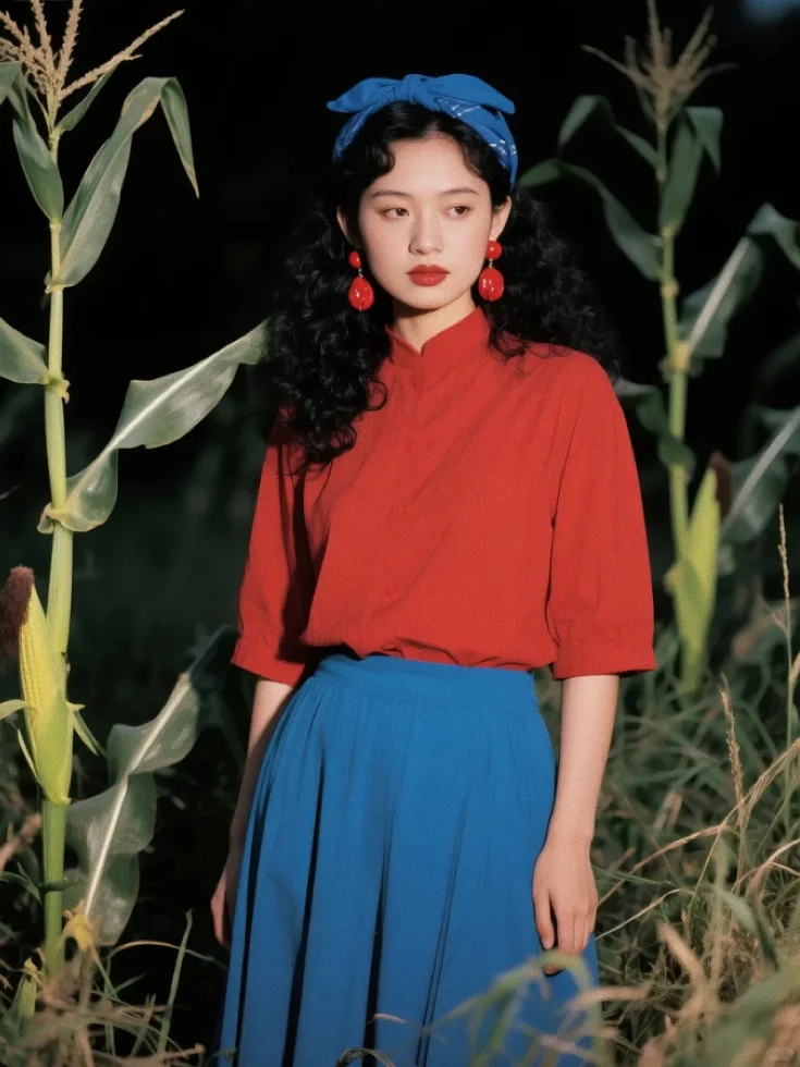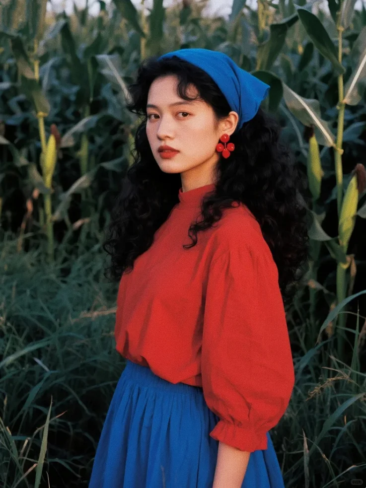 爱了爱了,这组穿搭真的是美到我了\n \n#我的调色是魔法 #打翻仲夏夜的调色盘 #相机里记录的生活边角料 #红蓝色系 #红蓝色调 #玉米地胶片感 #治愈系 #玉米地拍照 #红蓝色搭配 #穿搭