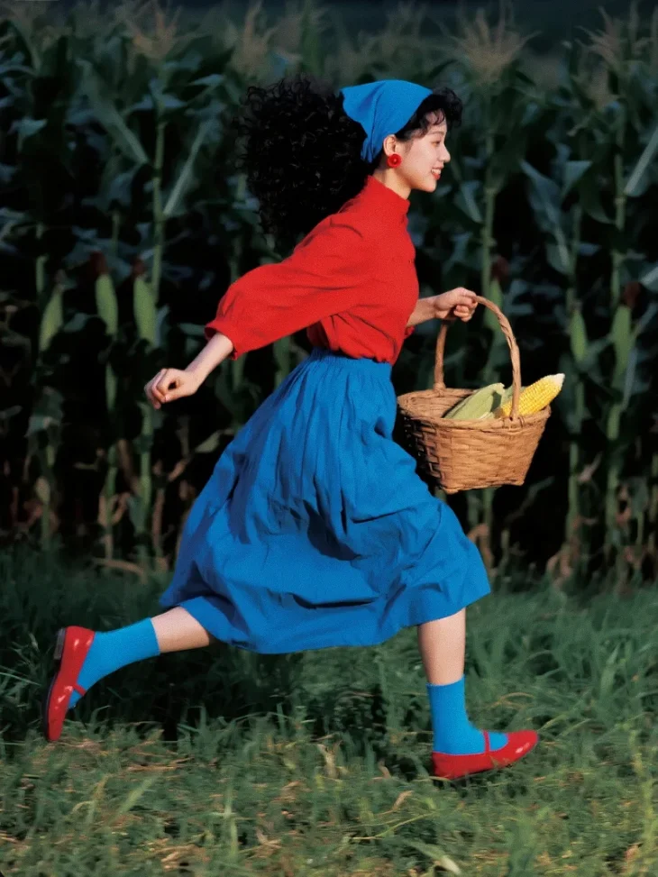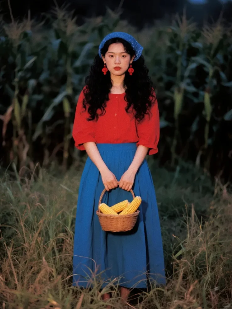 有被这组胶片美到~玉米地🎃|红蓝撞色穿
