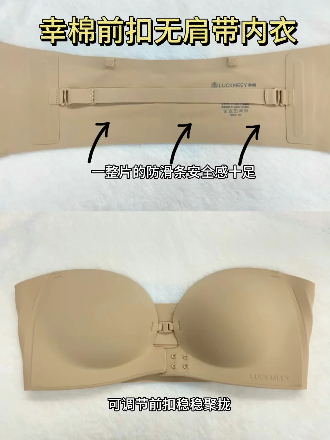 幸棉内衣真的不是为我量身定做的吗,怎么每次出新品都出在我心巴上啊,幸棉这个前扣无肩带真的一穿一个不吱声\n怎么一件无肩带内衣可以这么聚拢啊,我属于75b圆盘胸,穿这件都能轻轻松松聚拢出沟沟,往前扣的同时肉肉就自然被聚到中间了,都有胸大腰细那味了,好身材真的可以穿出来!\n防滑这块也是没的说,刚开始我怕他会掉,所以刚拿到手的时候在家试穿了好久,穿着蹦蹦跳跳好一阵我都出汗了它也没往下滑,内衣上面那一整片防滑条真不是盖的\n感觉已经很久没买到这么满意的内衣了,幸棉你会做内衣就多做好吗,反正这个幸棉前扣无肩带已经把我拿捏住了\n#吊带#聚拢内衣#幸棉#幸棉内衣#显身材#幸棉前扣无肩带#无肩带内衣#前扣内衣#夏季穿搭#ootd