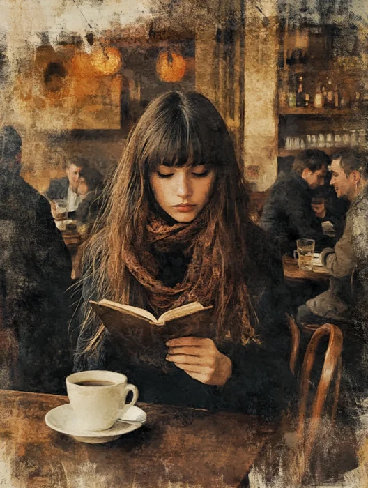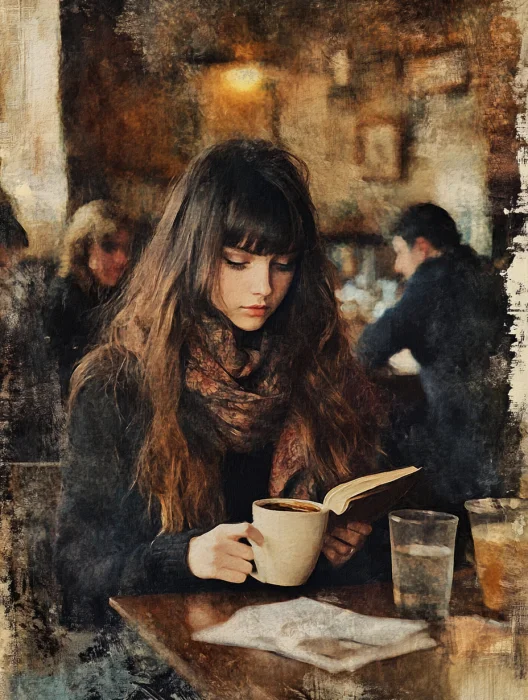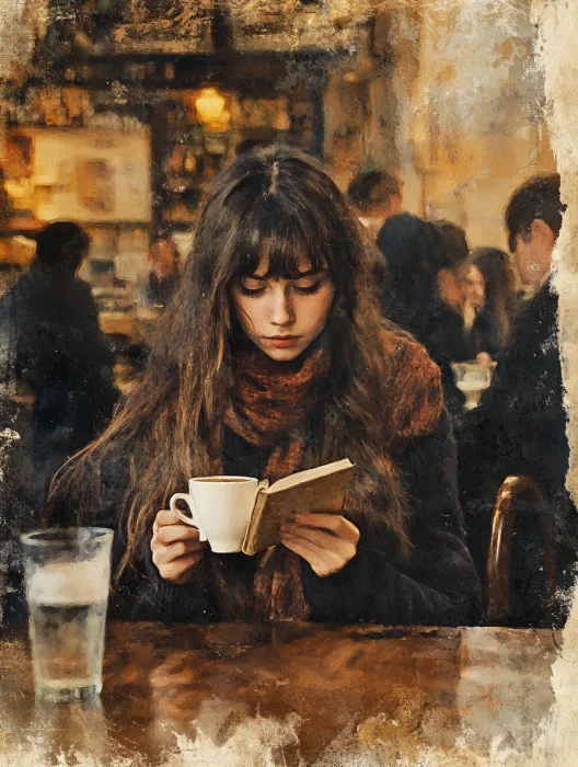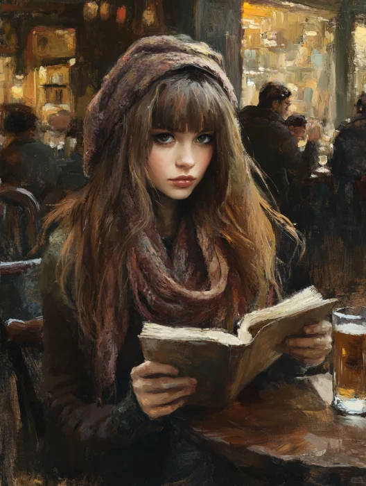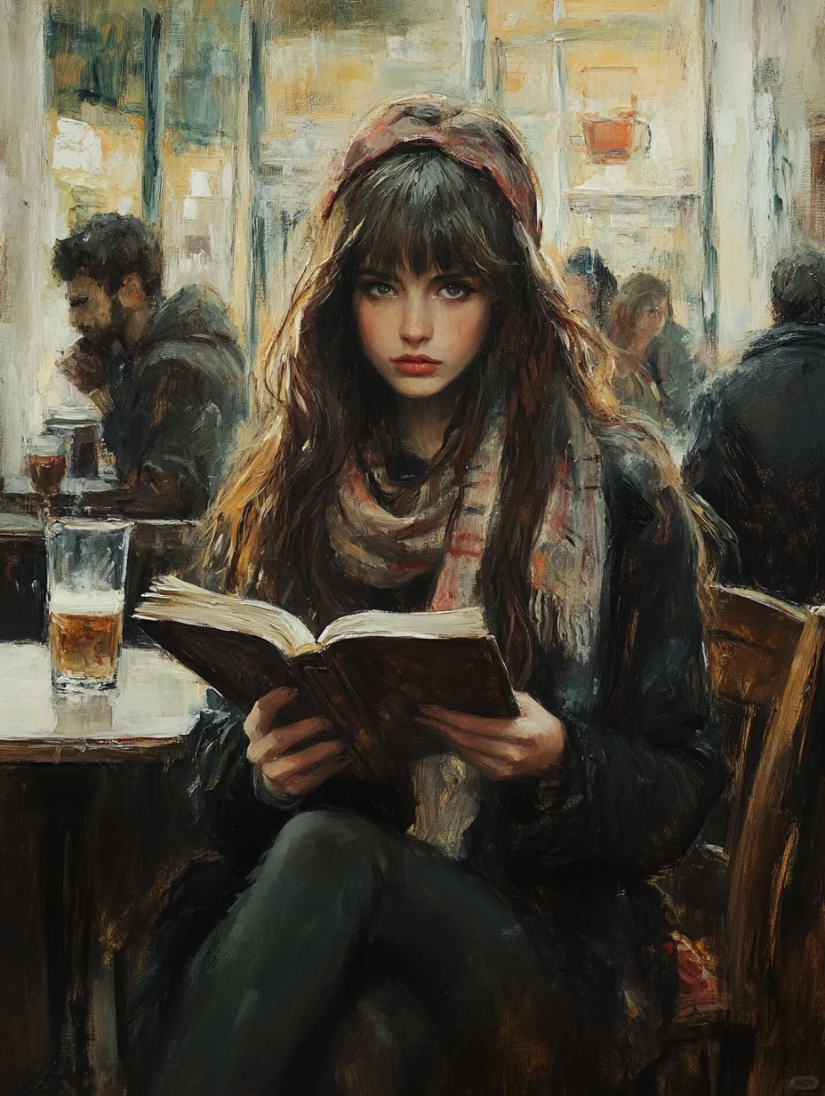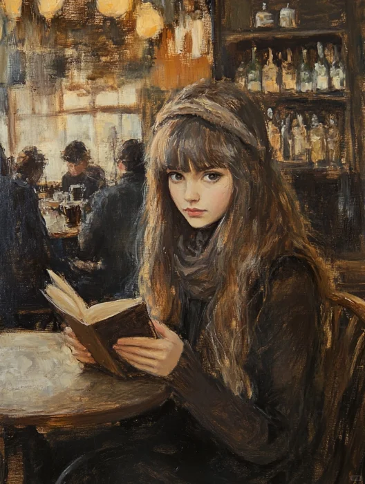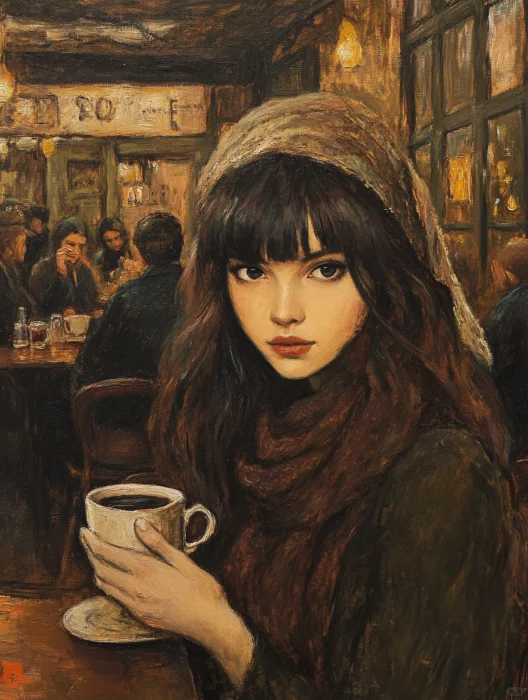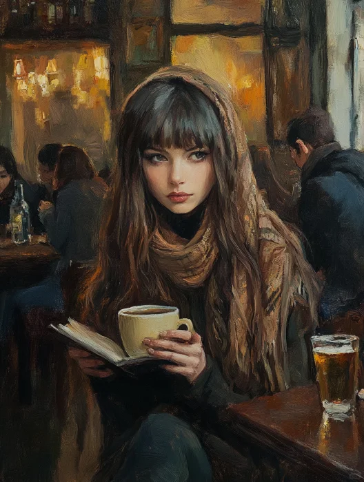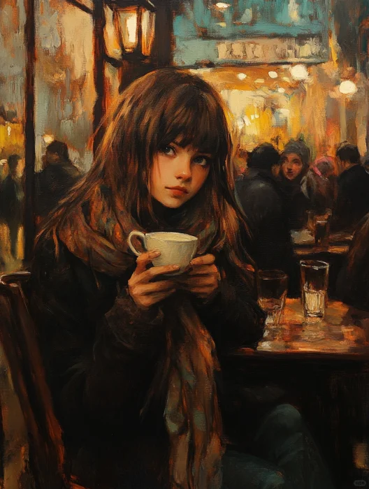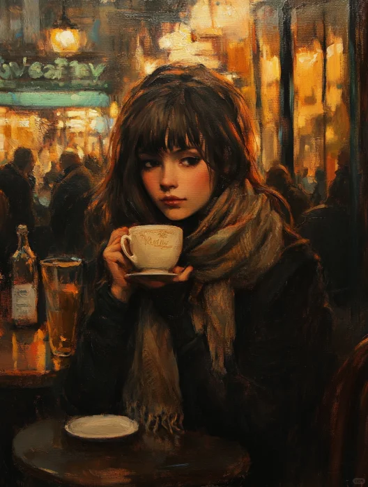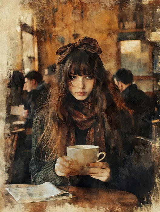 复古油画 | 咖啡店的女孩