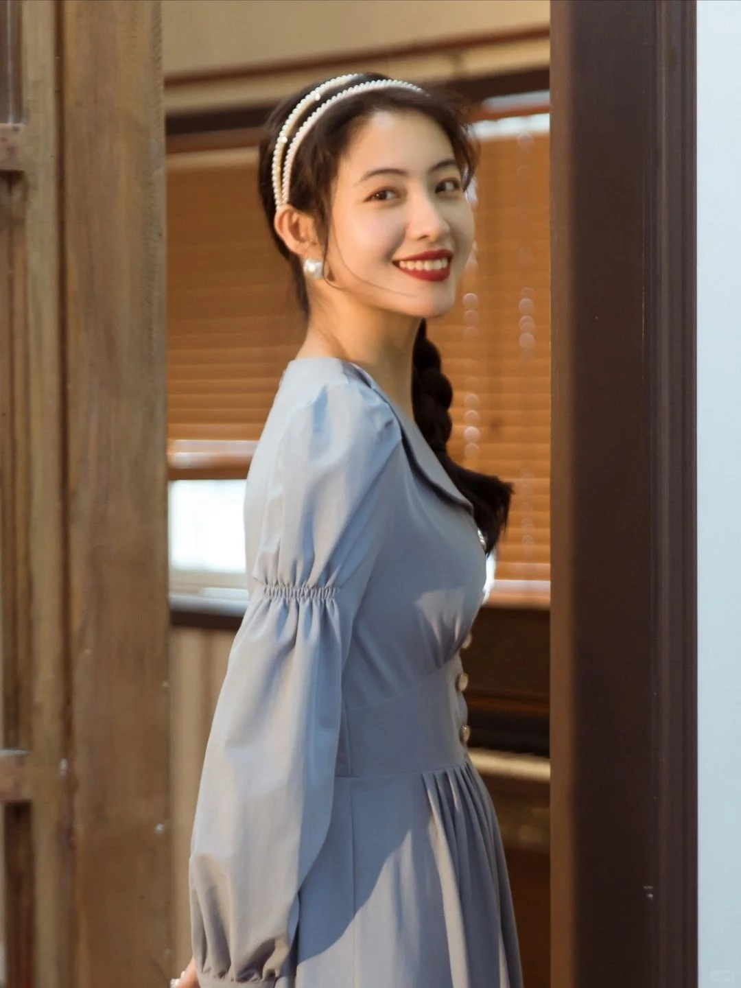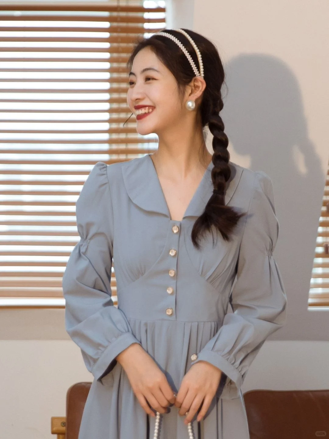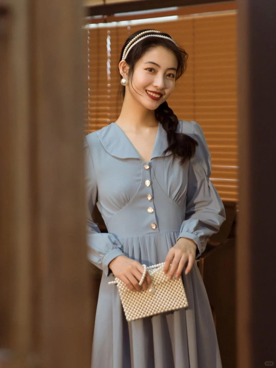 不同于复古港风的烈焰红唇,可爱又端庄的复古风也非常好看哦 还会给人一种眼前一亮的感觉\n在服装上 我选择了非常显白提气色的蓝色 而不同的蓝色给人的感觉也会略有不同\n⭐️浅蓝色的连衣裙 整体感觉偏活泼 更加显白 泡泡袖的肩膀很遮肉 也有设计感。\n发型上我选择了侧编麻花辫 配上珍珠耳夹和发夹,瞬间提升了温柔气质\n⭐️深蓝色连衣裙 整体感觉多了一丝成熟端庄 偏稳重一点的风格 与前面的浅蓝色形成了对比。\n发型上我选择了披肩卷发 配上珍珠发夹增加亮点 配上白纱拍照还有一丢丢高级的感觉🙈\n \n复古港风写真 少女写真 北京约拍
