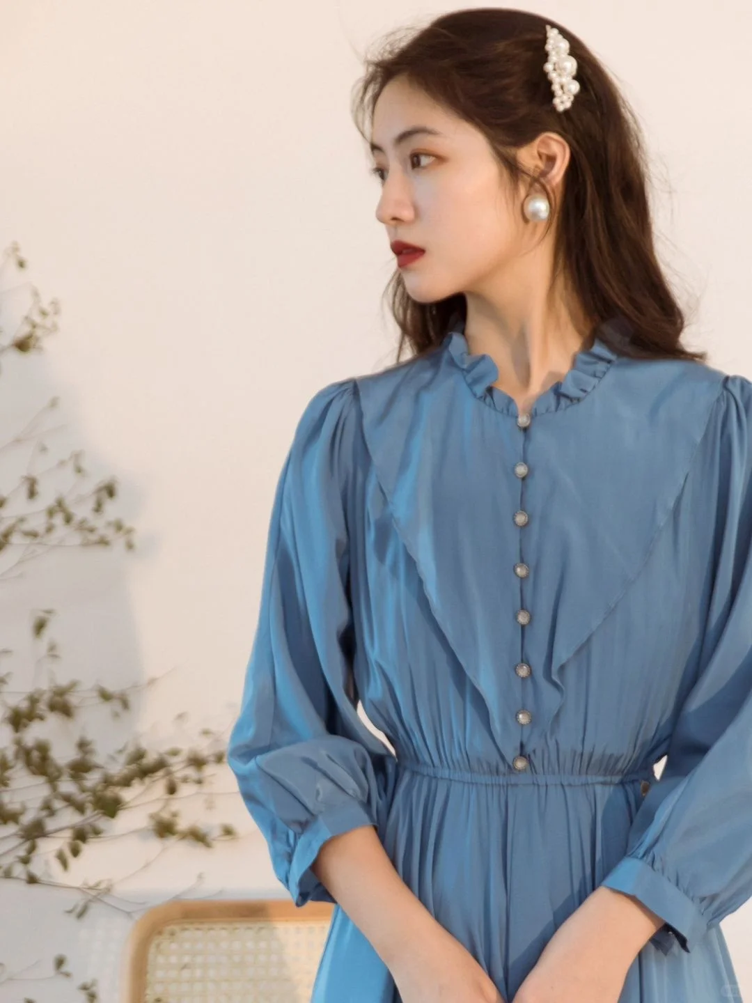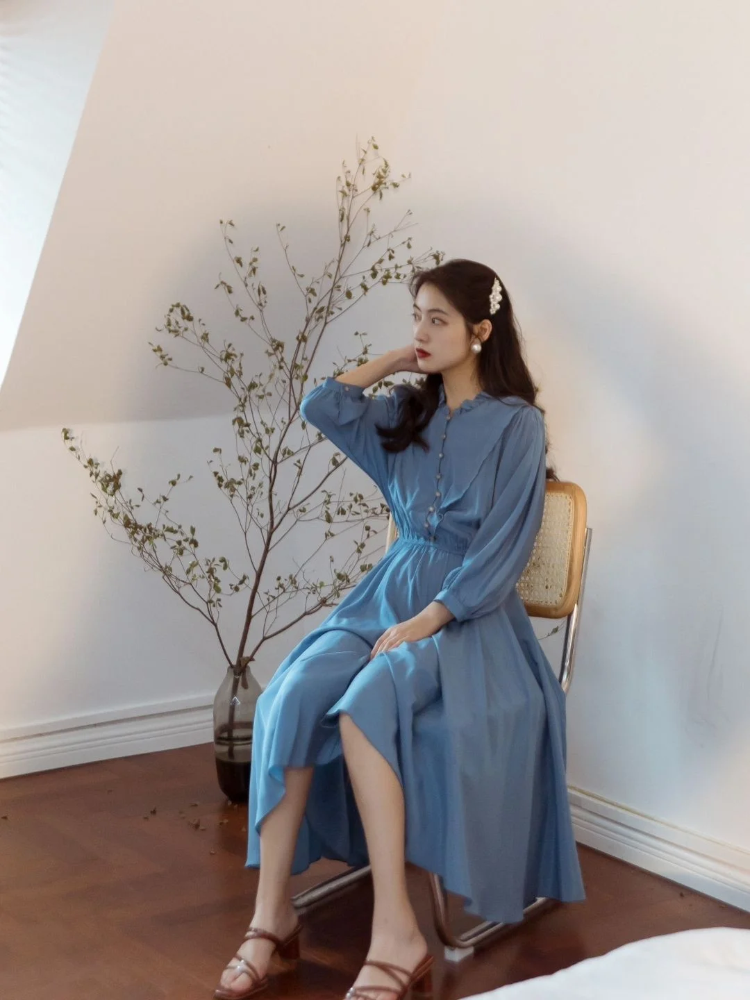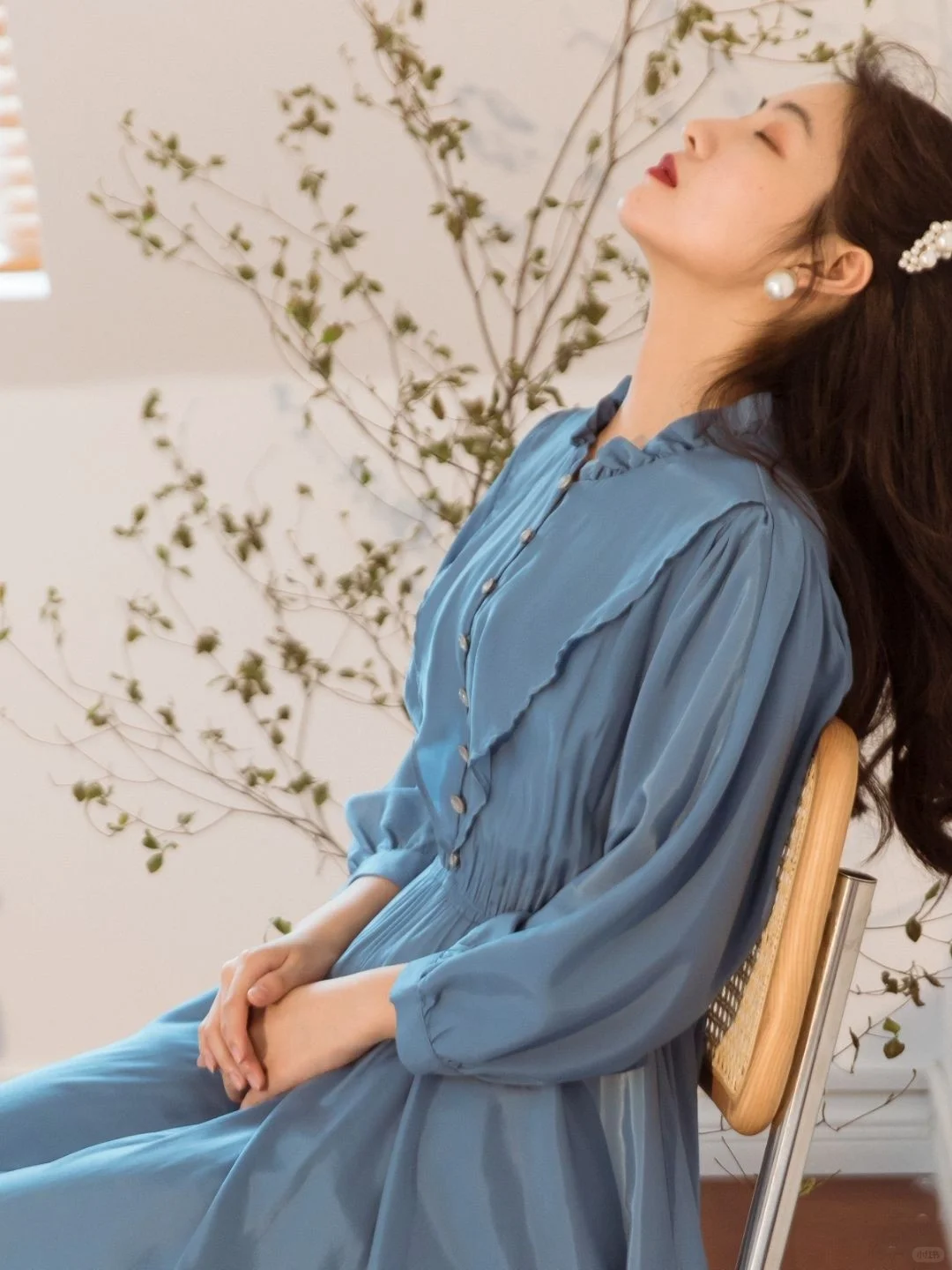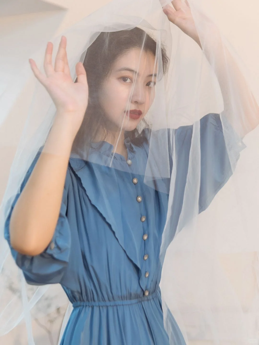 不同于复古港风的烈焰红唇,可爱又端庄的复古风也非常好看哦 还会给人一种眼前一亮的感觉\n在服装上 我选择了非常显白提气色的蓝色 而不同的蓝色给人的感觉也会略有不同\n⭐️浅蓝色的连衣裙 整体感觉偏活泼 更加显白 泡泡袖的肩膀很遮肉 也有设计感。\n发型上我选择了侧编麻花辫 配上珍珠耳夹和发夹,瞬间提升了温柔气质\n⭐️深蓝色连衣裙 整体感觉多了一丝成熟端庄 偏稳重一点的风格 与前面的浅蓝色形成了对比。\n发型上我选择了披肩卷发 配上珍珠发夹增加亮点 配上白纱拍照还有一丢丢高级的感觉🙈\n \n复古港风写真 少女写真 北京约拍