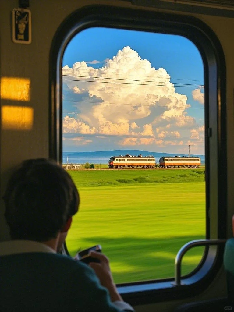 那远山呼唤我🌳\n曾千百次路过🐾\n半山腰摘几朵💐\n便飘向歌颂者🎤\n那份简单离开后🍃\n就再也没见过🥂\n单程票的火车🚞\n一路上哼着歌”🎶\n#火车窗外风景 #氛围感背景图 #列车上的风景 #治愈系背景图 #透过车窗看风景 #那远山呼唤我 #最好的风景永远在路上 #去听旷野的风 #世界是旷野 #听了风的话去想去的地方