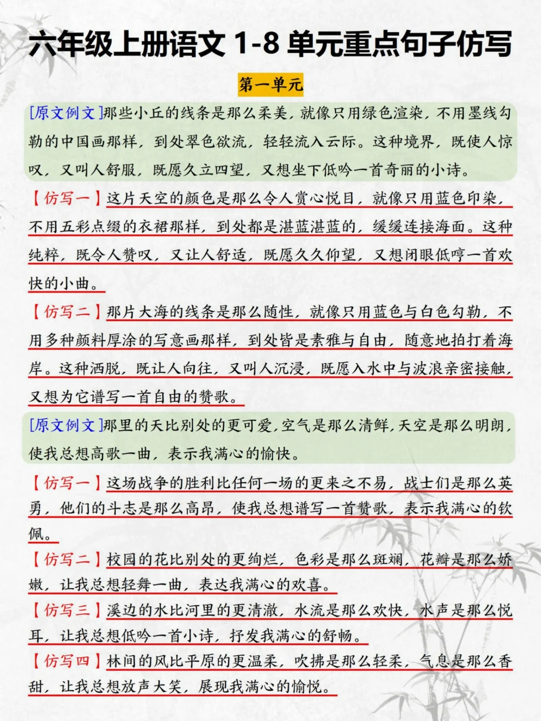 存下吧‼️六上语文仿写句子➕小练笔🔥