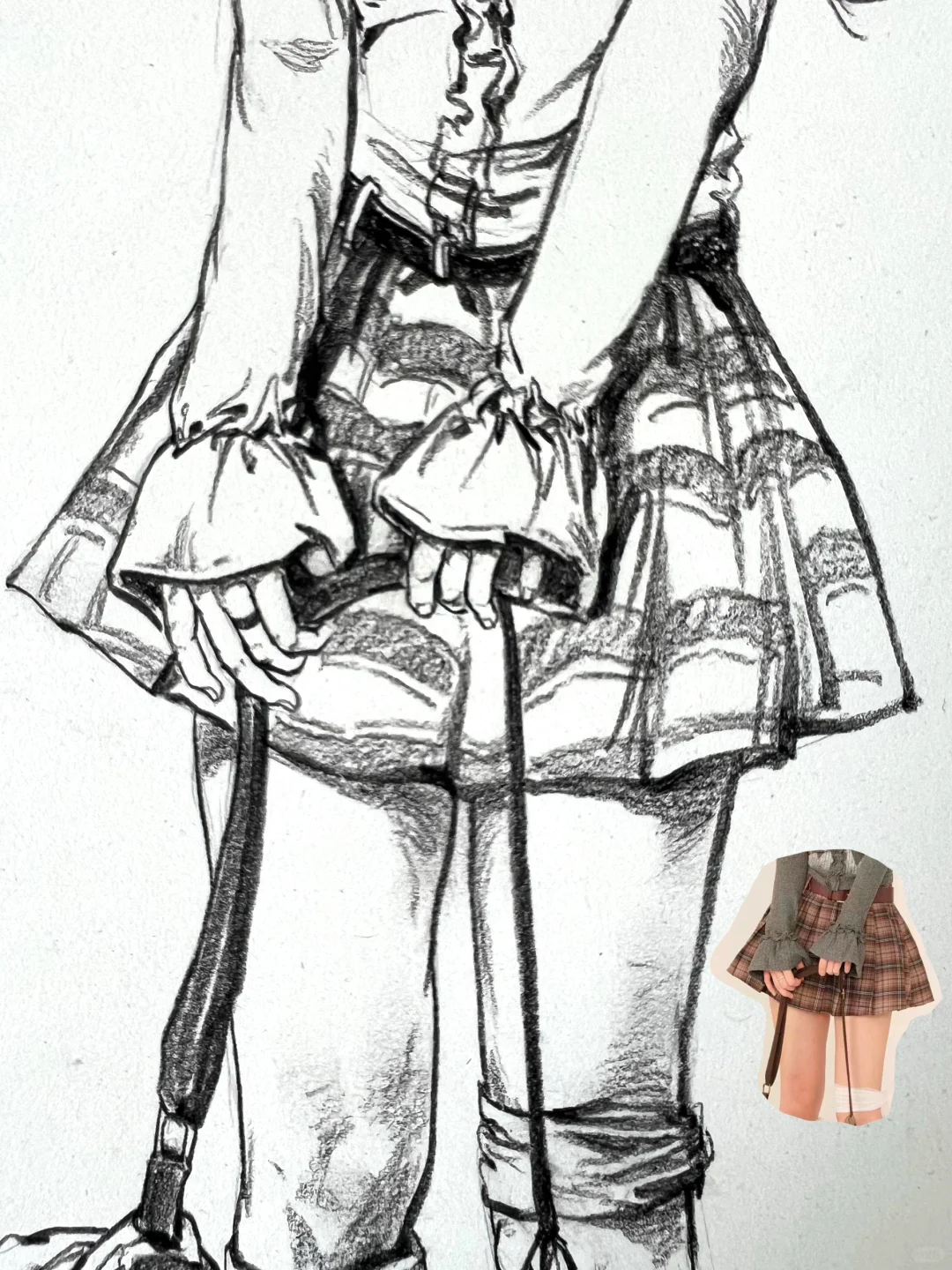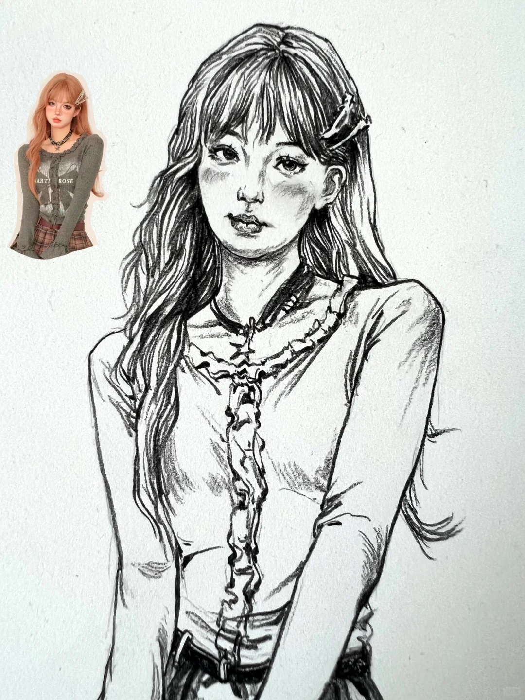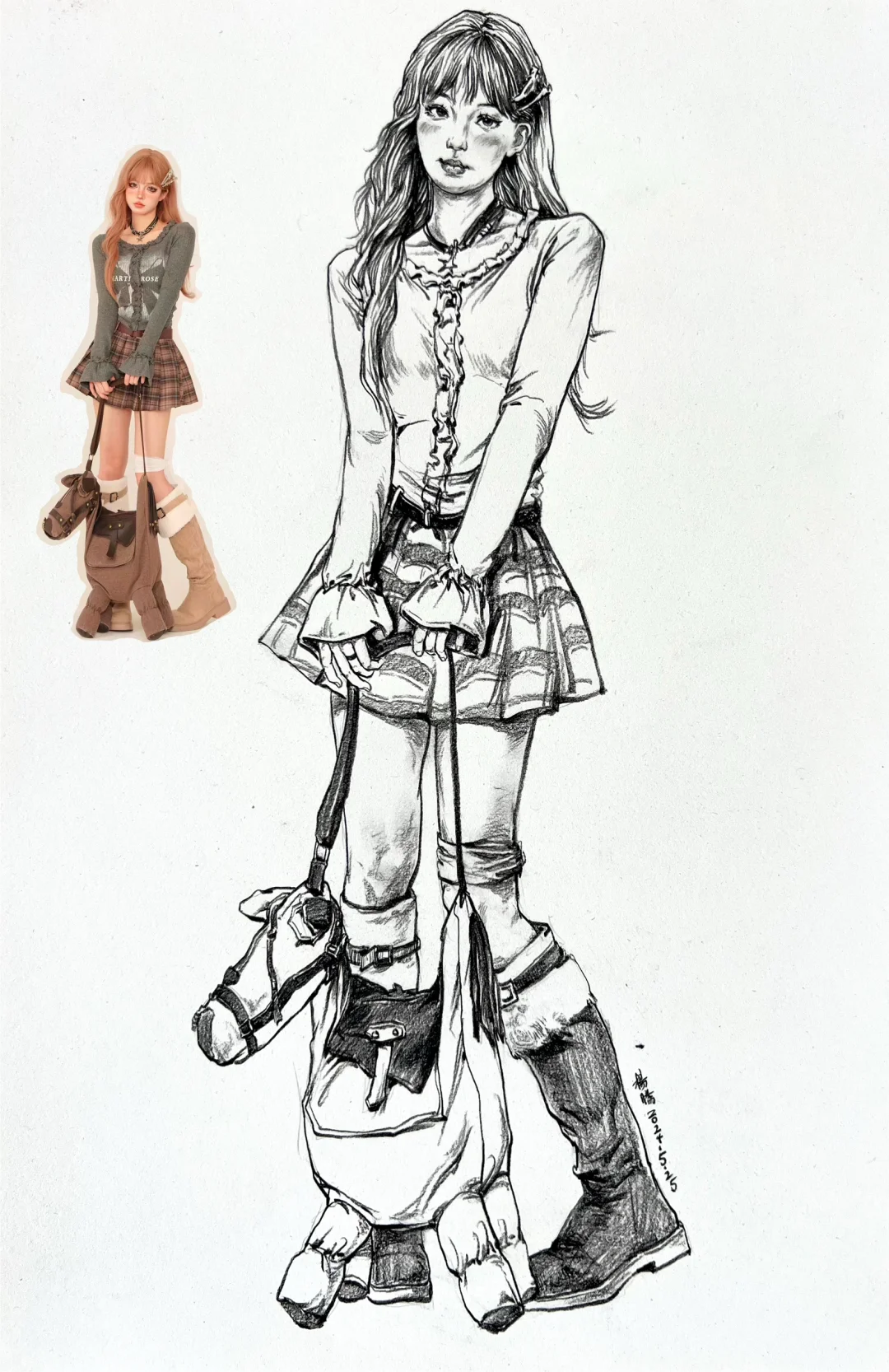 人物速写 夏季着重女青年站姿 长发女青年