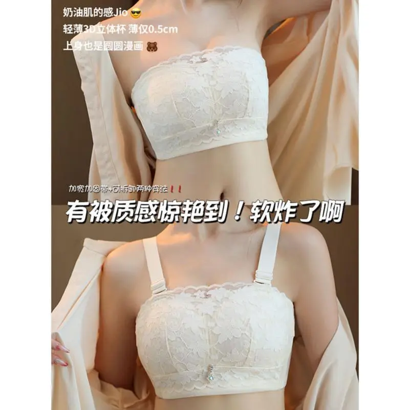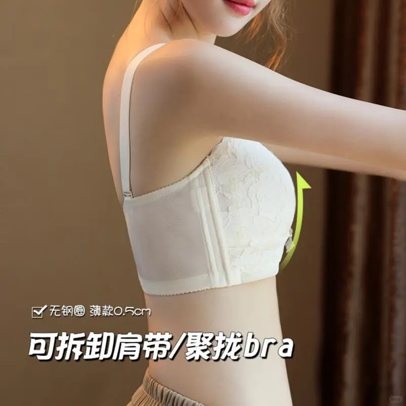 大码胖MM无肩带内衣蕾丝文胸女夏季小胸聚