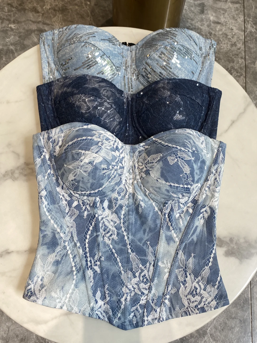 2025辣妹胸衣封神榜🔥三款牛仔鱼骨胸衣款选疯了!\n今年的牛仔胸衣也太会了吧!入了三款各有千秋的宝藏款,试穿后直接纠结到失眠,每款都想焊在身上✨ 快来pick你的本命款!\n牛仔蕾丝款|甜酷天花板\n牛仔的硬朗撞上蕾丝的柔媚,这反差感直接戳中我😭 拼接的水溶蕾丝边缘超精致,版型是带鱼骨的那种,上身立马收腰显曲线,支撑力很在线。\n穿搭公式:配高腰阔腿牛仔裤+老爹鞋,美式复古辣妹那味儿就有了;外披件白衬衫,通勤约会都能hold住,甜酷女孩闭眼冲!\n牛仔蕾丝亮片款|派对焦点担当\n这款简直是为闪光灯而生的!牛仔基底上叠了蕾丝,还缀满细碎亮片,阳光下bling bling的走在街上被问爆链接。手工串珠的细节超重工,但不会浮夸,反而有种贵气感。\n心机点:穿去音乐节或生日派对,妥妥的全场C位,拍照根本不用找角度!\n纯亮片款|摩登氛围感神器\n2025春夏秀场超火的亮片元素实锤了!整件满铺亮片,灯光下光泽流动超灵动。\n搭配思路:单穿配黑色皮裙巨辣,叠穿在西装里露个边,通勤也能穿的小性感,低调又有态度。\n纠结了三天还是all in了…毕竟不同场合都用得上!你们最pick哪款?评论区告诉我👇\n#2025流行穿搭 #牛仔胸衣 #辣妹必备 #亮片穿搭 #内衣外穿 #鱼骨胸衣穿搭 #胸衣外穿 #性感上衣 #鱼骨上衣 #鱼骨吊带 #抹胸鱼骨上衣 #短款上衣 #胸衣 #束身衣 #抹胸 #胸衣穿搭 #鱼骨背心 #抹胸鱼骨上衣 #鱼骨胸衣穿搭 #束腰上衣 #鱼骨胸衣 #收腰上衣 #上新 #塑形 #束身衣