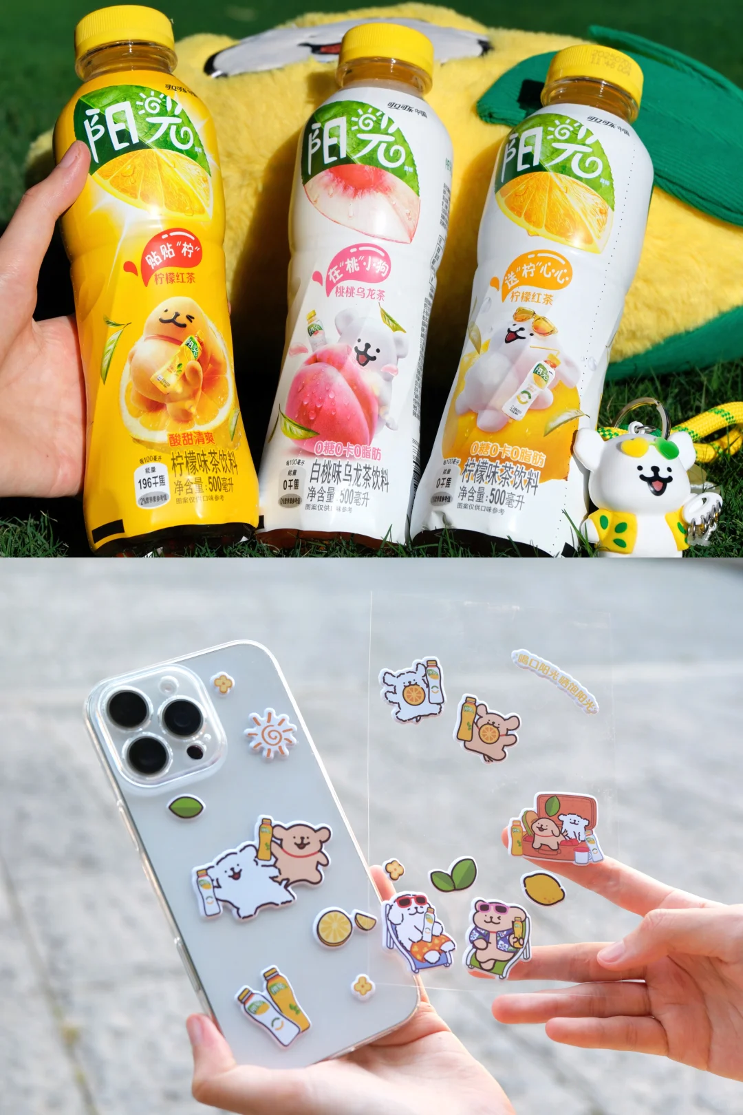作为线条小狗的死忠粉🤗\n这次收到「阳光」茶 × 线条小狗限定巨型礼盒\n趁着阳光好天气,速速带上它们外出拍照啦!\n这波联名真的把我们粉丝的小心思全猜透了!\n \n每瓶「阳光」茶上印着不同图案的线条小狗\n还可以自己DIY可爱的小狗贴纸🐕\n巨型礼袋真的超级大,背上它瞬间阳光upup\n还有小狗造型的钥匙链、水杯和柠檬抱枕!\n不得不说每一样都特别实用🤩\n带上它们感觉自己元气满满\n「阳光」茶真的太懂我们啦嘿嘿!\n \n之前就一直爱喝「阳光」茶,\n这次喝还是一样惊艳:\n真茶萃取的茶香特别浓\n入口先是柠檬的鲜爽🍋\n像咬了口刚晒过太阳的柠檬,完全不涩。\n0 糖款喝起来也没负担💖\n果味沁心的同时还带着点淡淡的花香,\n喝的时候盯着瓶身小狗,感觉连空气都变甜了!\n#阳光茶 #来拍照了 #甜妹 #宝藏女孩 #女大学生 #我的日常 #线条小狗首个阳光联名 #喝口阳光晒饱阳光 #晒饱阳光的果味茶 #线条小狗 #阳光小狗瓶