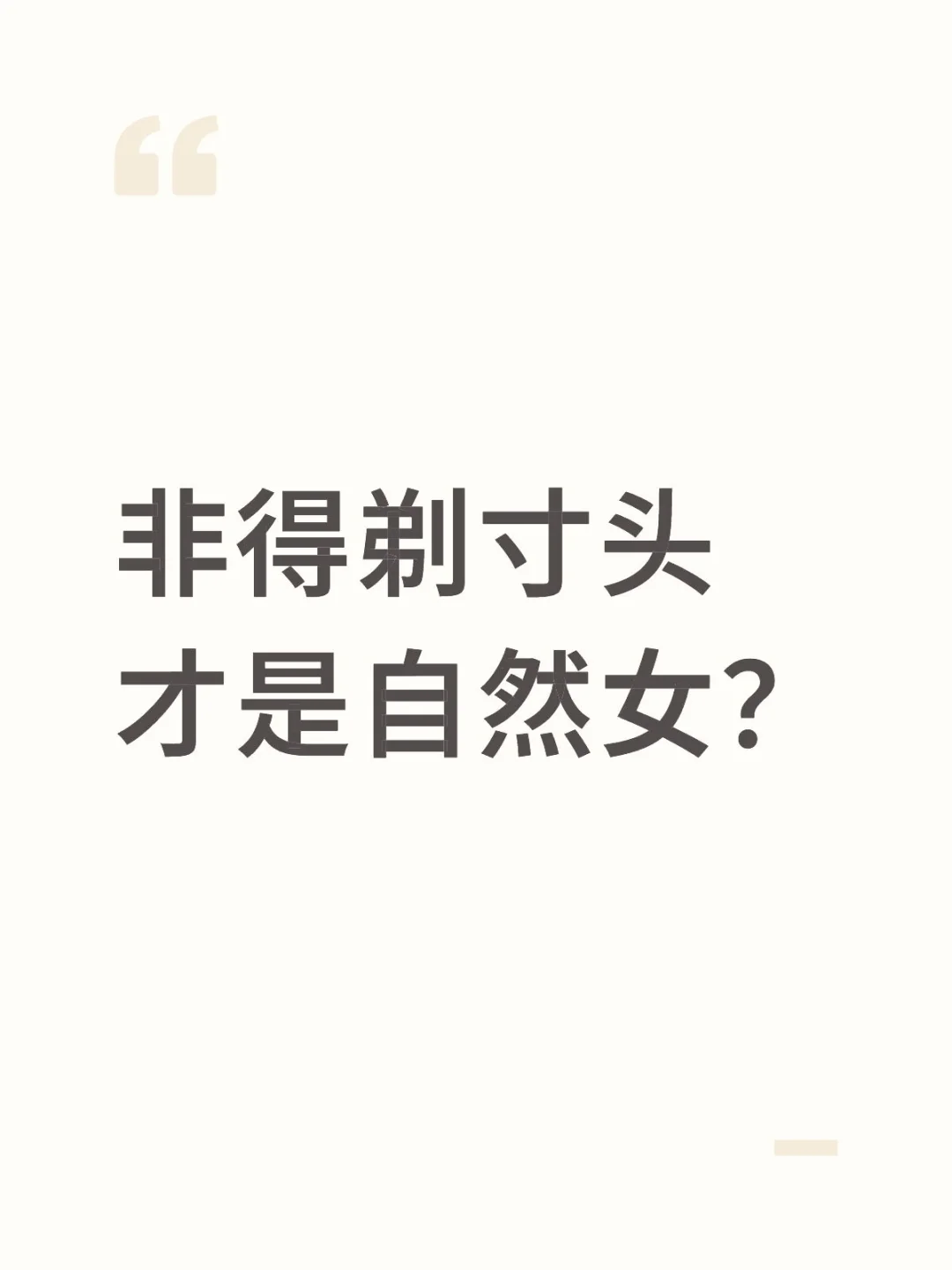 非得剃寸头才是自然女?因为拒绝女性被定义所以塑造出了反定义的自然女形象,不也是一种刻板印象吗\n本人看到一篇帖子底下说长头发不是自然女无端联想#女性主体性