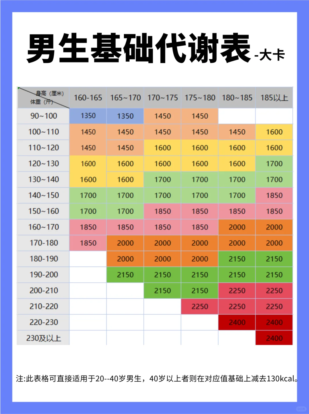 成年男性、女性基础代谢表🔥你是哪个阶段