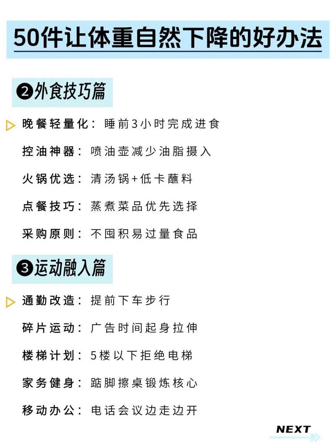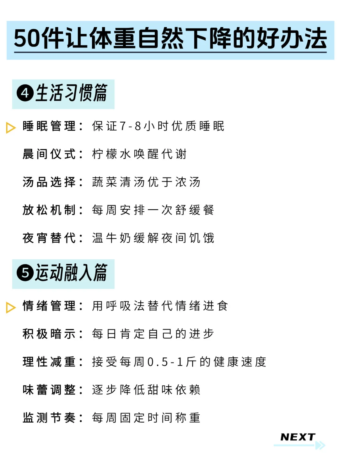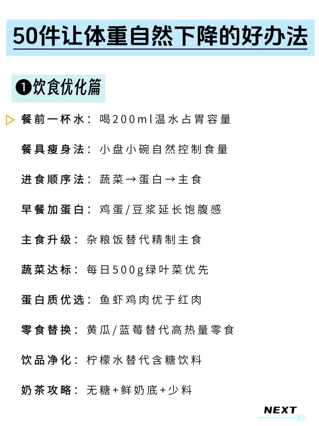你是不是也经历过这样的循环?🙋♀️\n想变得更轻盈,却对“节食”二字本能抗拒;\n办完健身卡热情满满,一周后却找尽借口;\n每晚立志早睡,又不知不觉刷手机到深夜…\n其实真相是:\n我们需要的不是咬牙切齿的自律\n而是融入生活的温柔习惯\n-\n5个让你悄悄变轻盈的生活仪式\n1️⃣ 调整进食顺序:蔬菜→蛋白质→主食\n让膳食纤维先占领胃容量,自然吃得少又饱得久\n2️⃣ 给晚餐设闹钟:睡前3小时结束进食\n让肠胃在夜间专心修复而非消化堆积\n3️⃣ 创造步行机会:提前一站下车/用楼梯代替电梯\n日积月累每天多消耗200卡路里\n4️⃣ 水杯永远在手边:喝够1.5L水\n分辨到底是“嘴馋”还是“真渴”\n5️⃣ 把睡眠当保养:睡足7小时\n瘦素会在深睡眠时悄悄工作\n-\n这些习惯从来不需要严格执行\n今天做到3件,明天尝试4件\n慢慢让身体找到舒适的状态\n当你不再把“控制体重”当作任务\n反而会在某个清晨突然发现\n穿衣服更挺拔了\n呼吸更顺畅了\n整个人像被注入了新鲜氧气\n真正的改变\n从来都发生在与身体和解的路上\n#在小红书轻养生 #饮食与生活习惯 #健康的饮食习惯 #生活习惯 #饮食习惯养成 #好习惯 #好习惯养成 #女生必看 #提高代谢 #提高身体代谢