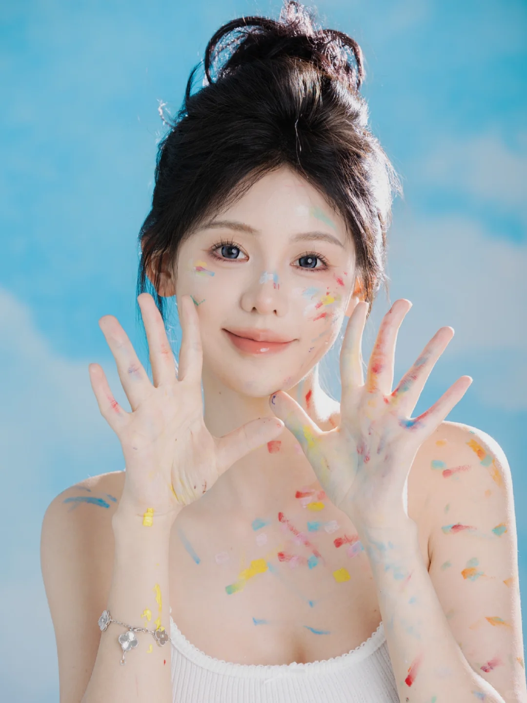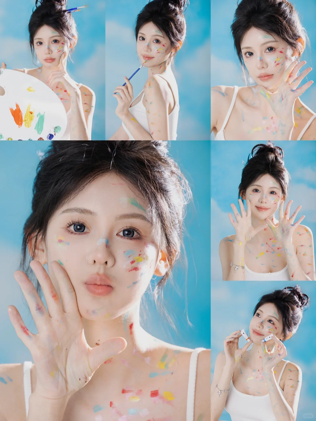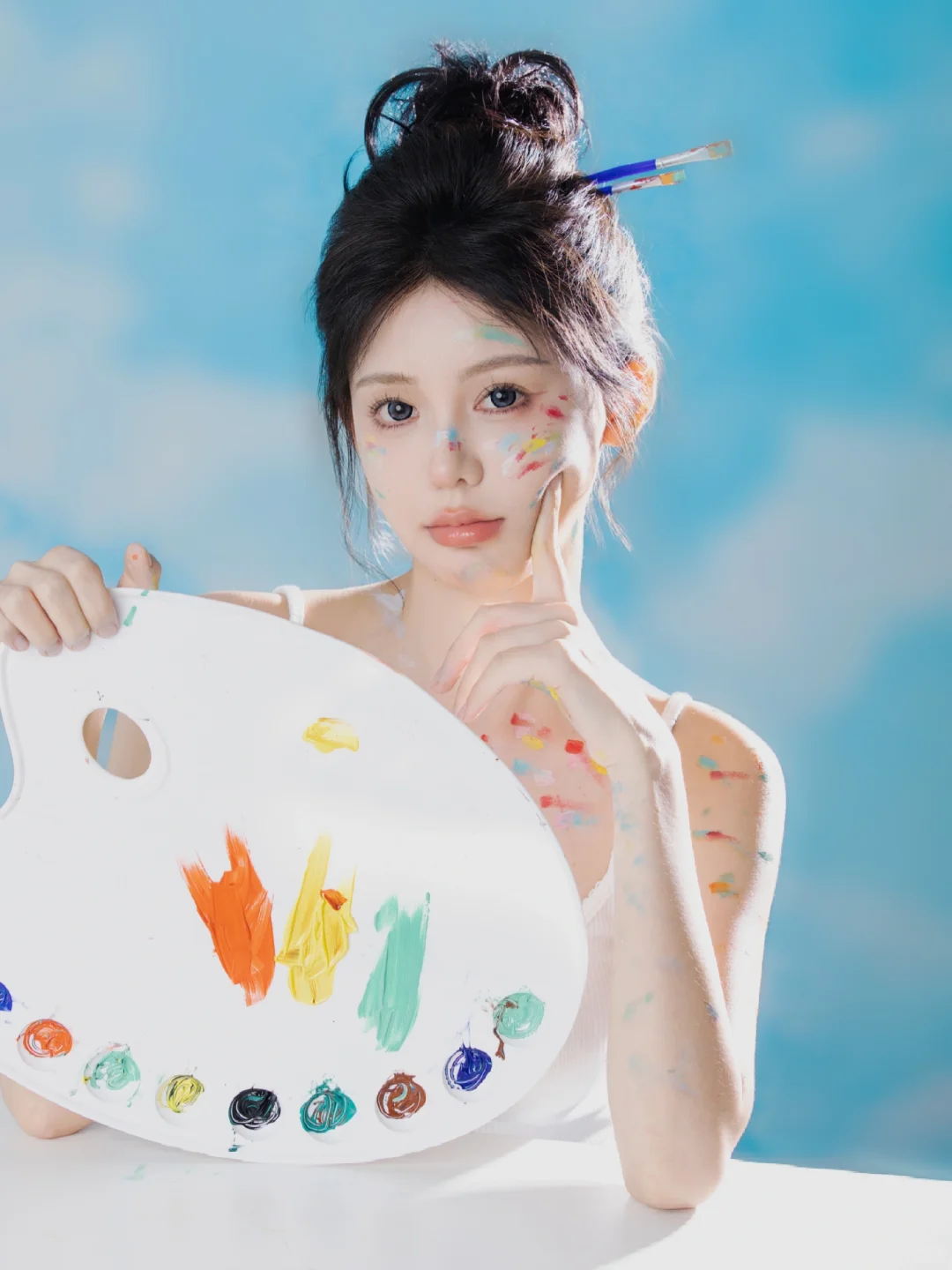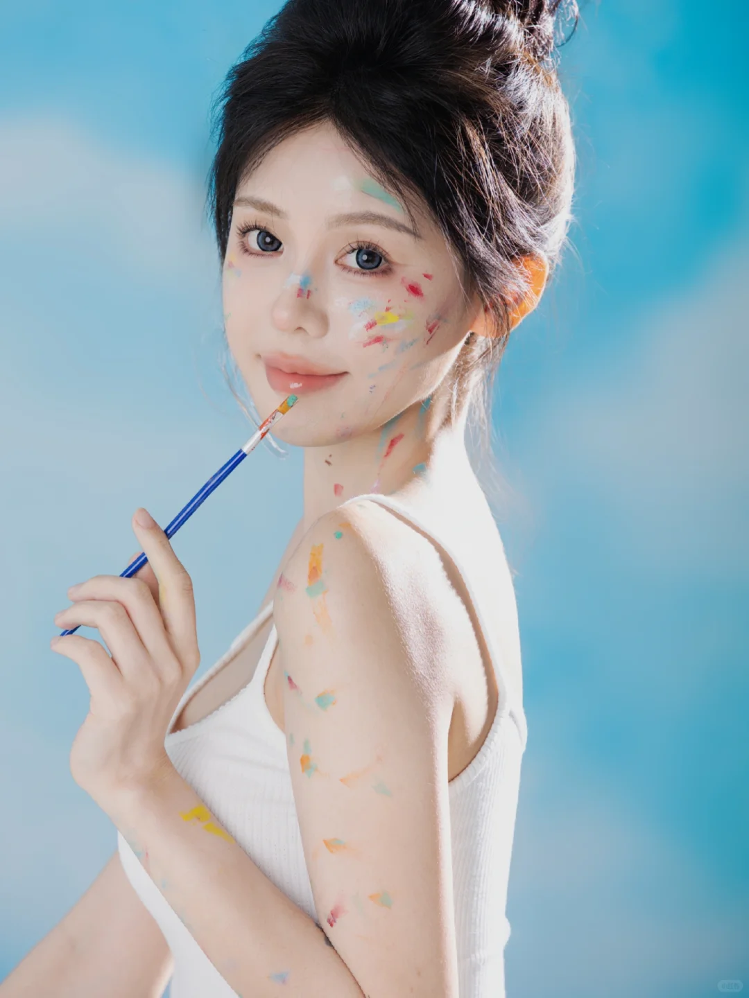 氧气感韩系少女油彩肖像写真\n夏天当然要多姿多彩🌈啦!\n~\n油彩调色与少女的俏皮感😉\n混搭带来的夏日活力太奇妙了\n~\n杭州写真|杭州约拍|少女写真|油彩肖像写真\n