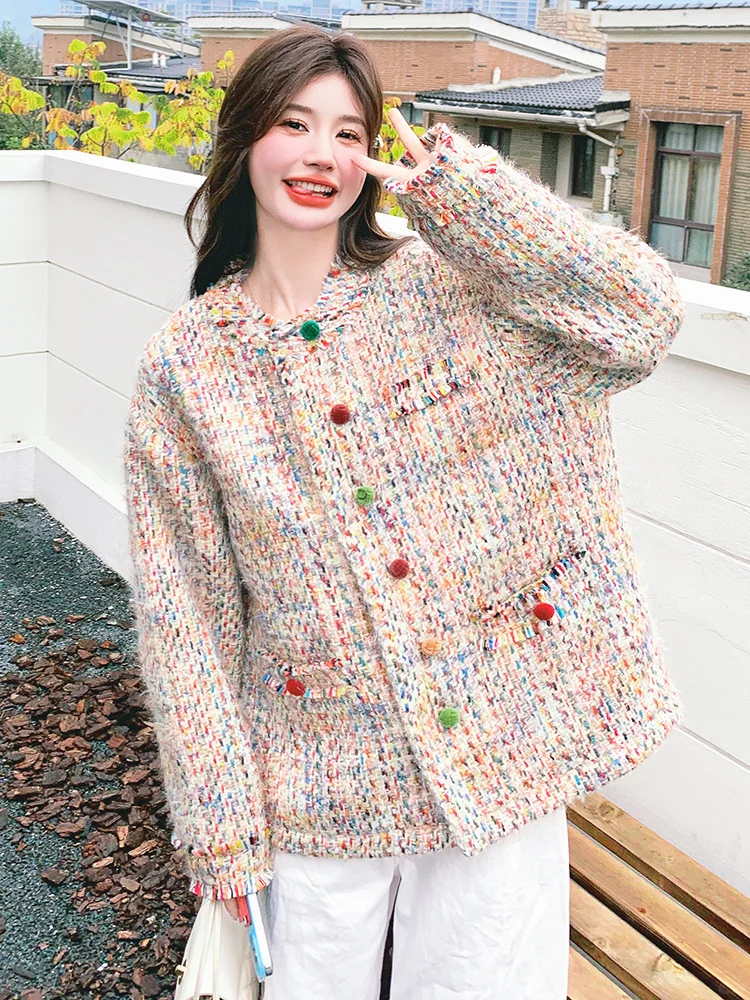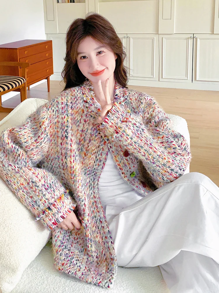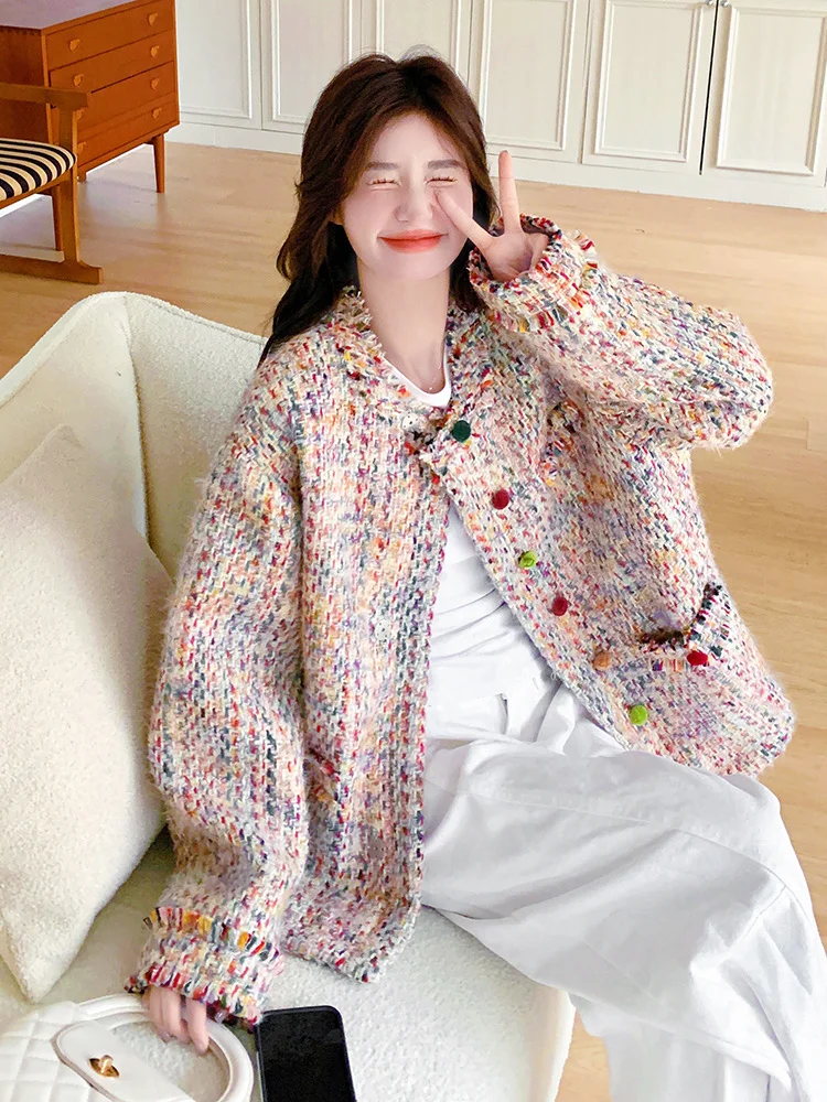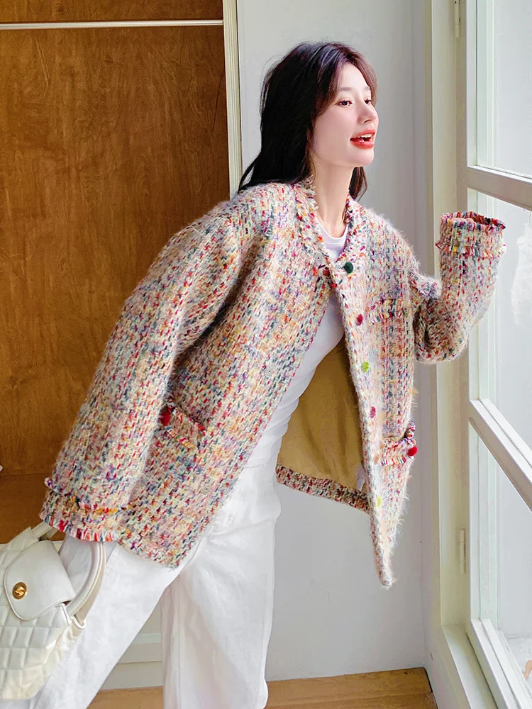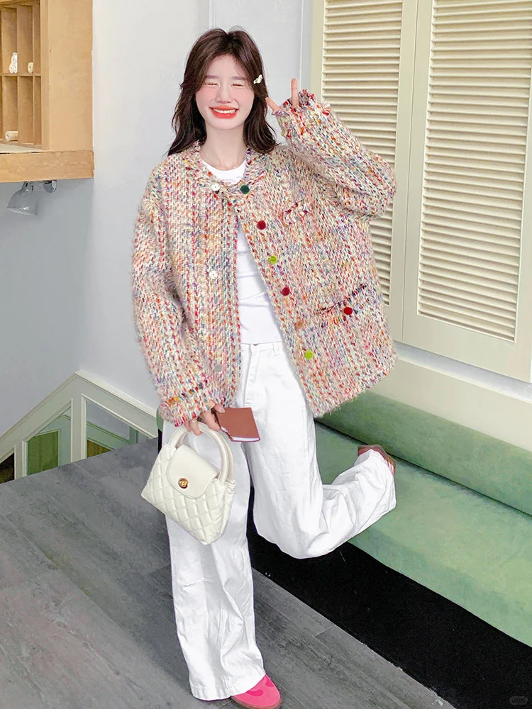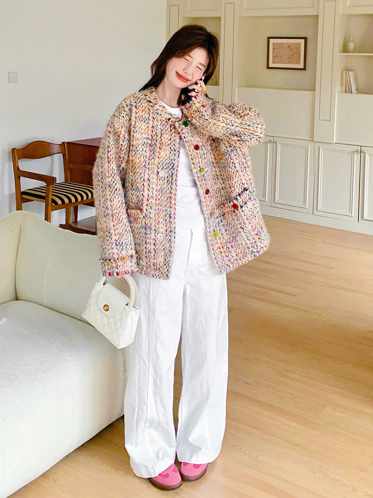 小橙子/八天售后/超好看别致独特高级感多巴胺彩色编织小香风外套