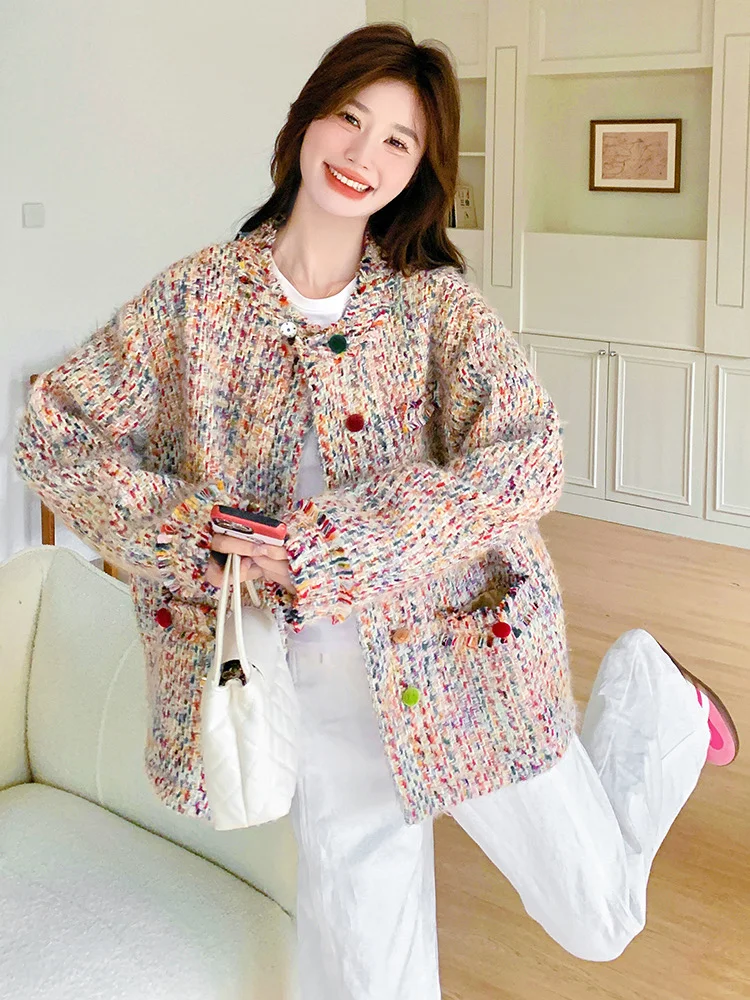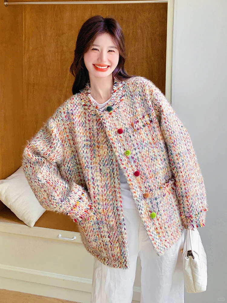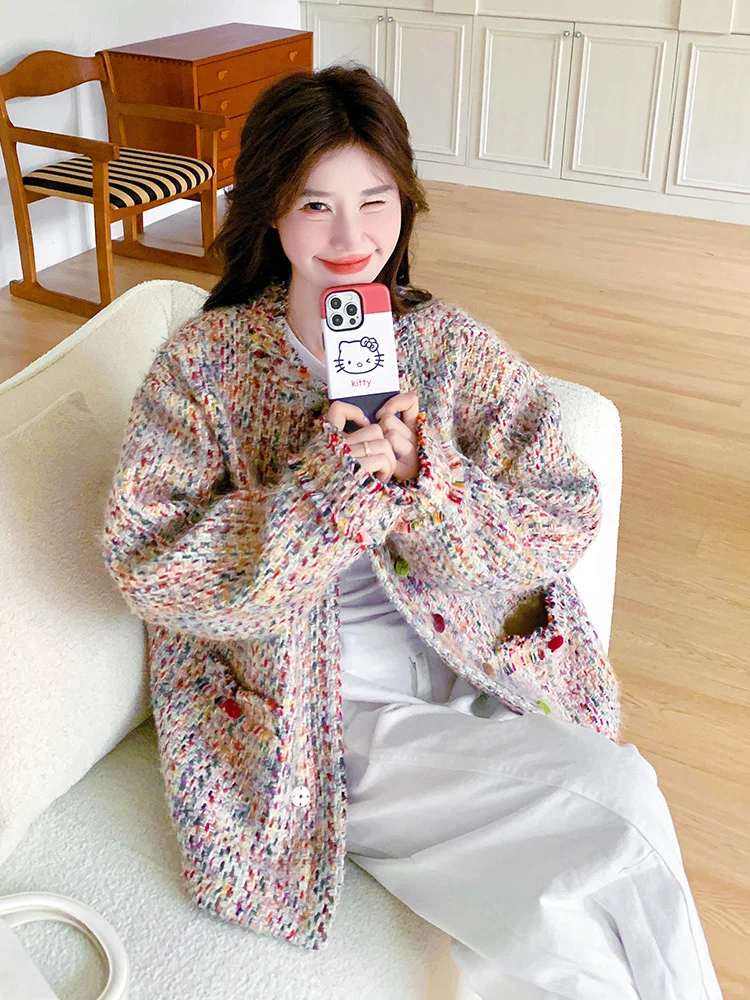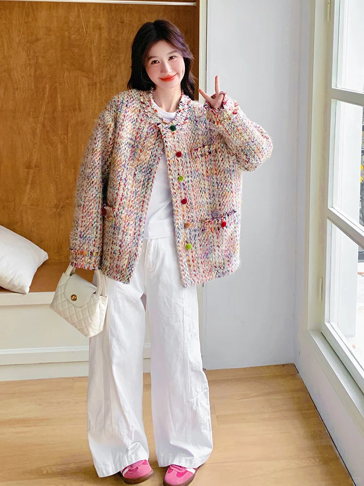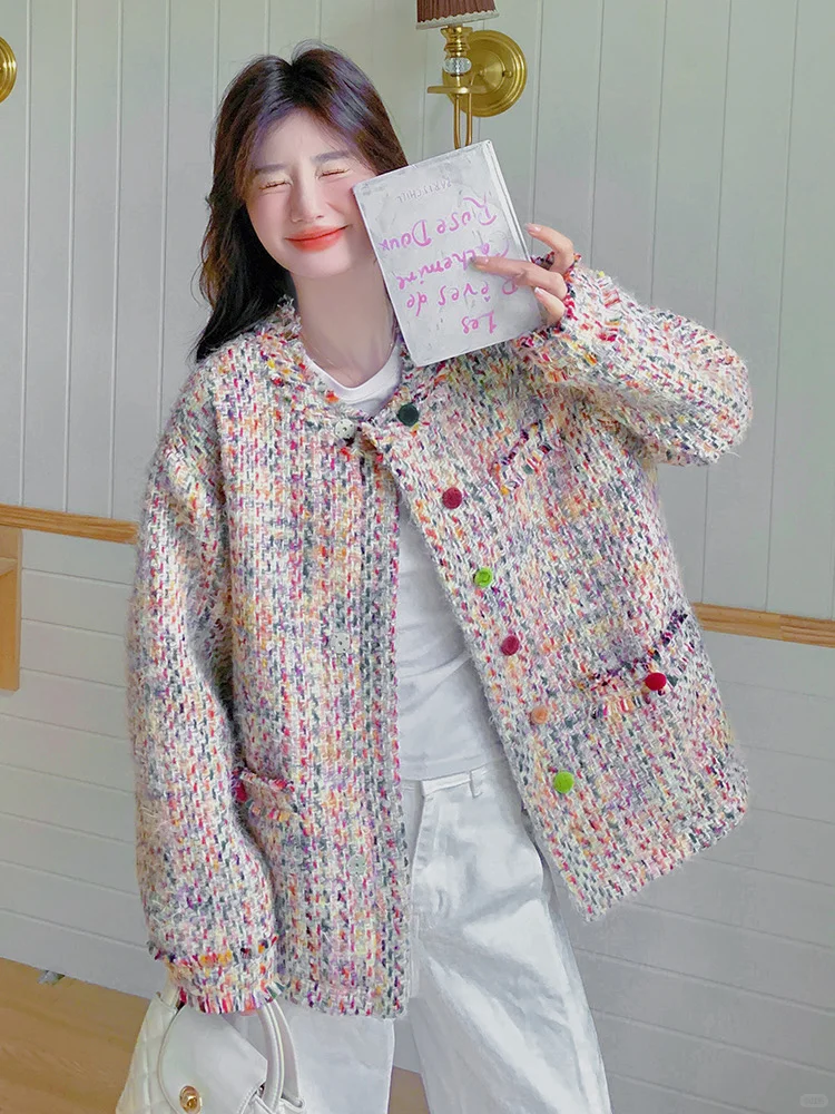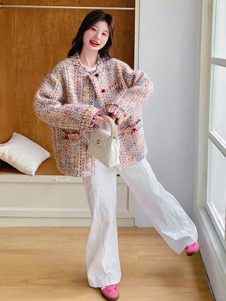小橙子/八天售后/超好看别致独特高级感多巴胺彩色编织小香风外套