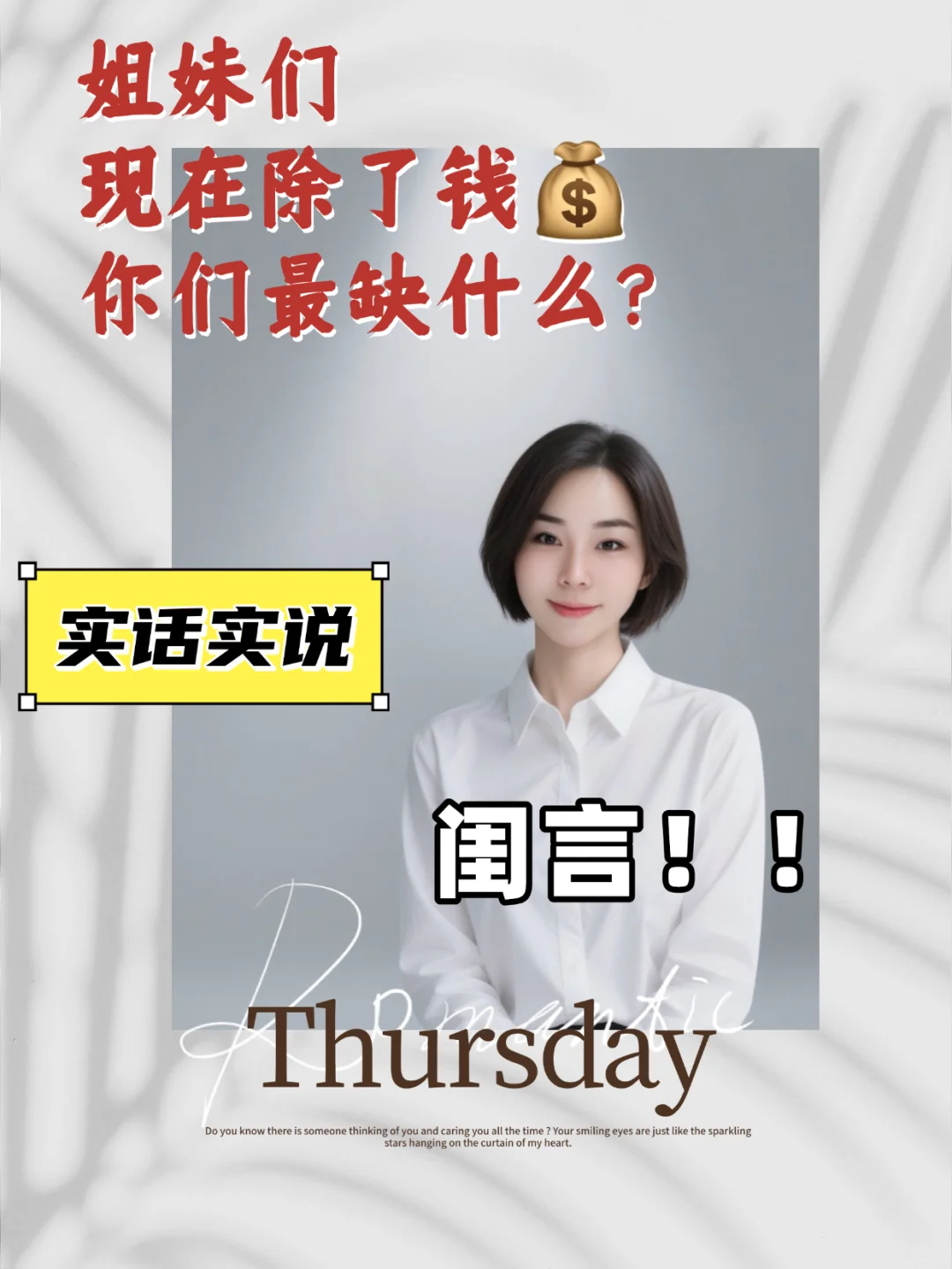 文案:👭姐妹们!你们现在除了钱💰\n你们最缺什么?\n人群:\n20-50 女🌹\n类型:服装 百货 日化\n