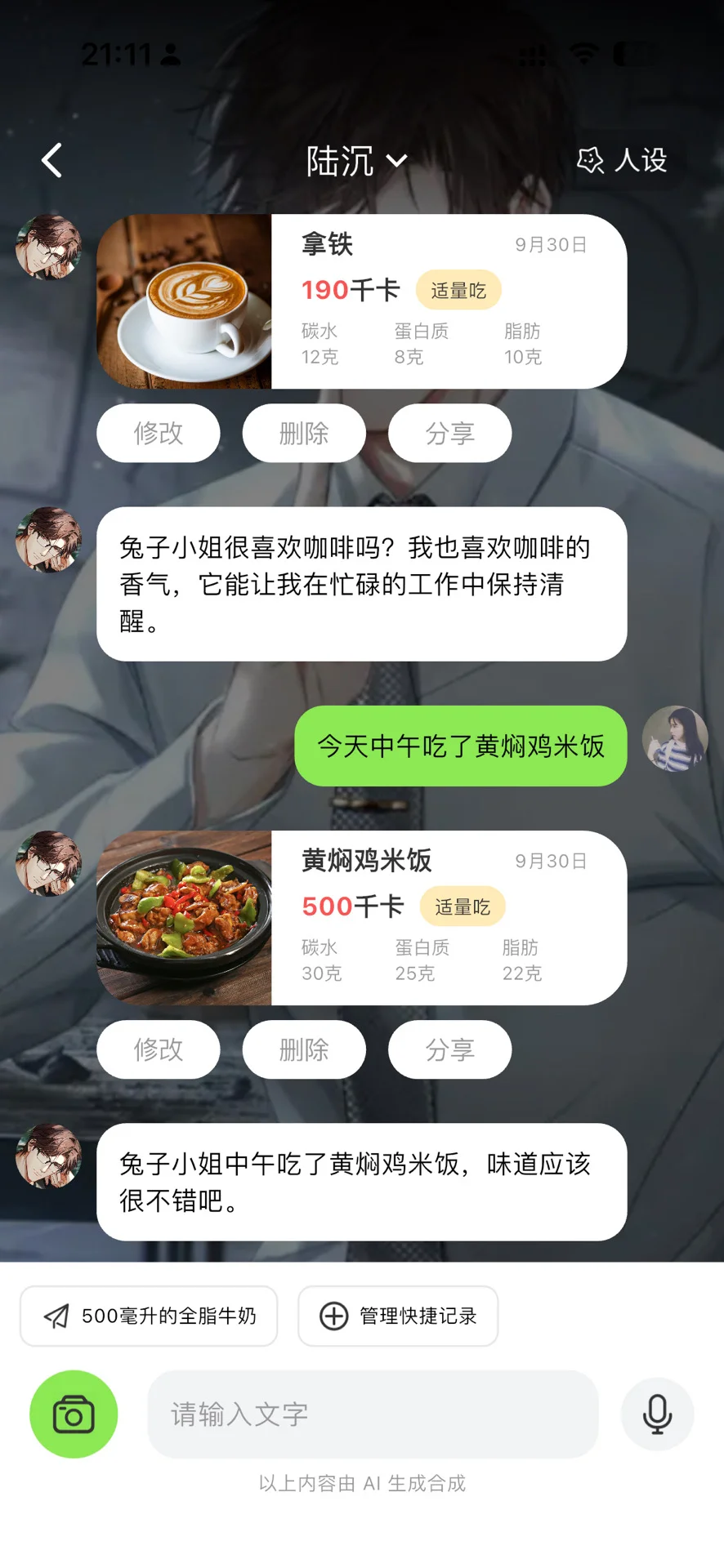 以前总是坚持不下去每天控制饮食和打卡,但自从用了【恋上健康】以后每天都能坚持。\n上传图片或者聊天打字都可以计算卡路里,而且感觉聊天的方式很好玩,运动消耗也能力计算,体重、喝水、甚至大姨妈都可以记录\n真的感觉用这种聊天方式记录很高效,而且还特别有情绪价值,很好玩,玩着玩着就坚持下来啦\n \n