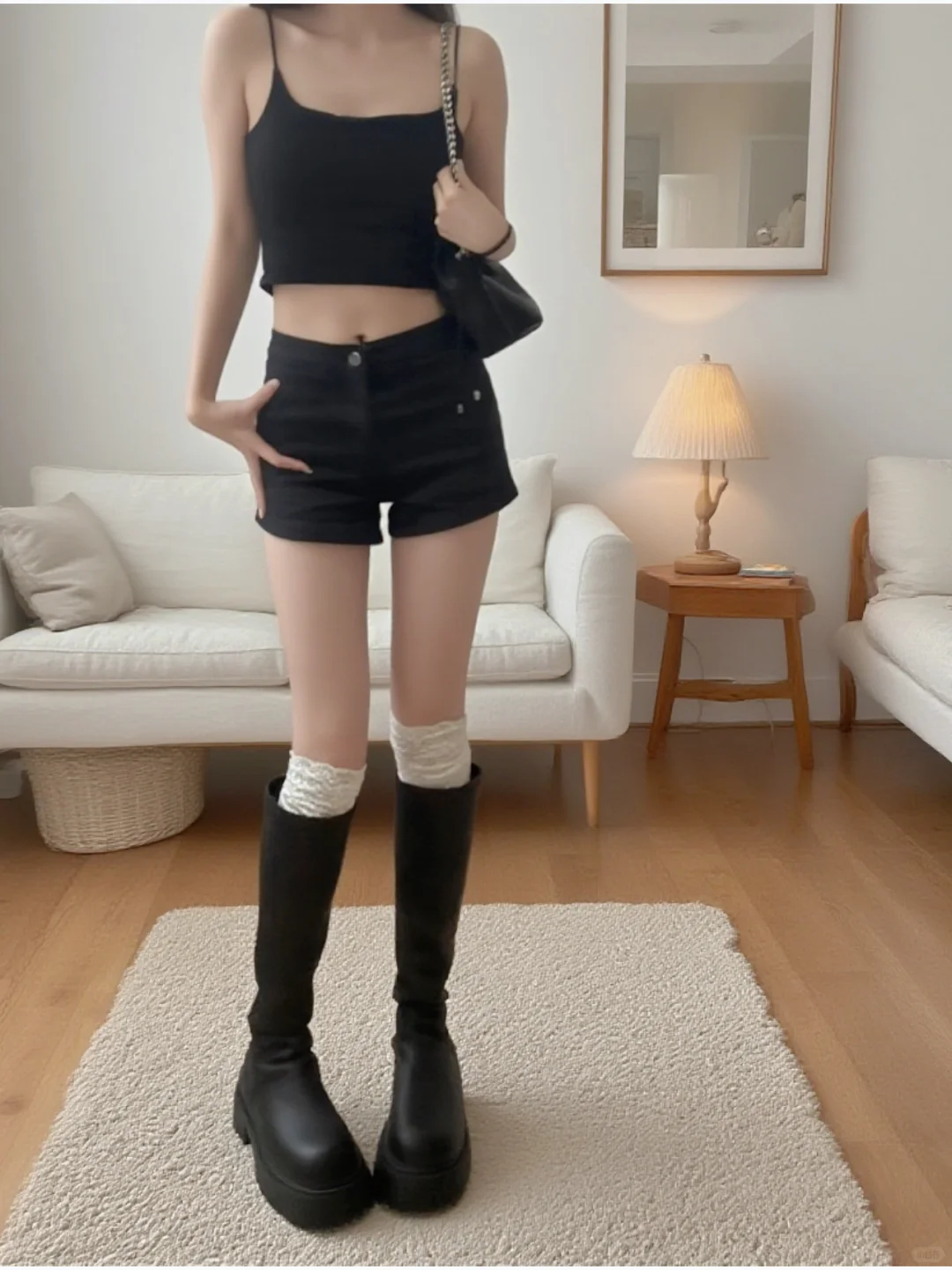 靴子和袜子这样搭配上身会更有层次感~ 视觉上会更加显腿细腿直!