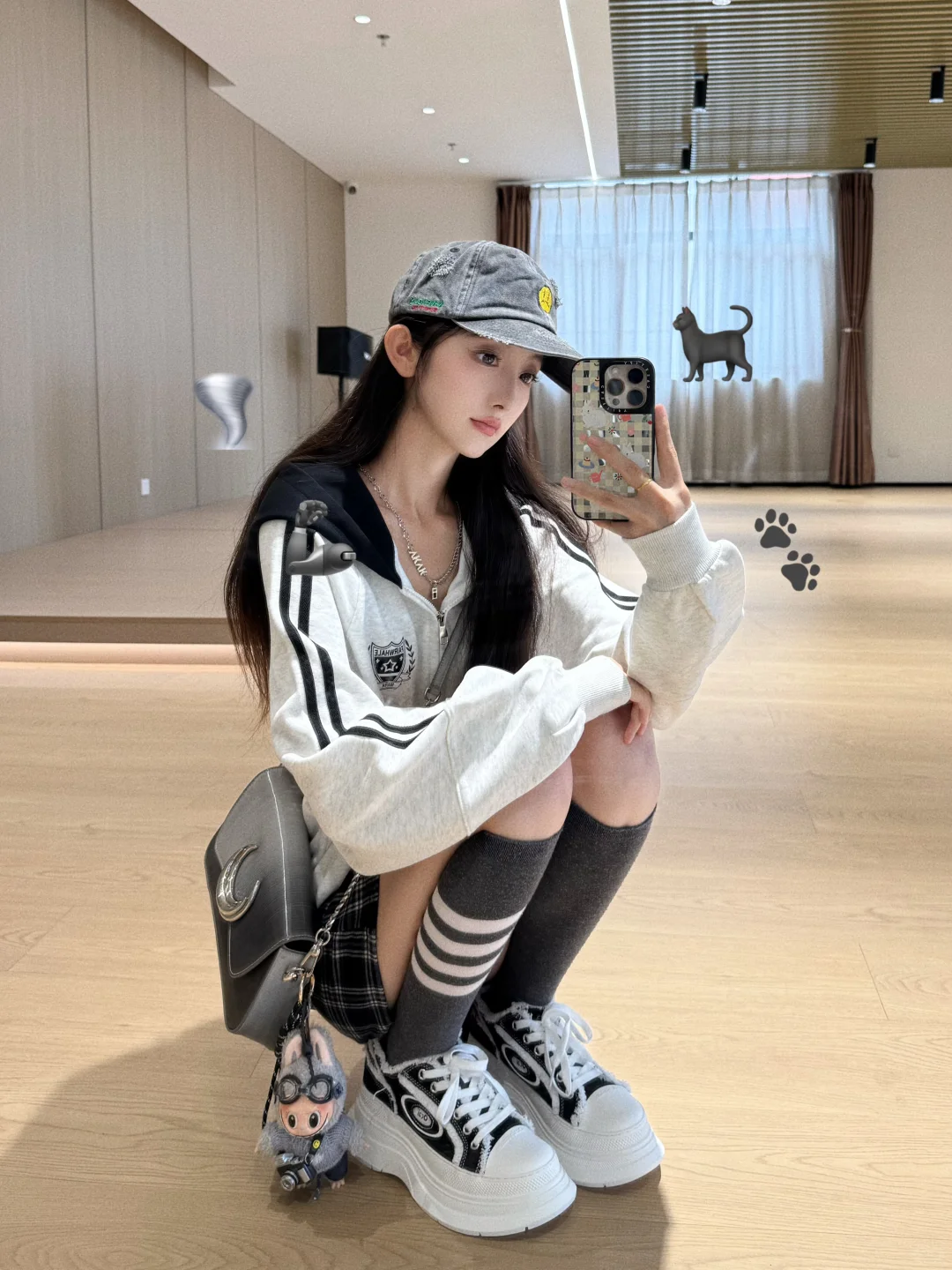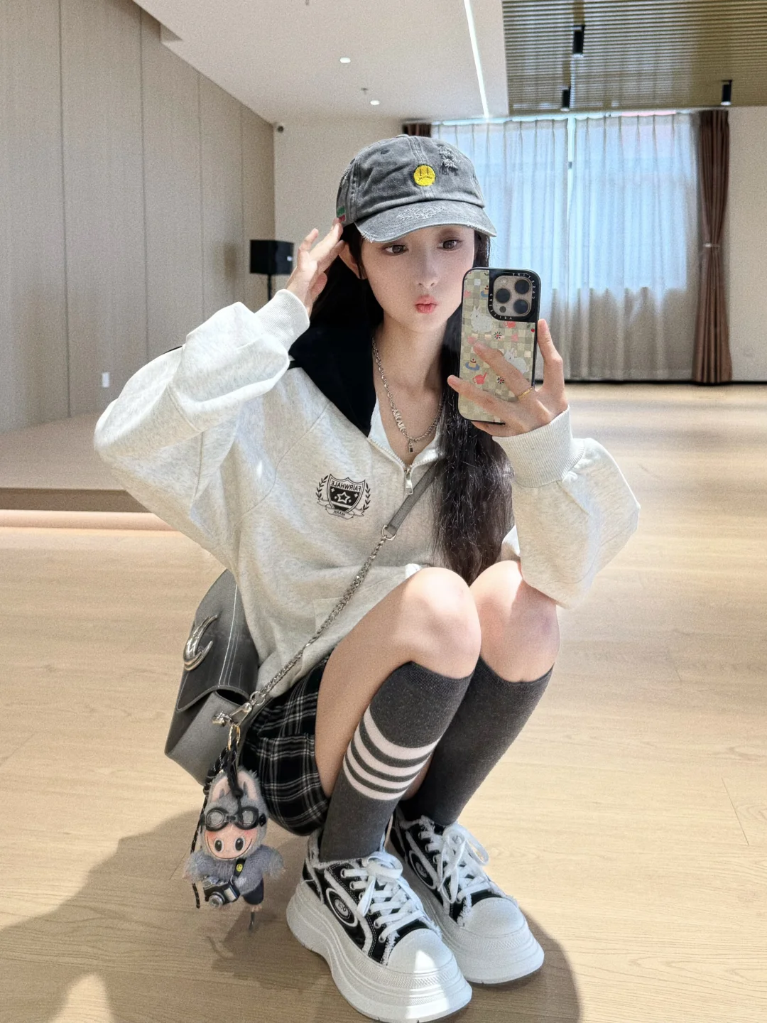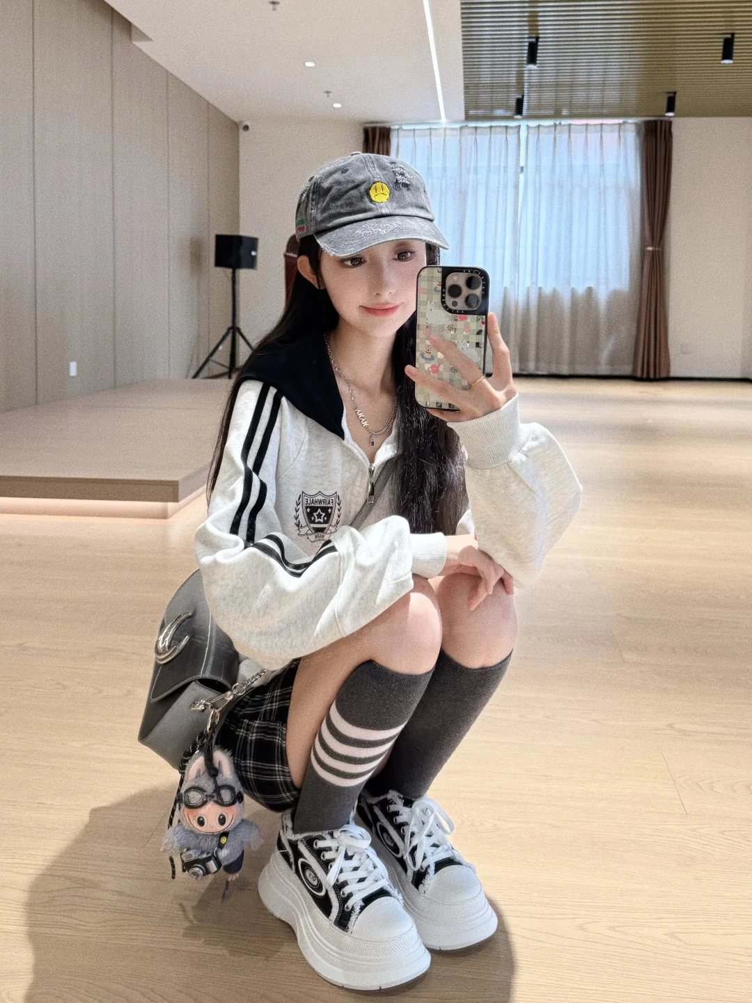 卫衣短裙小腿袜 标准减龄学院风 又是装嫩的一天