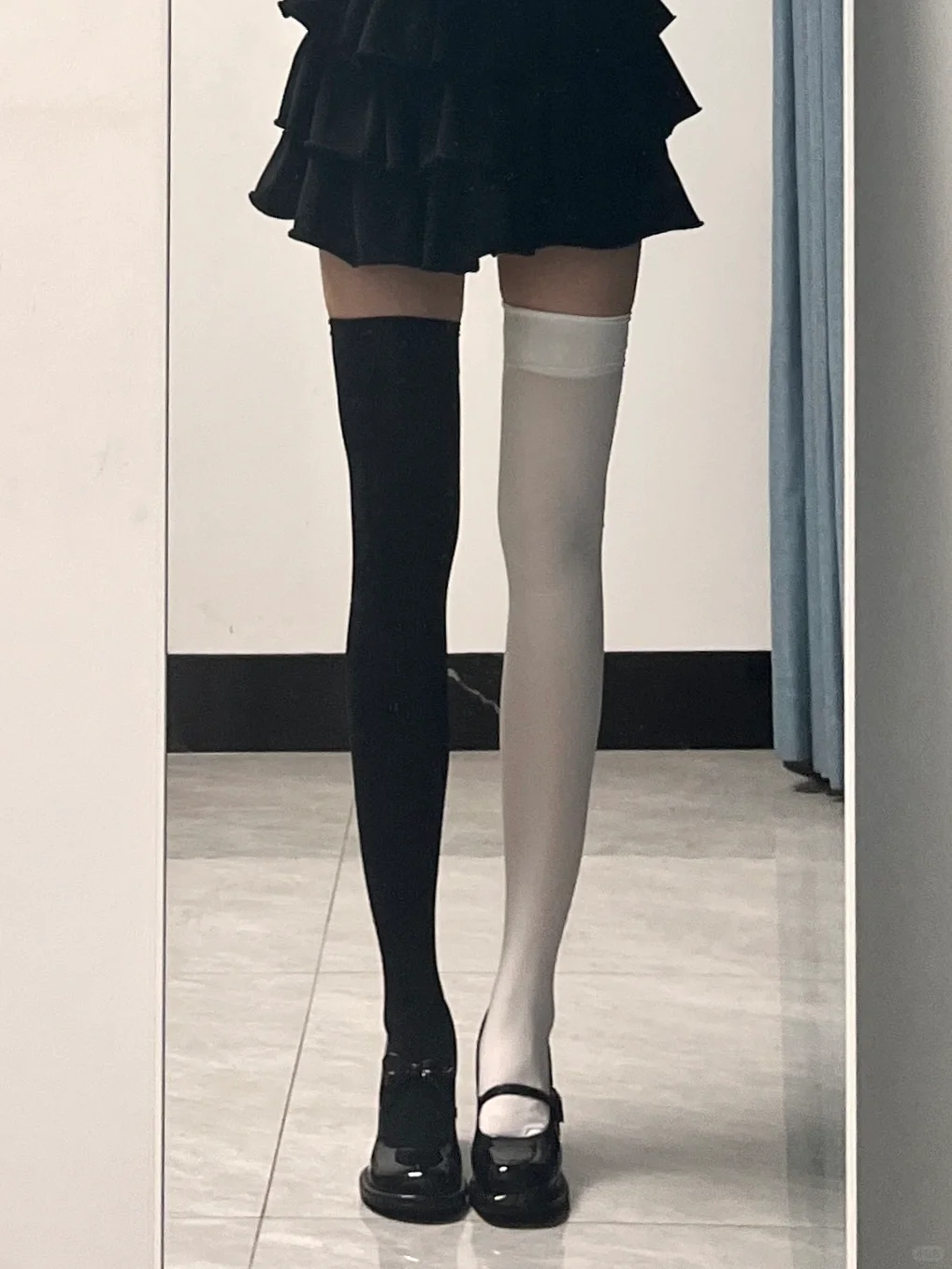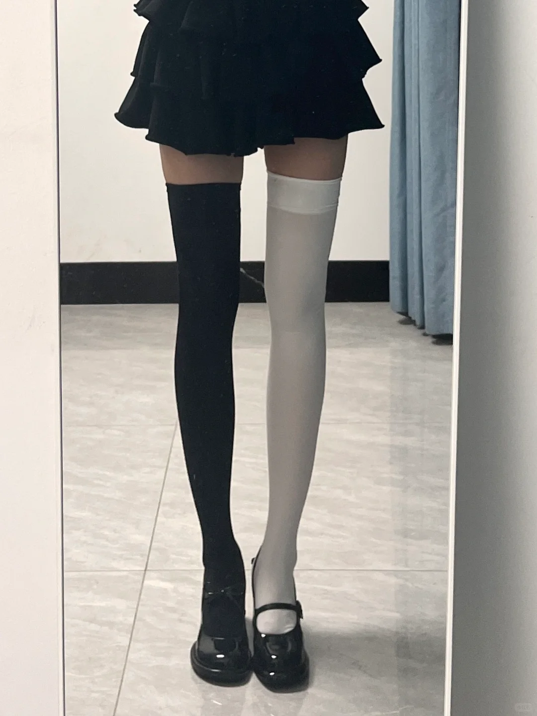 喜欢这种天鹅绒质感的过膝袜,边缘还有猫爪防滑设计,宝宝们如果要搭配制服的话黑的好看还是白的好看呢!