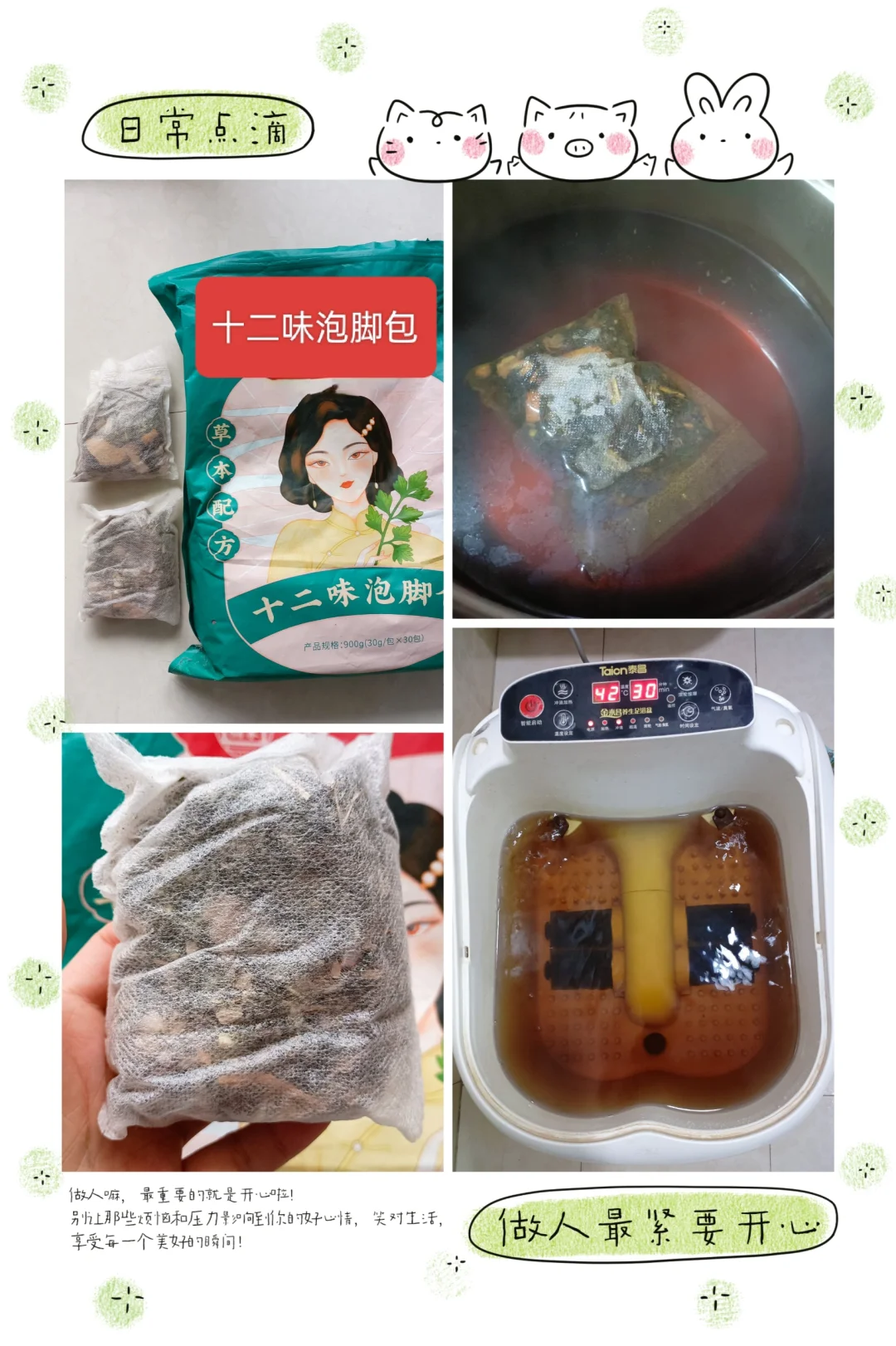 🌸走过36年的路,才发现经期最重要的就是:活血散瘀,疏肝解郁,极致的保暖\n \n🌸最近来例假,在例假前2天,\n每天泡2次益母草颗粒(经量多的不建议),目的是让气血流动起来,有助于更好的排毒\n \n🌸例假第1-3天,每早喝姜母茶/红糖水/怀姜膏,上班不宜久坐,一定要多喝温暖的水。多走动,经期不能老坐着或躺着,气血不循环更容易导致血液淤堵逆流\n \n🌸晚上可以照着视频,做经期适合的瑜伽体位,帮助排淤堵。8-10点最适合泡脚,疏肝解郁/祛痰湿热/桃红四物……每一种都是功效不错的泡脚包,筛选自己合适的。注意:一定是洗完澡再泡脚,微出汗,擦干即可。(泡脚身毛孔打开,不宜再洗澡,易着凉)\n \n🌸睡前用艾绒袋整晚敷腹部,肚子暖暖的。\n功效:温经散寒,调和气血,缓解不适。\n脚底贴足贴,补充阳气,刺激涌泉穴,还有一定要早睡,10点半上床,伴着轻音乐进入梦乡,睡眠质量也提高不少\n \n🌸经期尾声,由于是血瘀阳虚体质,气不够导致血液后期动力不足,排不干净,继续喝益母草颗粒,让经血排干净,不淤堵\n \n🌸经期结束后,开始补气血,早起用玉灵膏泡温水喝,上班泡红枣枸杞花茶\n \n🌸月经是身体的晴雨表\n好好呵护护自己,\n让经期形成一个气血正向的闭环。\n \n#经期保养秘籍 #健康养生 #日常分享 #巧囊 #健康生活 #女性健康 #爱自己 #我的养生仪式感 #日常生活碎片 #女性保养