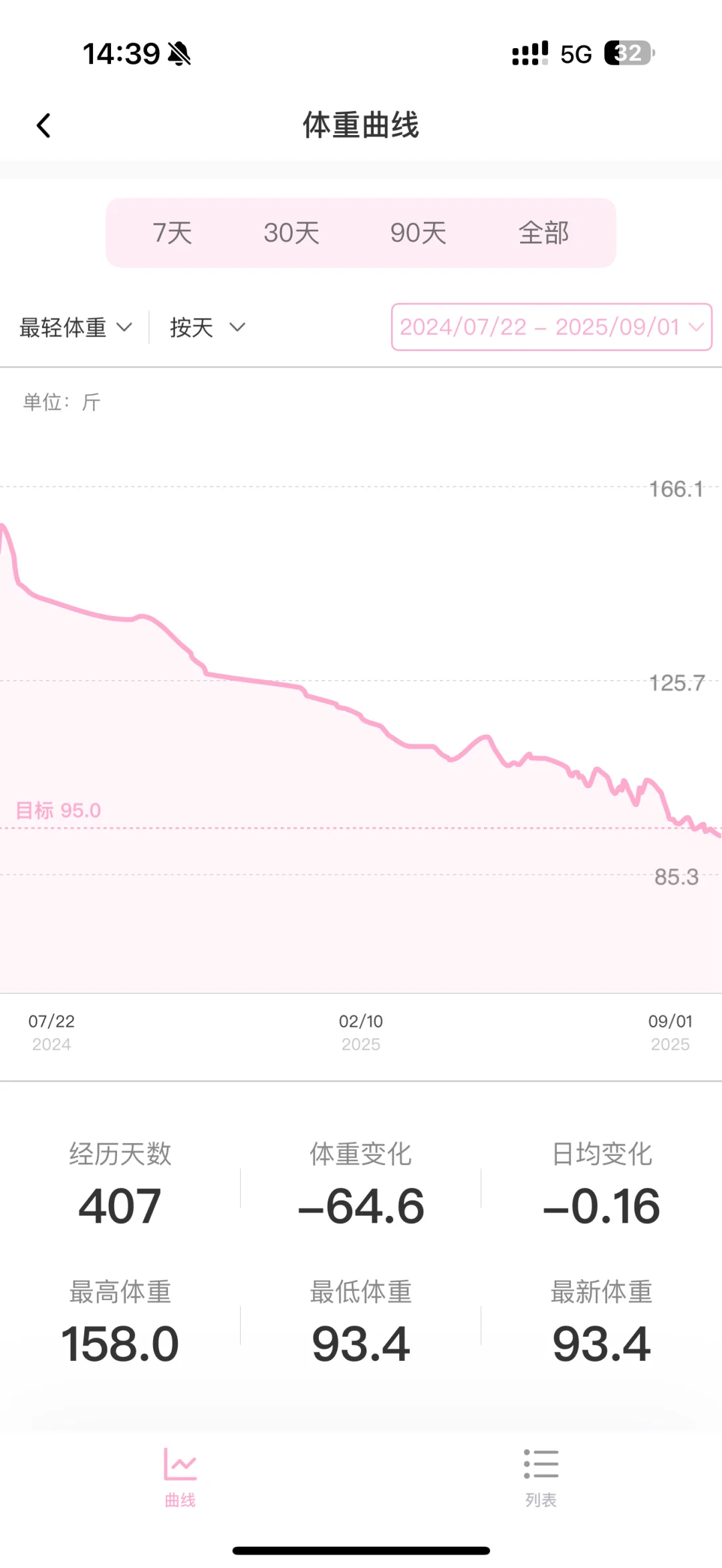 图3图4是我的大概维度。瘦下来后我就不怎么称体重了,只注意维度和我的身体状态。下面我大致分享一下我减肥的过程\n第一阶段:去年暑假到今年过年\n157➡️120(减重35斤)大基数很好减,少吃➕低碳饮食➕干净碳循环。身体围度下降比较慢,体重下降快。看起来只是瘦了一点,但是没有很夸张。\n第二阶段:今年过年到5月\n120➡️110(减重10斤)因为我168的身高而且是大骨架,所以剪到120后要给身体一个适应体重的时间,所以这三个月我保持1200卡的基础代谢饮食,用5➕2法和碳循环,这段时间维度开始下降,体重波动,很考验心态,所以我饮食控制的就没有第一阶段厉害了。\n第三阶段:5月到8月\n110➡️94(减重16斤)其实110斤已经可以了,很匀称,可是我从小到大都没瘦过,大象腿,妈妈臀,整个青春期因为“壮实”很不自信,甚至有男生和我表白我都会很自卑。所以趁着我的身体适应了体重下降的节奏,再冲一把。(减肥本来就是反人类反健康的一件事,所以我感觉战线不要太长)这个时候我就是小基数了,所以一定要高碳,一定一定要高碳。而且是干净碳水的高碳。我用的方法就是高碳循环加5➕2,有的时候想简单点就三天两顿法。这段时间体重下降很慢,但是维度大幅度下降。曾经我的臀围120多厘米,现在才80左右,而且惊喜的是,我的手臂竟然瘦了!没有拜拜肉了!!!我全程没有运动,手臂细了超级多!肩颈薄了超级多!!\n先写到这里吧,还有好多好多具体细节一时间没想起来,大家有疑惑可以问我,我再针对具体问题回答#减肥 #减脂 #减脂餐 #健身 #身材