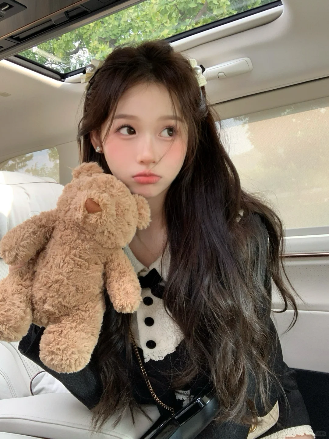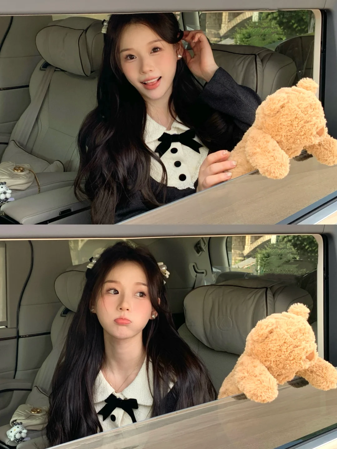 好热\n下不了车一点\n今天和小熊在车里拍照\n弟弟说是好乖的大小姐风\n \n