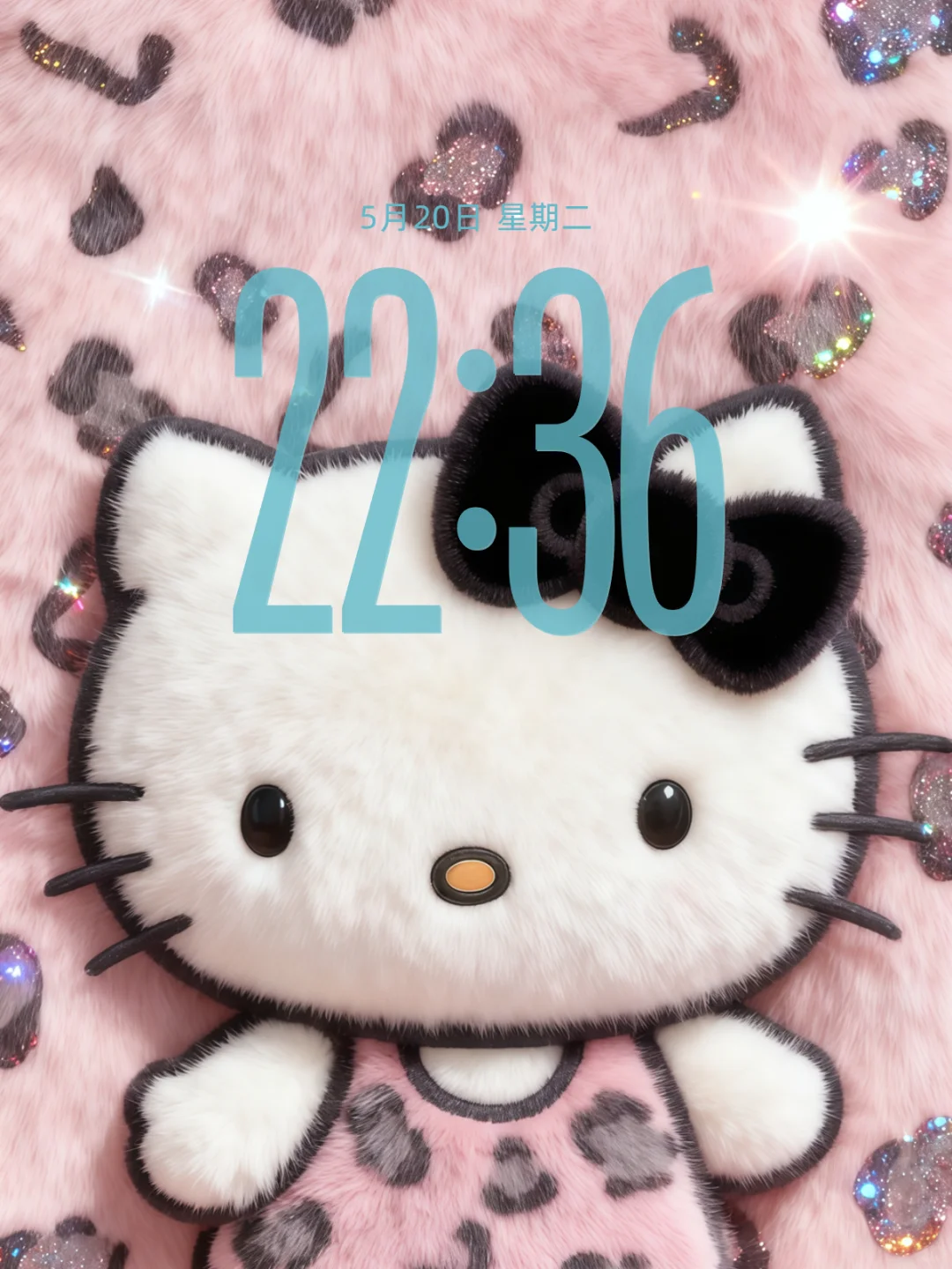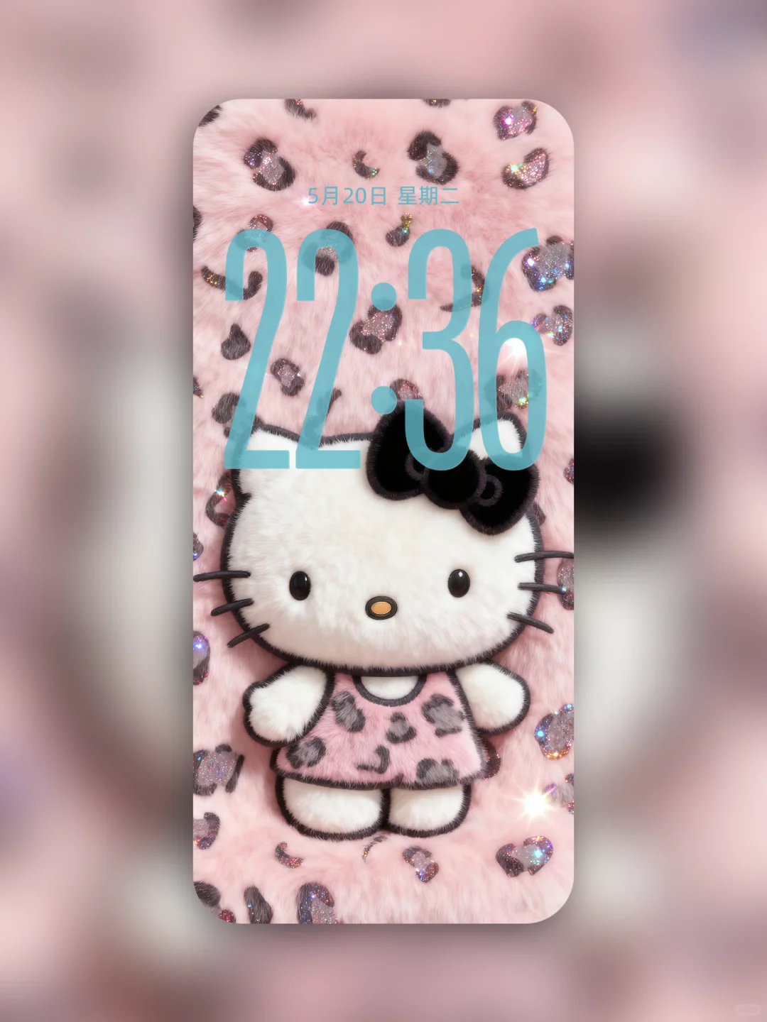 又甜又酷的Hello Kitty壁纸|毛绒豹纹壁纸