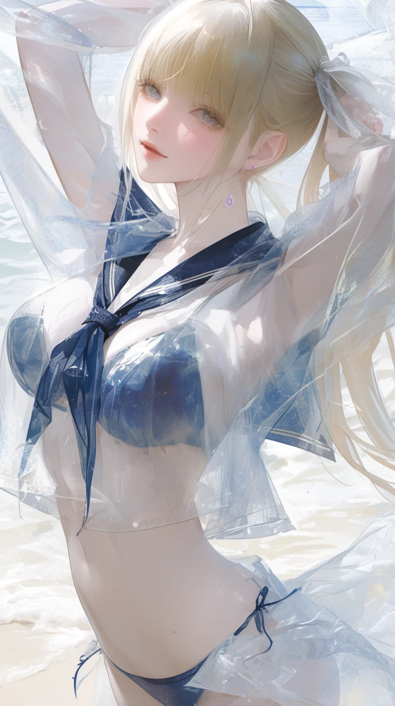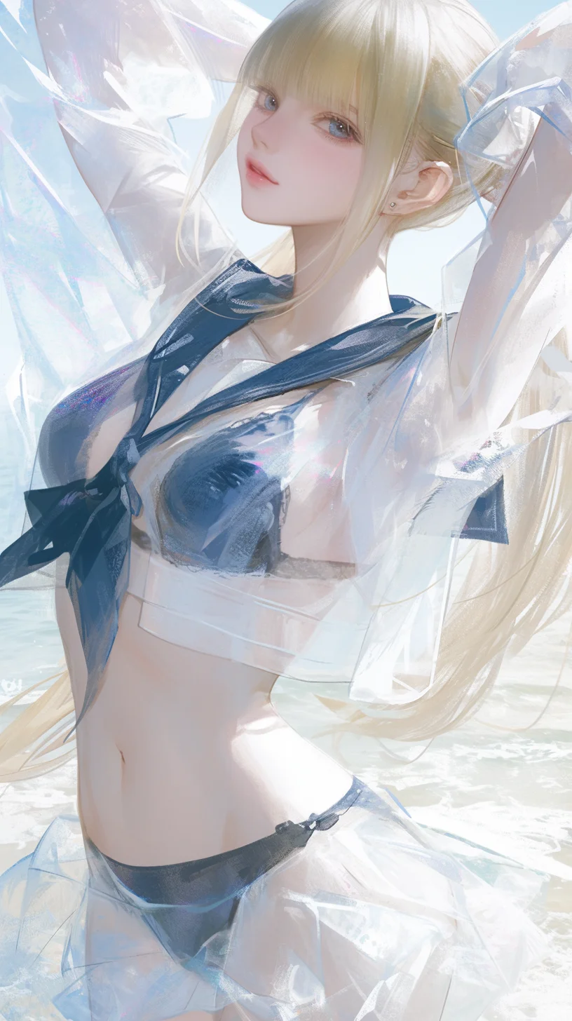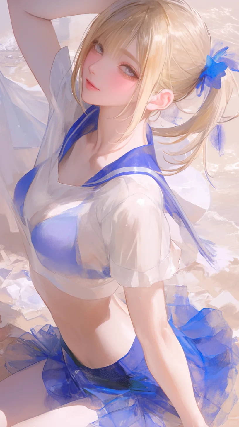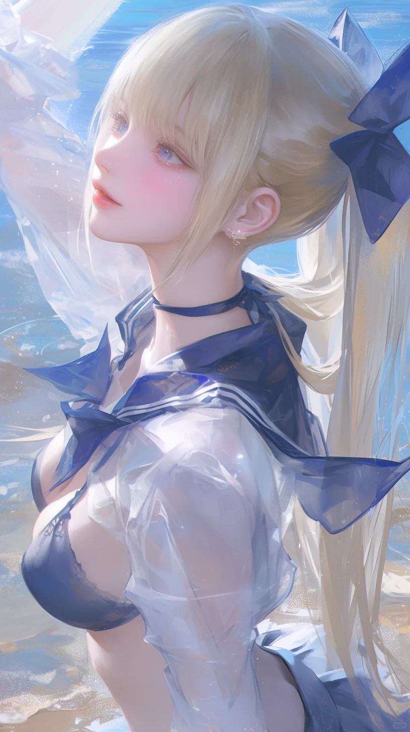 【MJ AI】海边少女|那片蔚蓝的海💙