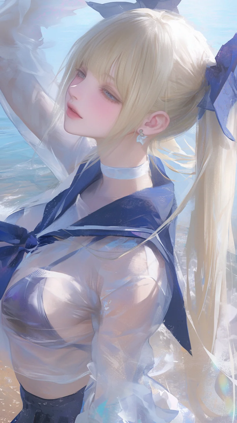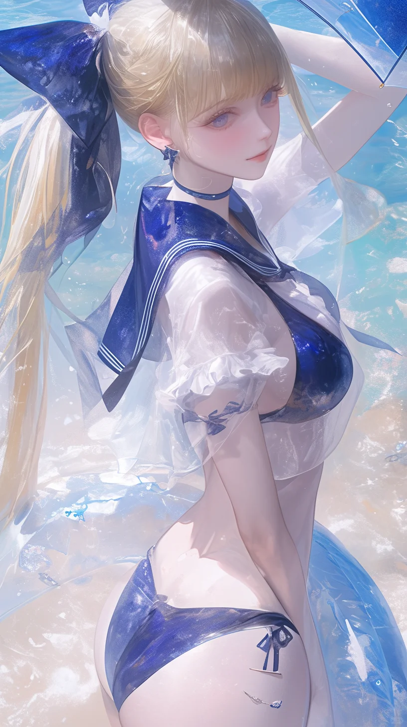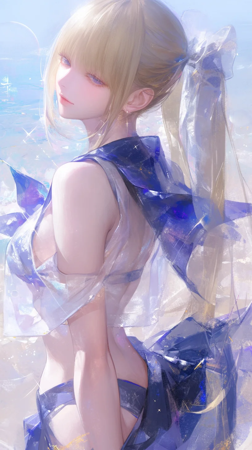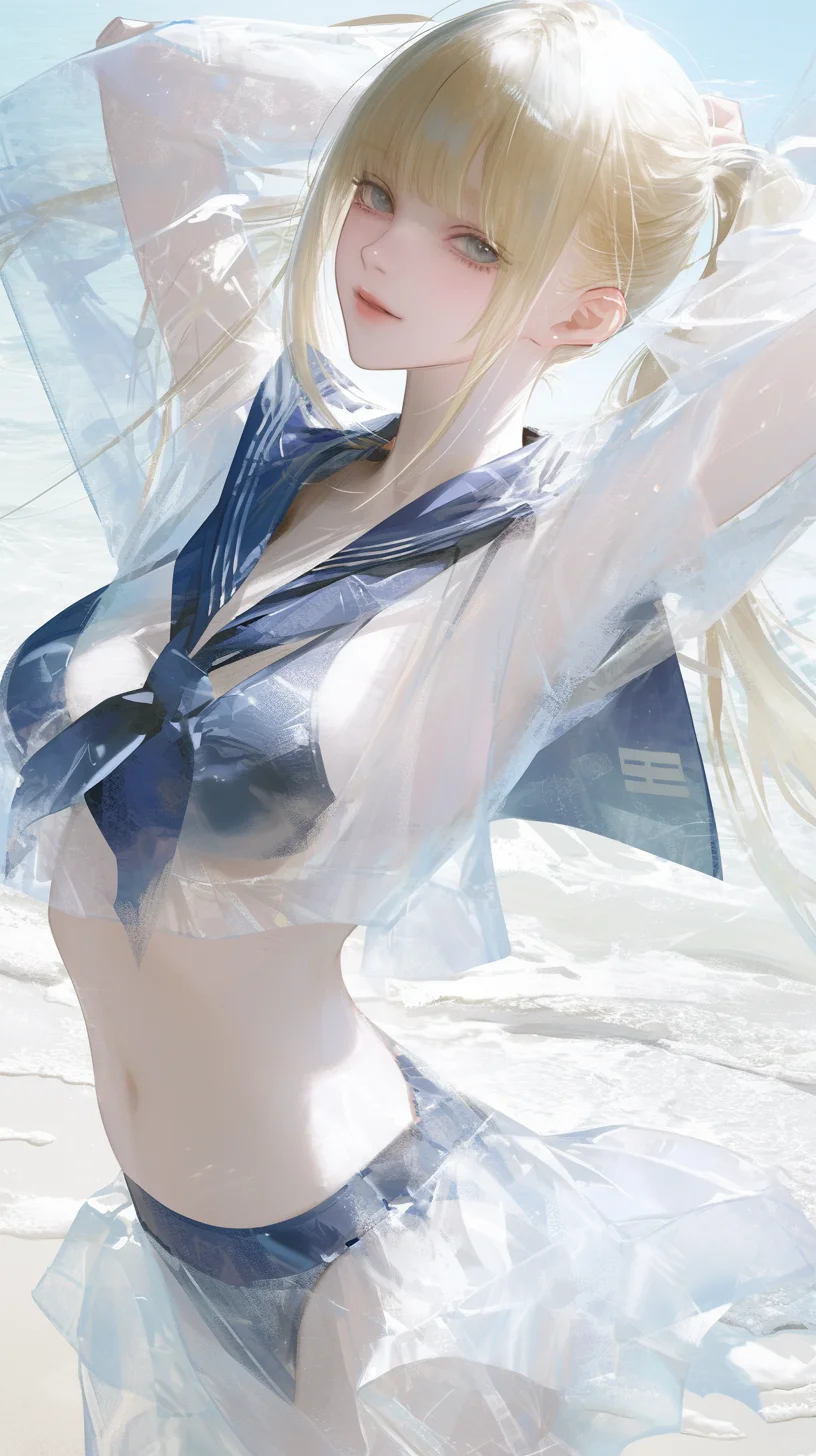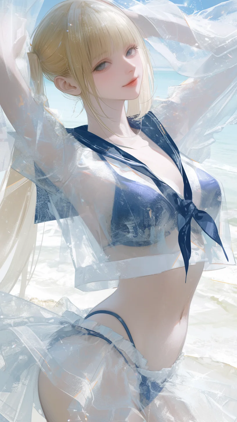 【MJ AI】海边少女|那片蔚蓝的海💙