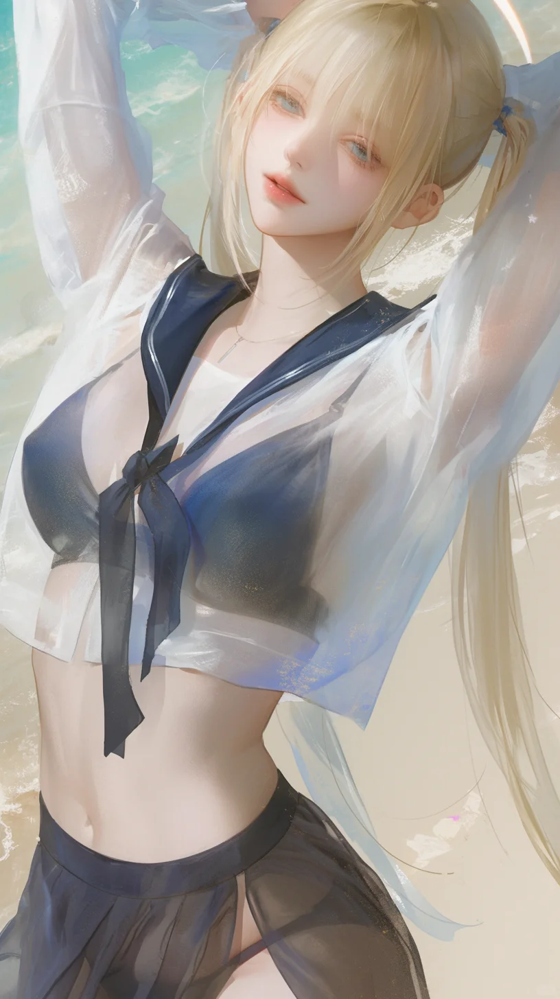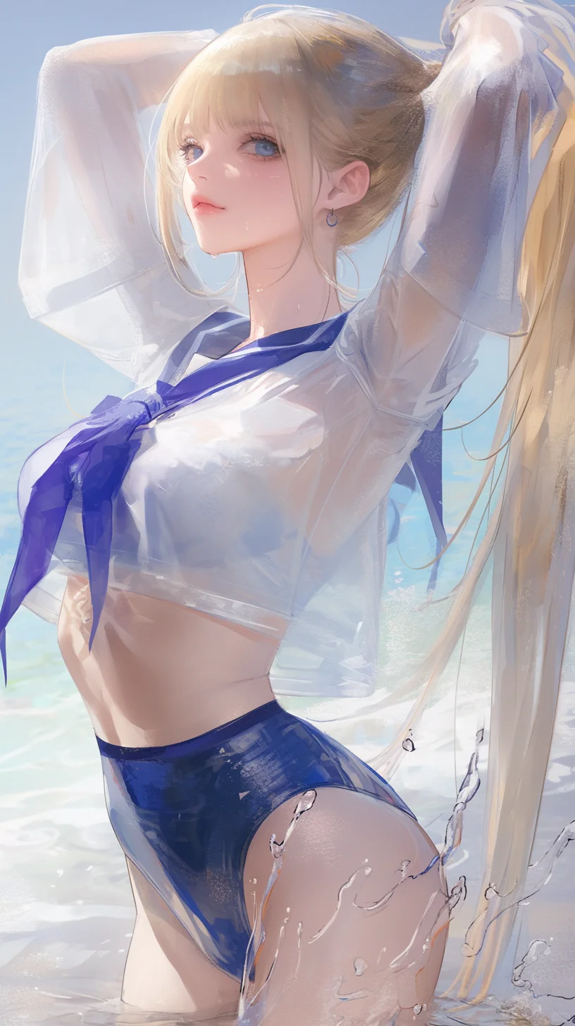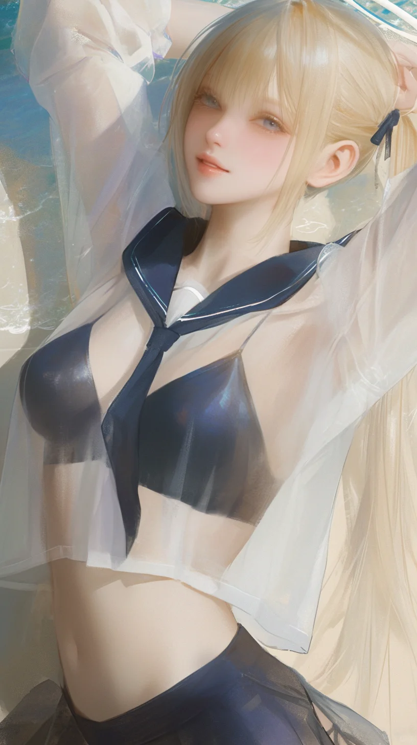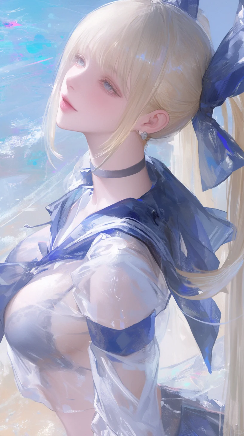 【MJ AI】海边少女|那片蔚蓝的海💙