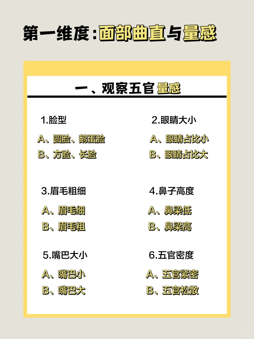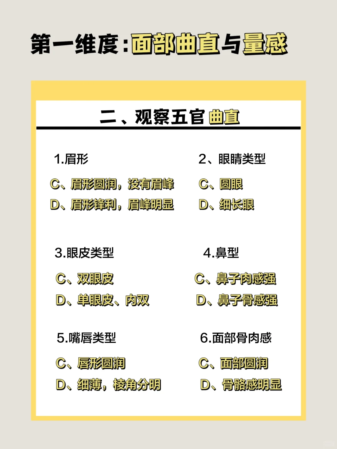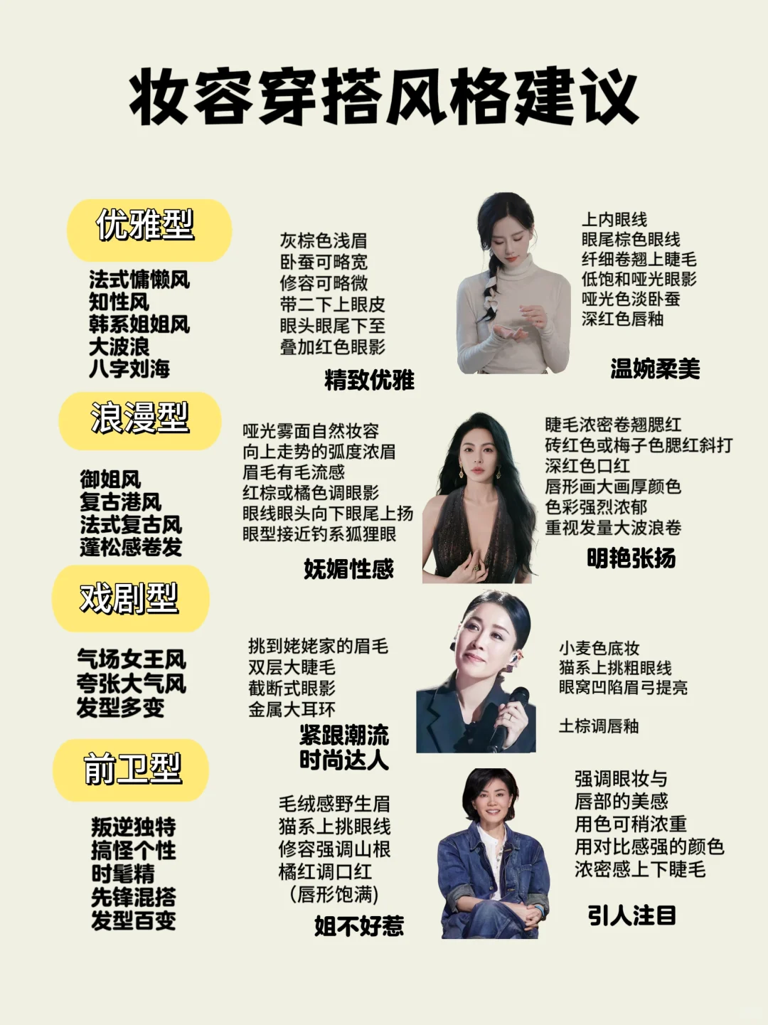 1分钟自测帮你找到专属穿搭密码!\n从五官到身材再到性格,3个维度精准定位你的\n直曲&量感,让你告别盲目跟风,穿出独特魅\n力。\n \n你是不是经常看着别人穿好看,买回来就踩雷\n💡真相是:别人穿好看≠你穿好看!\n \n只有“适合你的风格”,才能让你美得毫不费力!\n今天教你用「直曲+量感,两大核心维度,从\n五官、身材、性格快速定位你的专属风格!\n \n✨第一步:明确你的“量感”大小\n再选择和自己量感匹配的衣服、发型、妆容、配\n饰\n比如偏小量感的人,更适合浅色、轻盈的发型、\n小图案、小配饰、小包包。\n量感偏大:更有成熟感、力量感和气场。\n量感中间:不容易穿错,可以驾驭的范围更多,\n可以穿搭以身材量感为主,发型和妆容以面部量\n感为主,也可以选择适中。\n \n量感偏小:视觉年龄更显小,更有年轻和活力感\n⚪小量感(幼态年轻):\n适合:浅色、小碎花、迷你包、细项链。\n明星参考:张元英、田曦薇\n⚫大量感(成熟气场):\n适合:深色、大廓形、宽檐帽、夸张耳环。\n明星参考:巩俐、姚晨\n🔲中间量感:(可直可曲)\n适合:灵活切换,重点突出优势部位!\n明星参考:高圆圆、刘若英\n \n✨第一步:明确你的直曲\n再选择和自己直曲匹配的服装、发型、妆容、配\n饰\n比如,偏曲的人适合穿面料偏软、颜色偏浅、图\n案偏圆、配饰偏圆、发型适合微卷发、款式偏裙\n装。\n \n❗注意:可能你有的部位直,有的部位曲\n💡关键技巧:70%看脸部(眼睛决定直曲),\n20%内在性格,10%身材!\n \n🔹偏直型(男颜感):\n*特点:五官棱角分明(如丹凤眼、高颧骨),\n气场强、干练飒爽、有距离感。\n*适合:直线剪裁西装、冷色调、金属配饰。\n*明星参考:刘雯、李宇春\n \n🔸偏曲型(女颜感):\n特点:五官圆润(如杏眼、肉鼻头),温柔甜\n美、优雅、亲和力强,有女人味,没有距离感。\n适合:荷叶边、碎花裙、珍珠配饰。\n明星参考:赵露思、虞书欣\n \n🔘中间型(可盐可甜):\n特点:可柔可刚,温柔又有力量,风格跨度大\n适合:混搭(如西装+蕾丝)、低饱和度色系。\n明星参考:周雨彤、宋茜\n \n✅找到你的“风格DNA”,穿搭效率翻倍!\n#今年N个漂亮时刻 #妮好整体形象#美学考证