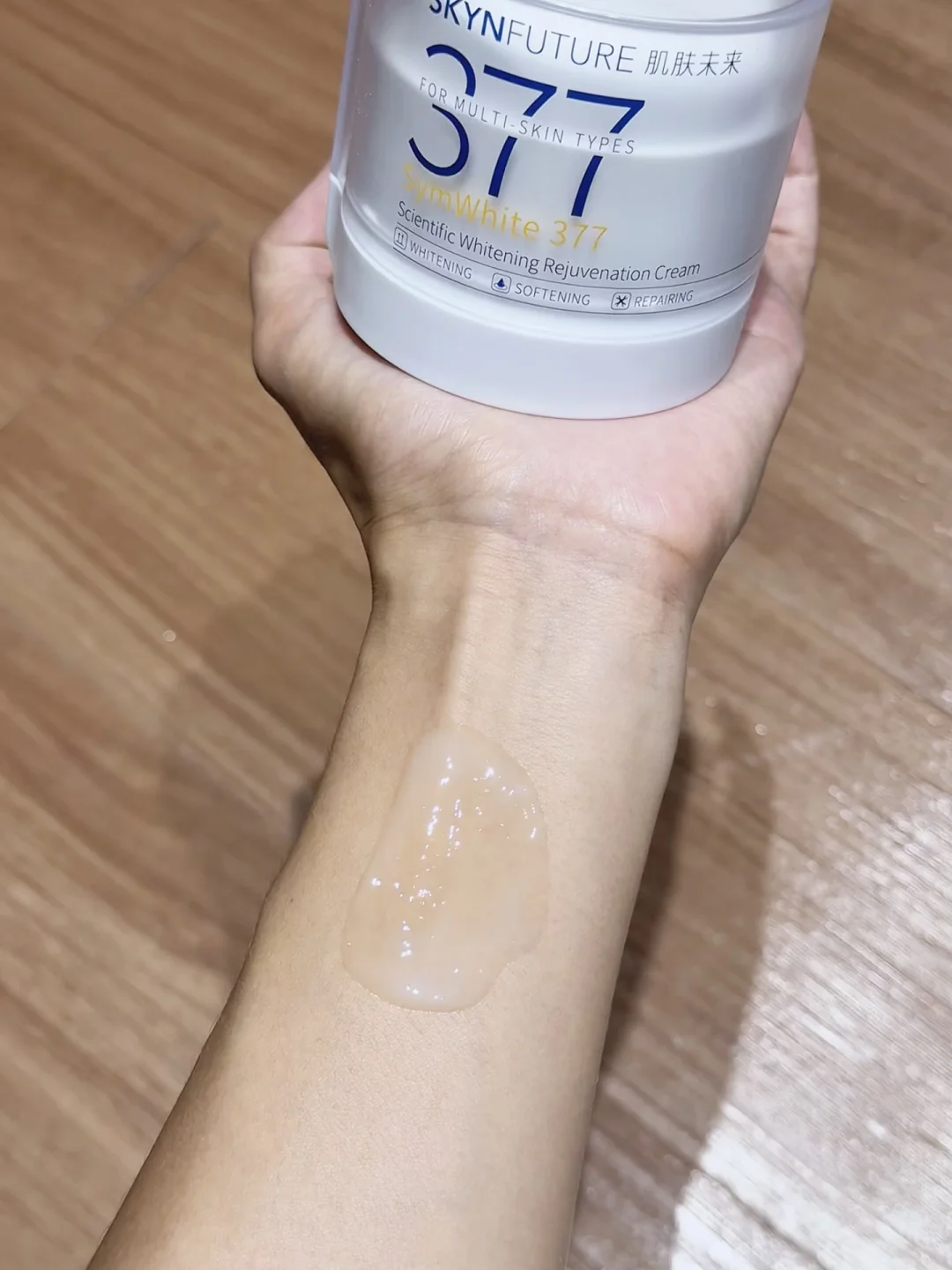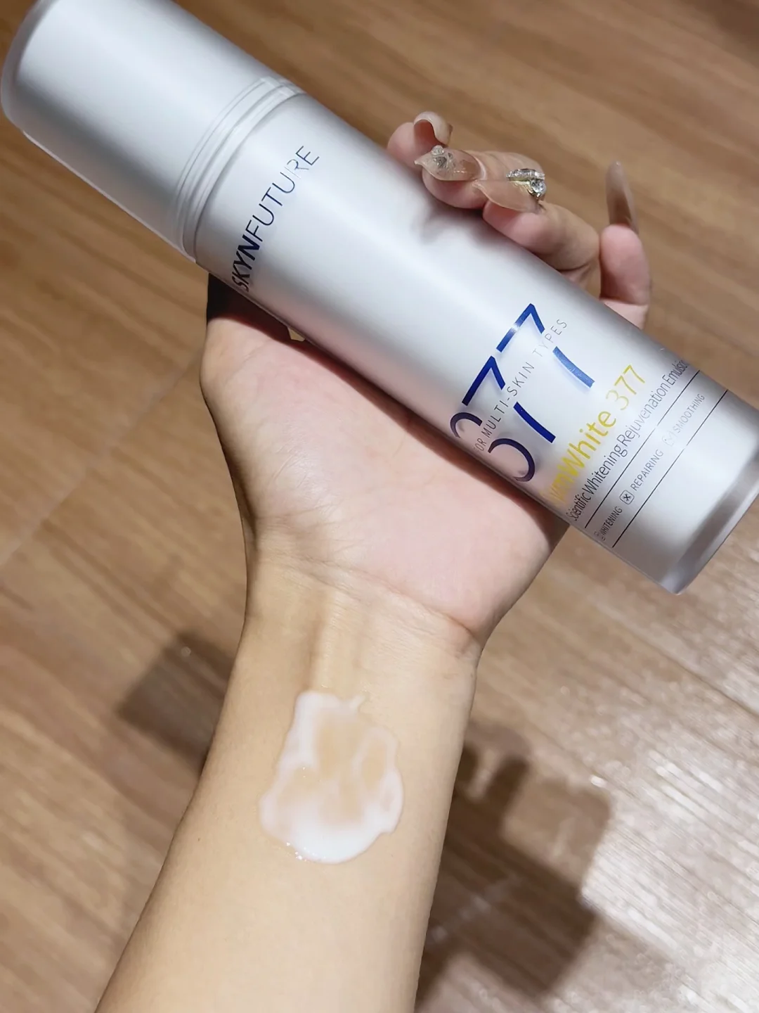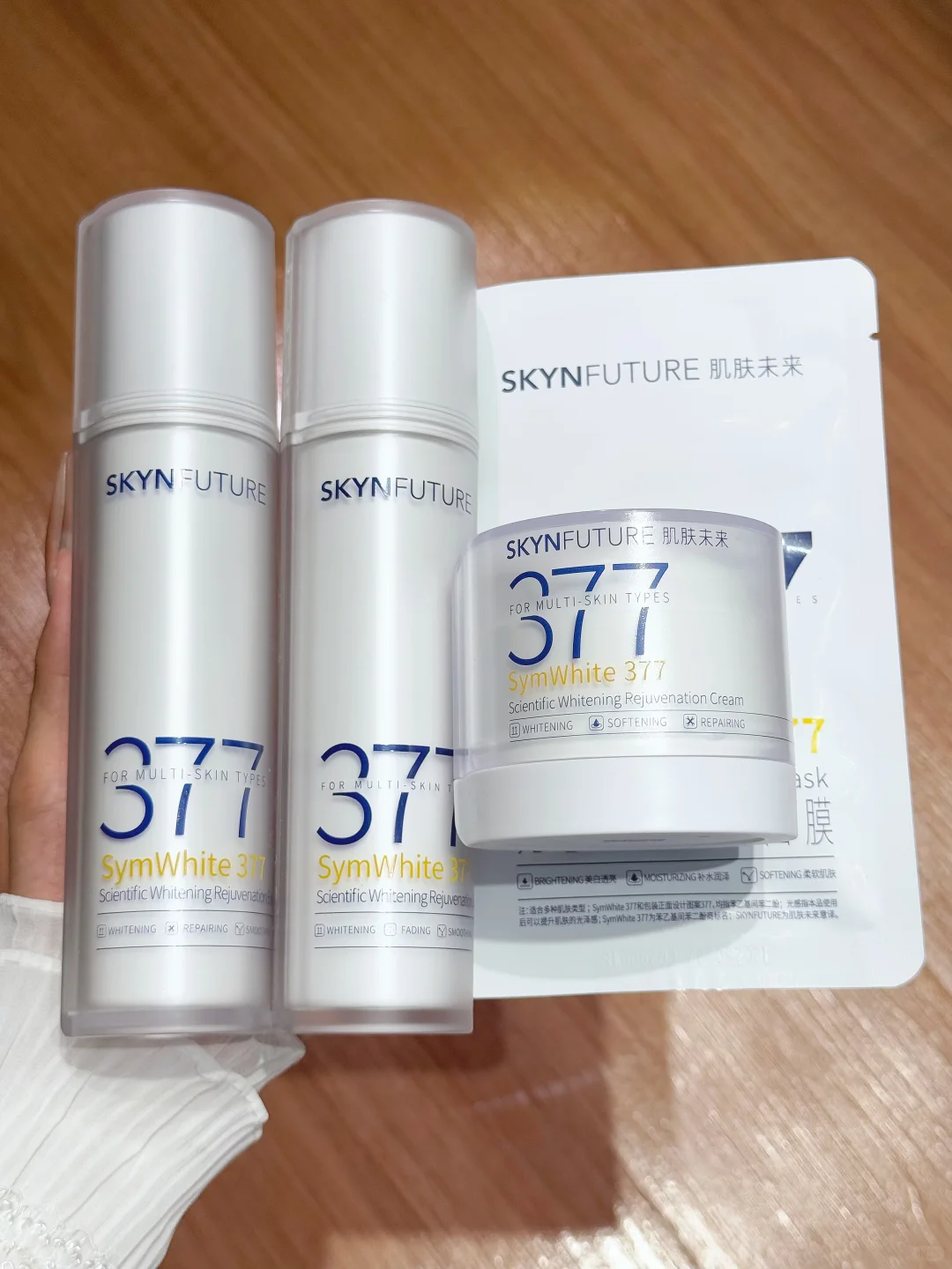 前段时间妹妹高中军训了两星期,整个人晒得跟个卤蛋一样黢黑黢黑,真的太可怜了,高中生又正是爱美的年纪\n赶忙向我求救说有什么可以快速白回去的办法,\n于是我就把我一直在用的肌肤未来买了一套送给她。\n护肤新手,想白得快又不刺激,直接冲这套!不管是高中生、大学生,还是已经上班的早八打工人,都很适合!\n \n-肌肤未来377水乳\n熬夜脸想去黄的,用它准没错,水和乳都是清爽类型的,好吸收的同时肤感又不会油腻\n用了一段时间下来整个肤色都透亮的不行,日常就早晚用偶尔我会拿来湿敷效果也很顶\n \n-肌肤未来377面霜\n这个面霜就很适合敏肌想美白又怕刺激的\n里面三重舒缓力,温和美白低刺激,像我妹妹年纪比较小皮肤很娇嫩用着也没问题,质地像奶酪一样,吸收过后是那种比较润但是又不油腻,我自己之前就空瓶了一罐,用下来整个脸透亮的不行\n \n-肌肤未来377面膜\n这个面膜适合熬大夜过后用来急救\n熬完夜脸真的黄的没法看,这时候我就喜欢敷一片,上脸很服帖而且精华也很多,敷完后揭下来脸就是那种很透亮,皮肤也是水当当的,一周敷个2次差不多,黄气都追不上我了\n我的使用方法:\n早上:水乳\n晚上:水乳+面霜\n每周2次面膜\n这一套组合拳下来真的想不白都不行,\n我妹妹用了半个月肤色就差不多都恢复过来了,还给我炫耀说现在班里就她最白了哈哈哈!\n真心建议想白白的姐妹试试!!!\n#如何白到发光 #美白全靠它 #从黑黄皮逆袭冷白皮 #肌肤未来 #护肤 #美白 #美白水乳 #肌肤未来377水乳 #肌肤未来377面霜 #肌肤未来377面膜