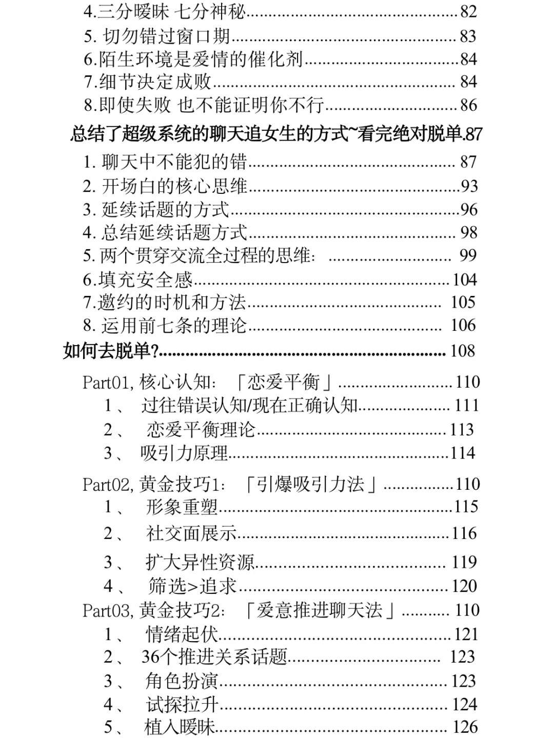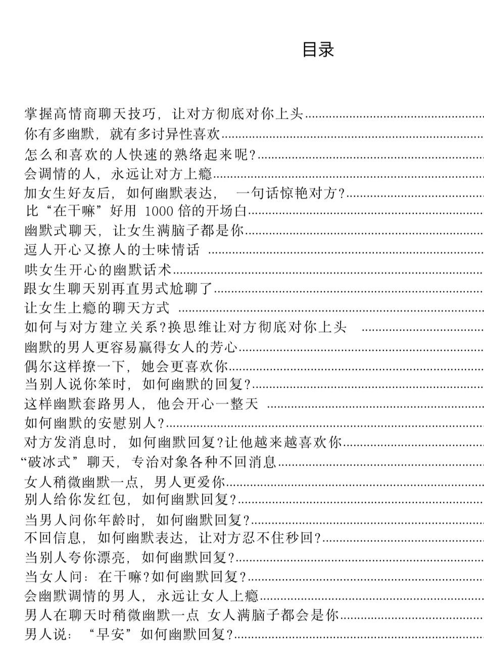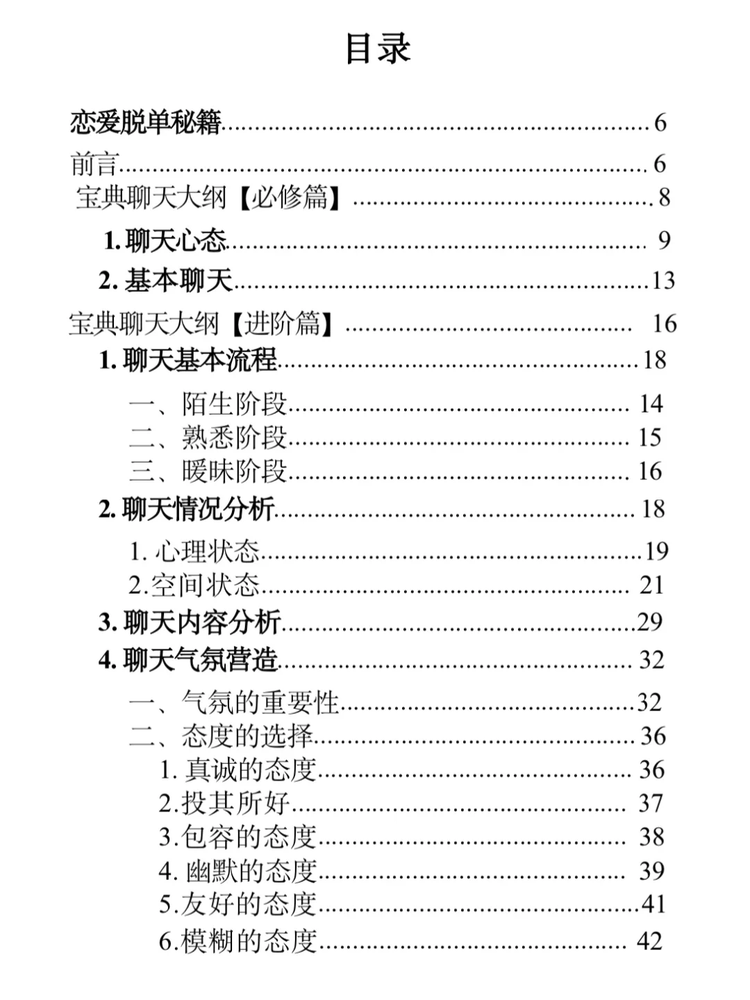遇到喜欢的女孩子,却不知道怎么聊天?别愁啦,这份万能聊天模板+话术技巧+实操案例 来救场!\n \n它有超详细的聊天流程,从主导话题到设立框架,再到各种开场方式,价值型、好奇型等任你选。还有调侃、角色扮演这些有趣的聊天技巧,搭配实操案例,手把手教你。掌握书中的方法把女生撩成老婆不是梦~\n \n